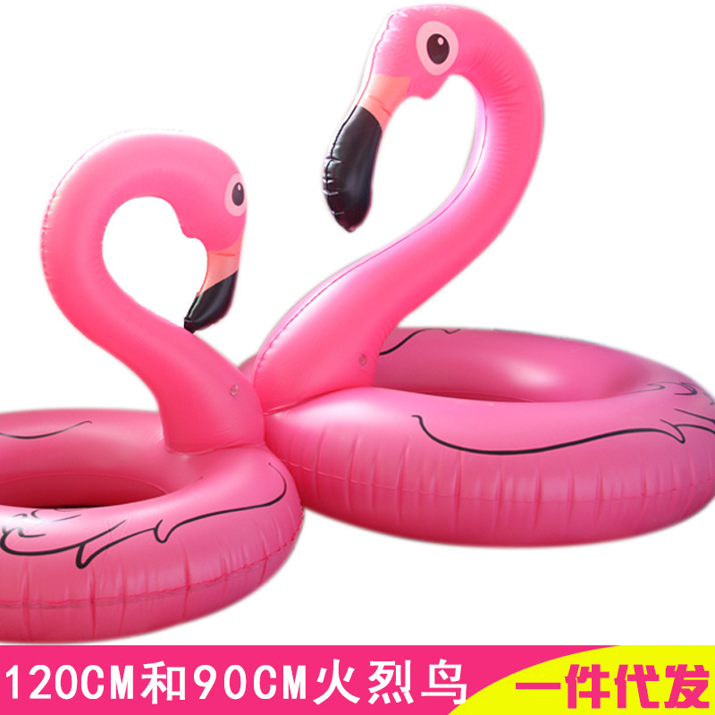 跨境新款ins风120充气火烈鸟游泳圈成人水上火烈鸟印花游泳圈批发