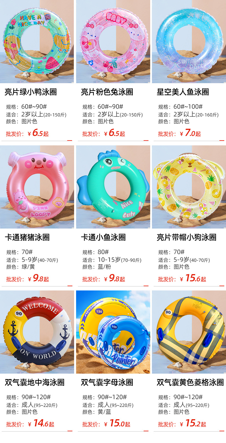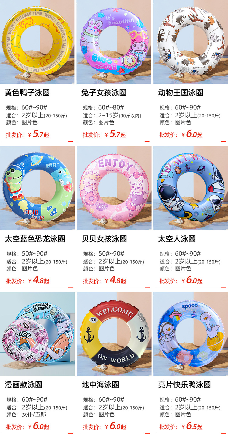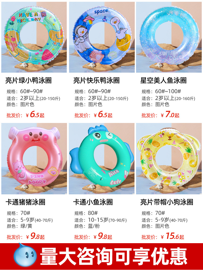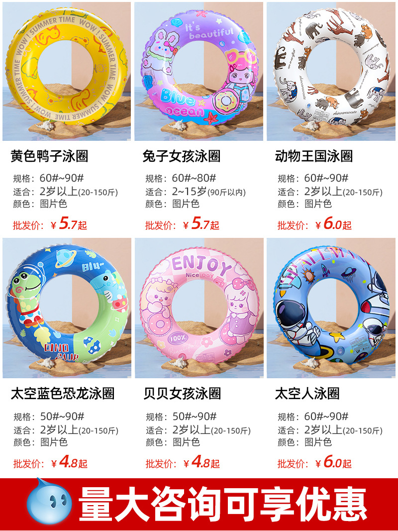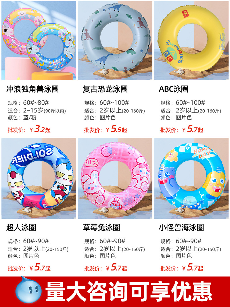 24新款现货网红游泳圈儿童6-10岁卡通加厚小孩泳泳圈充气泳圈批发
