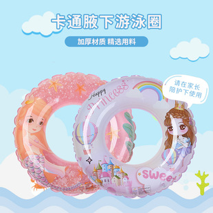 成人儿童泳圈双层加厚PVC水晶游泳圈双气囊防侧翻可爱卡通腋下圈