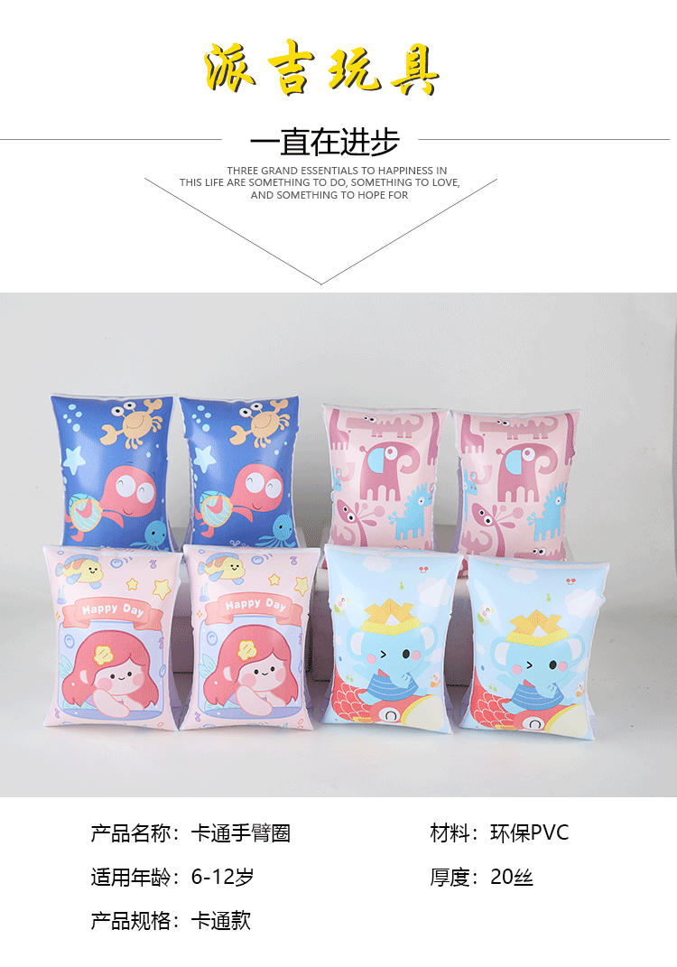 2023夏季新款水上充气浮卡通图案儿童手臂圈充气水袖游泳辅助用品