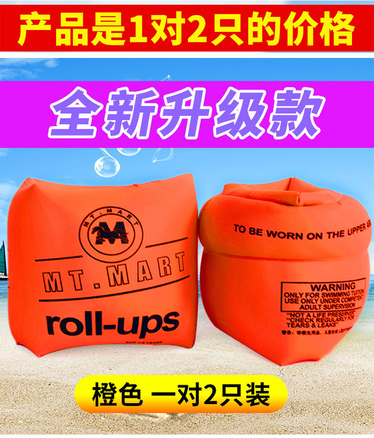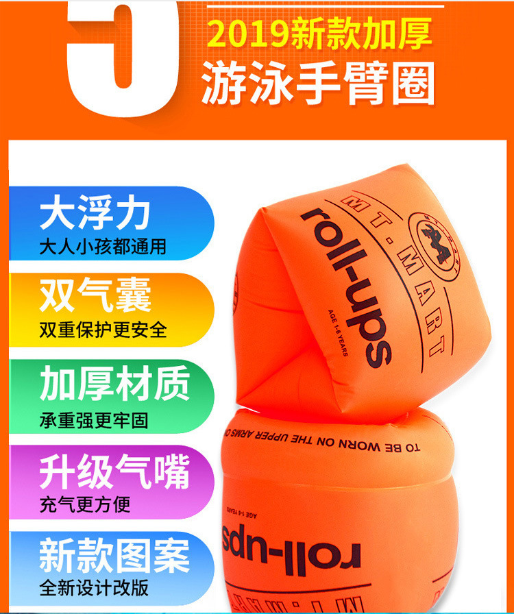 加厚成人充气水袖游泳手臂圈浮力圆水袖儿童游泳浮标PVC游艺用品