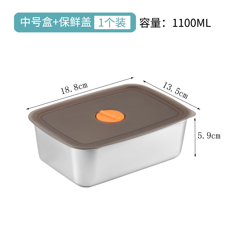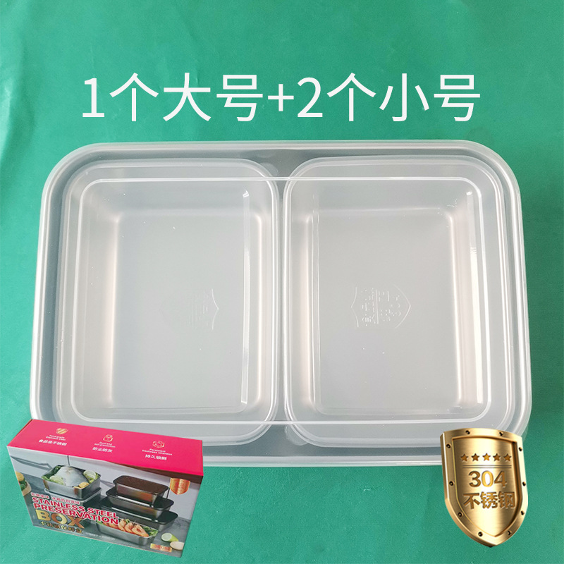 304不锈钢保鲜盒带盖便当盒饭盒冰箱收纳火锅备菜户外分装餐味盒