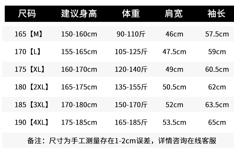 | 190 recommended weight [85.00 kg-95.00 kg]](190建议体重【170-190斤】) | USD $0.0 | 200 set available |