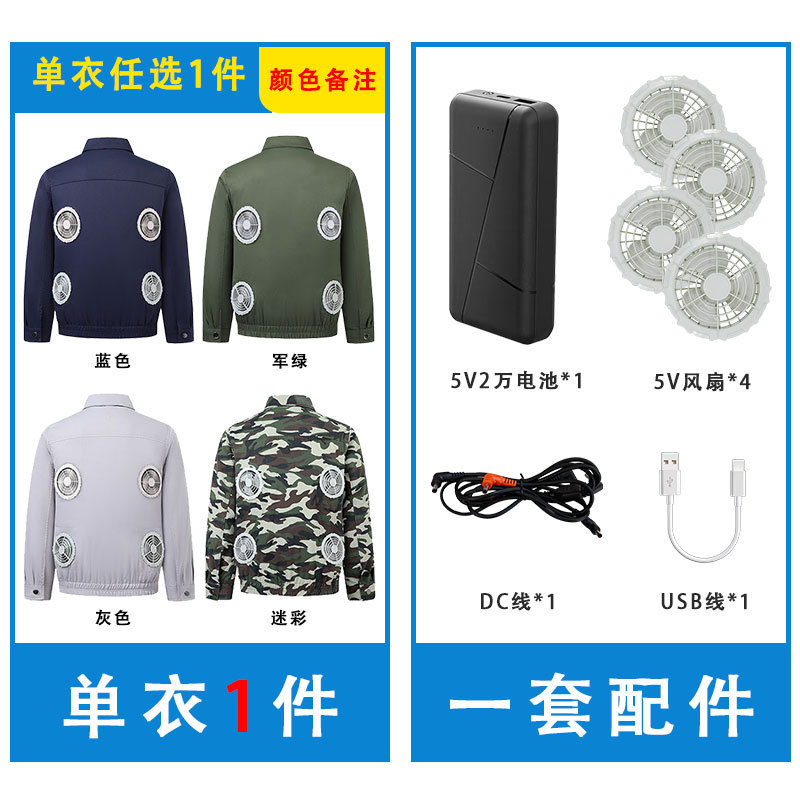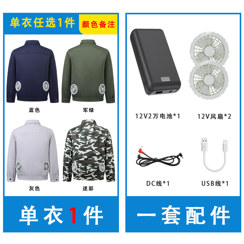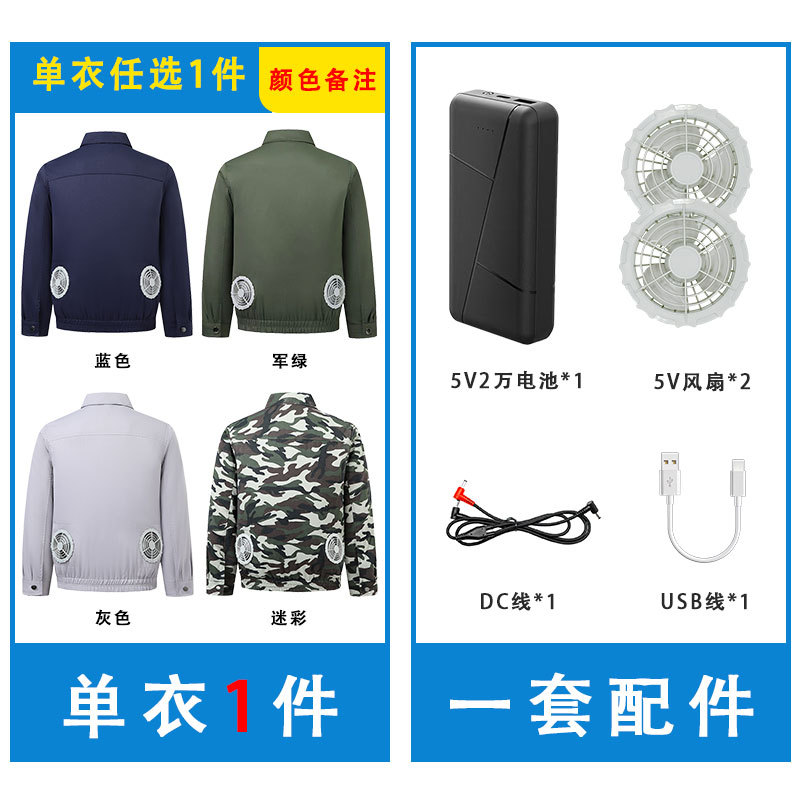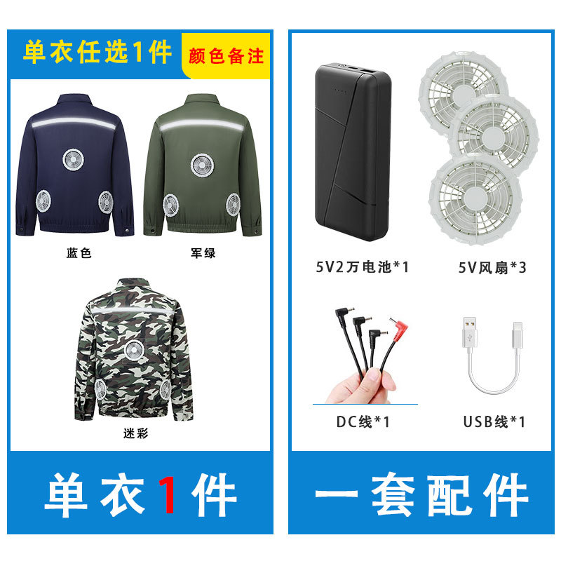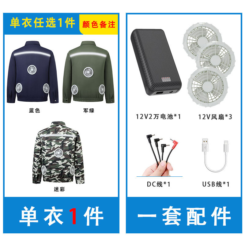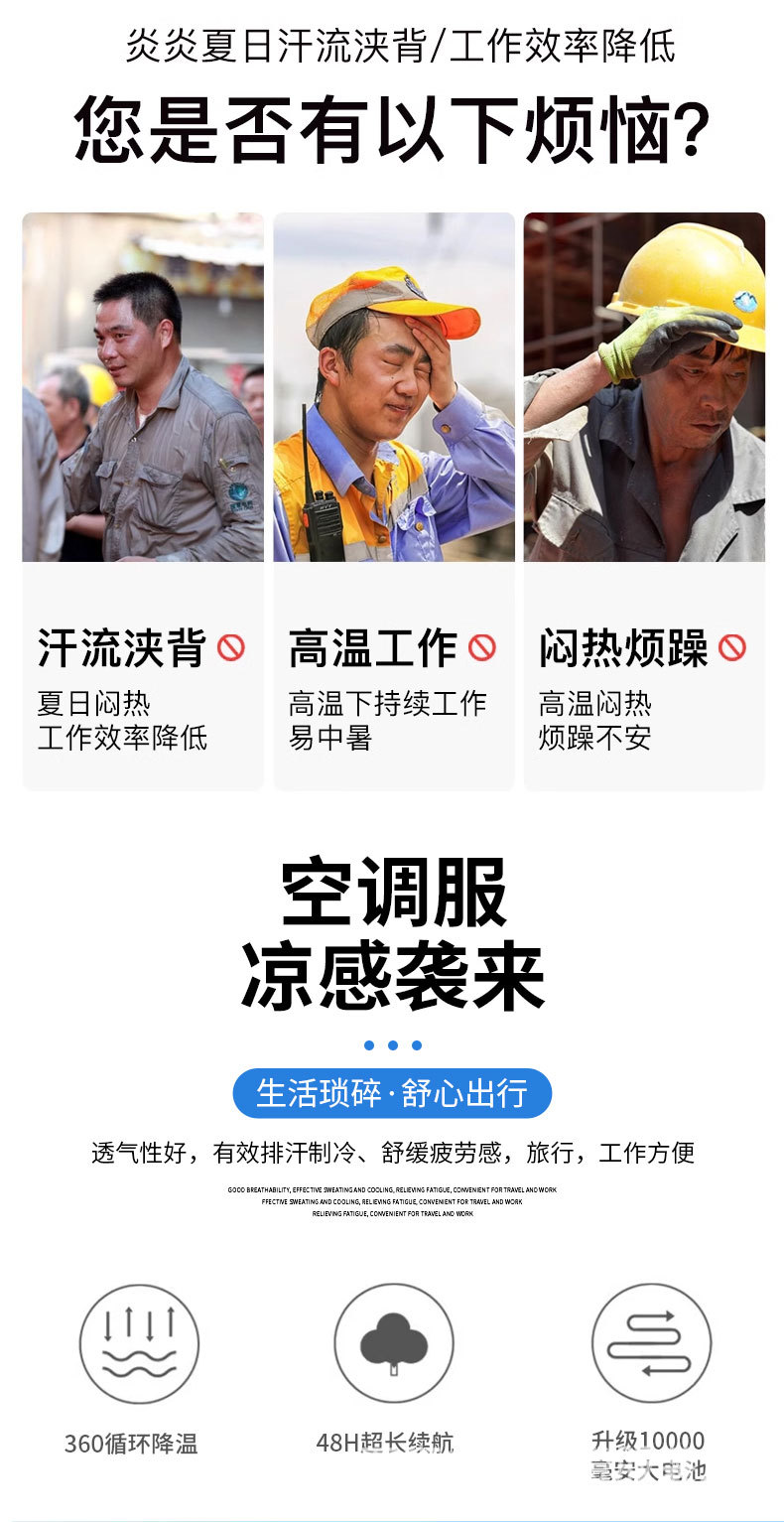 带3/4风扇衣服夏季空调服男女款户外工人制冷降温劳保工作服跨境