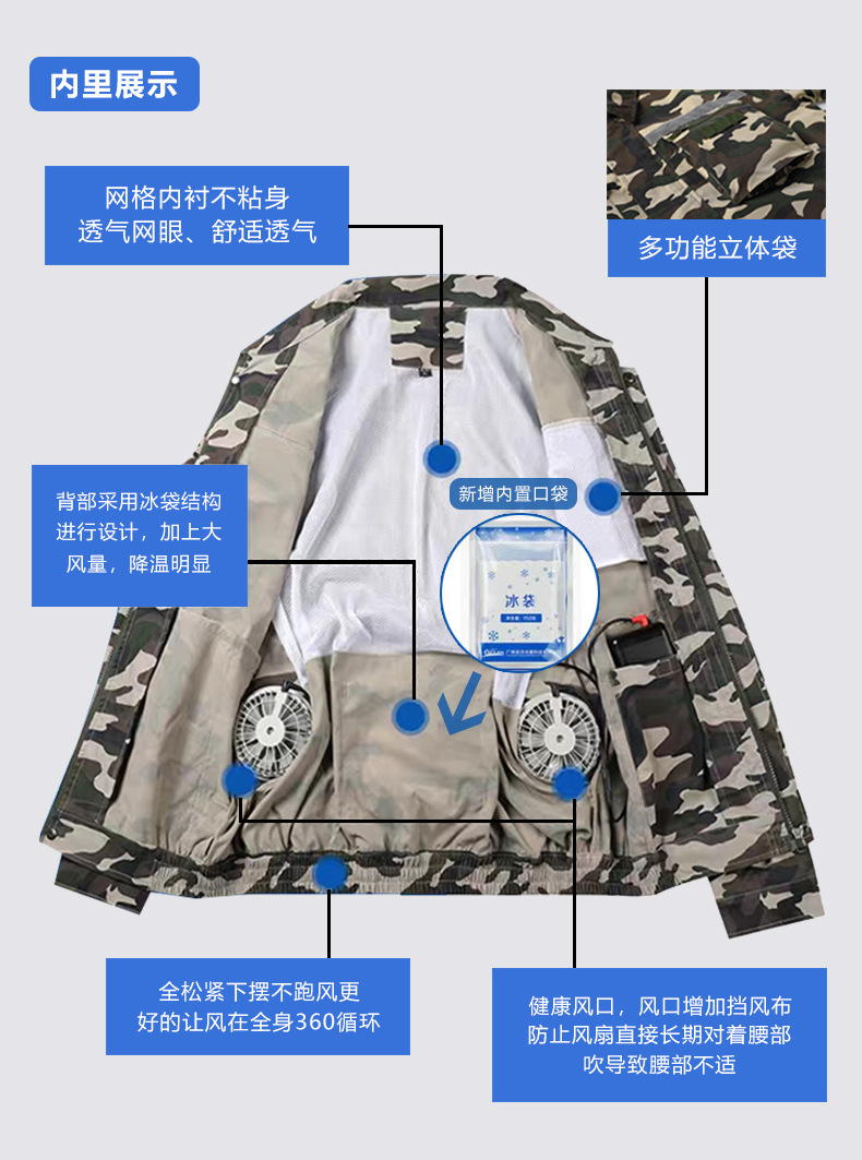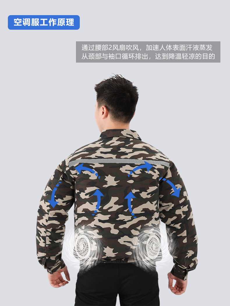 反光空调服夏季风扇服劳保降温工地工作带风扇的衣服多功能迷彩服