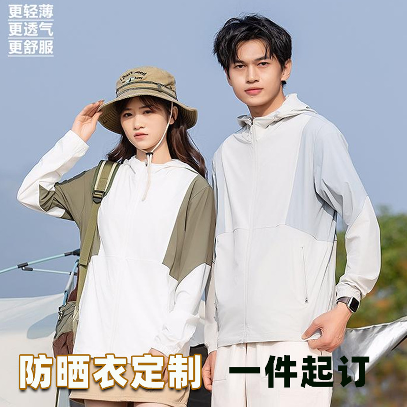 凉感轻薄拼色防晒衣印logo男女情侣款防晒服户外登山骑行开衫外套