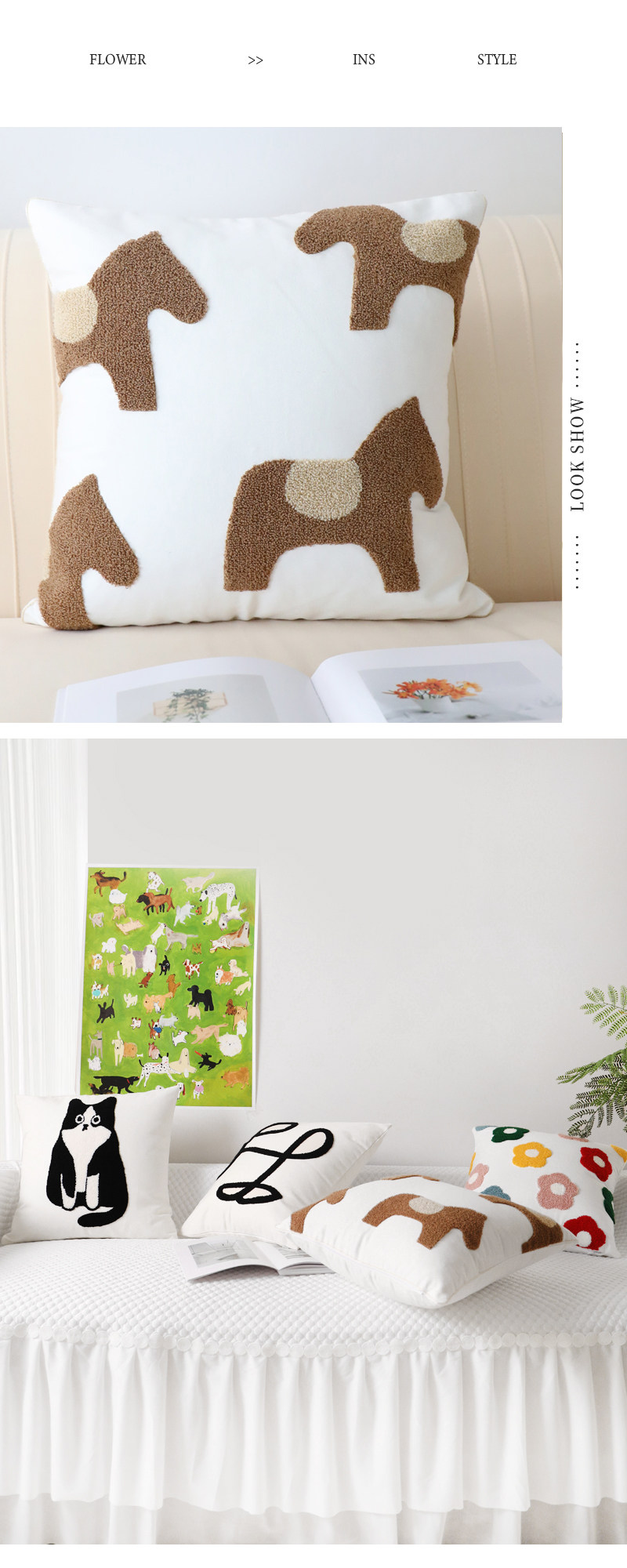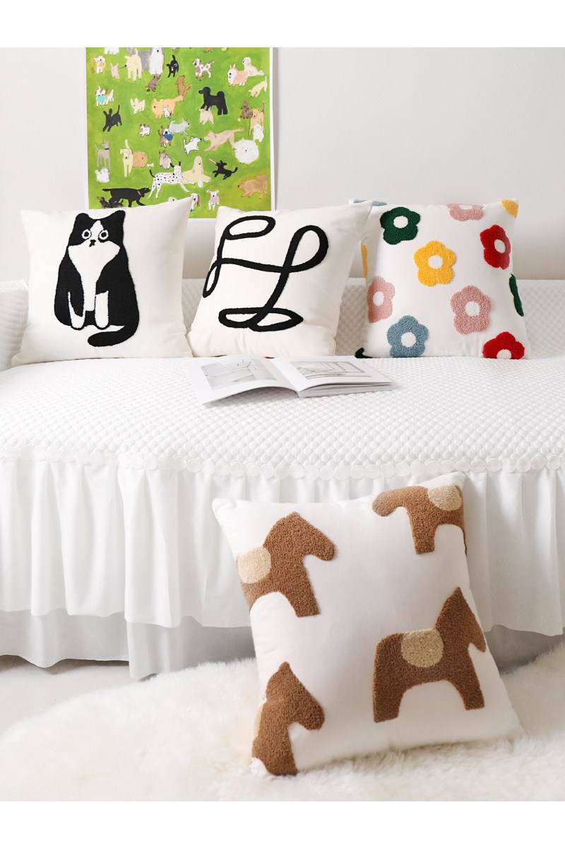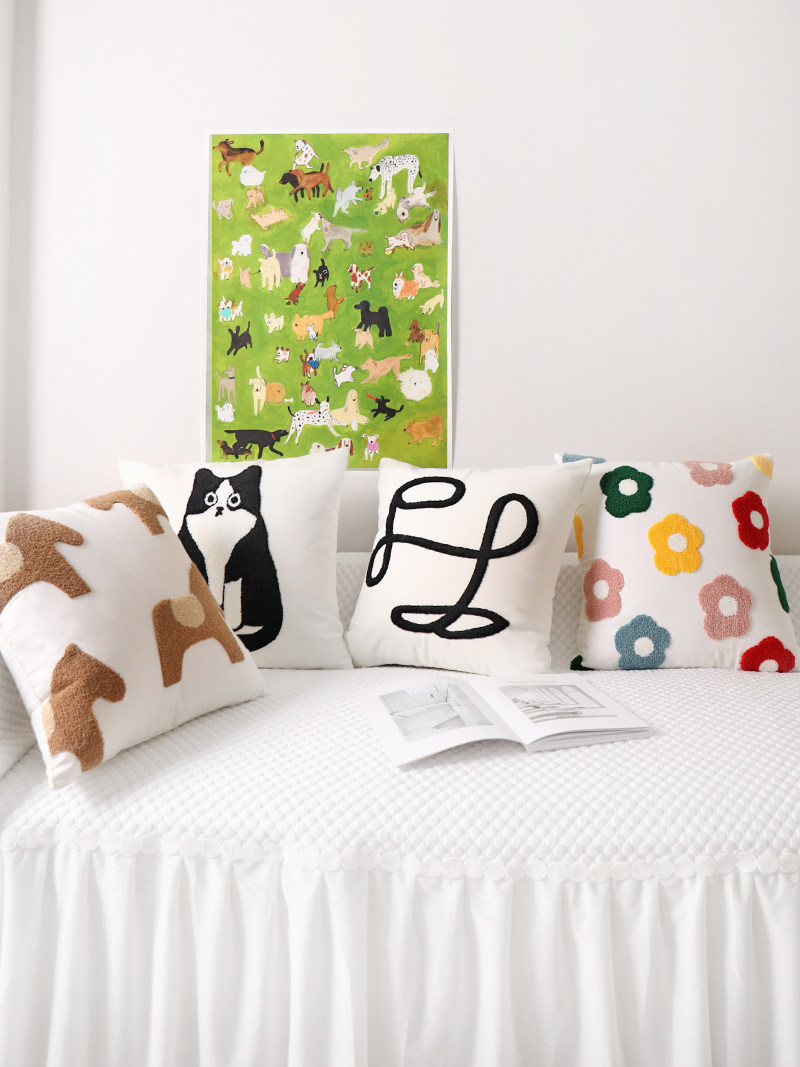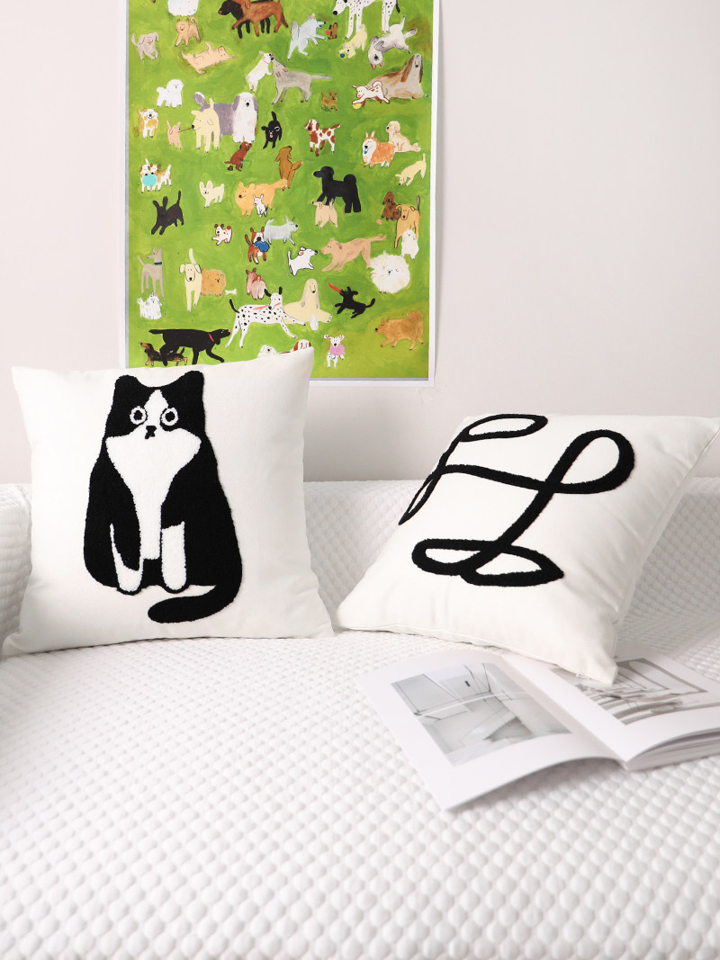简约客厅抱枕现代靠垫小狗卡通绣花枕套全棉加厚帆布时尚布艺靠包