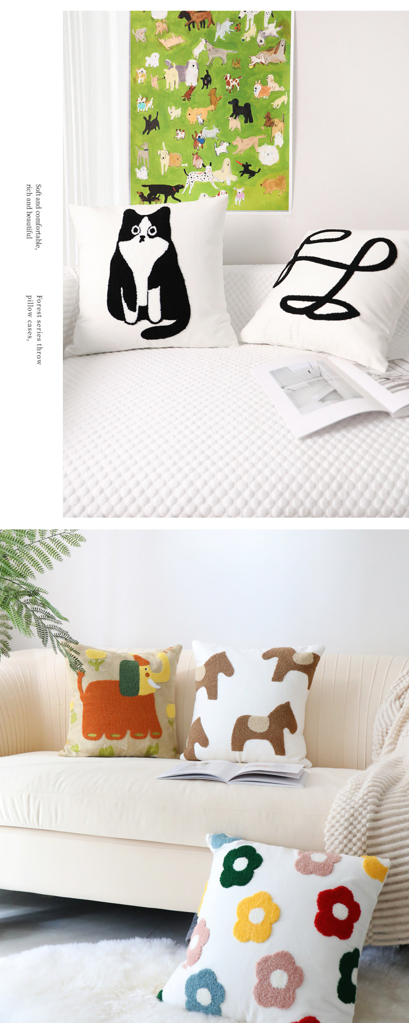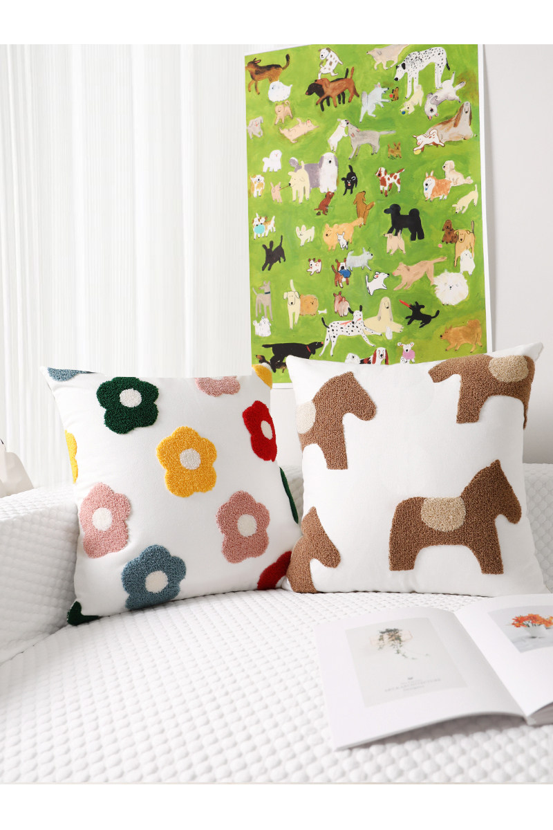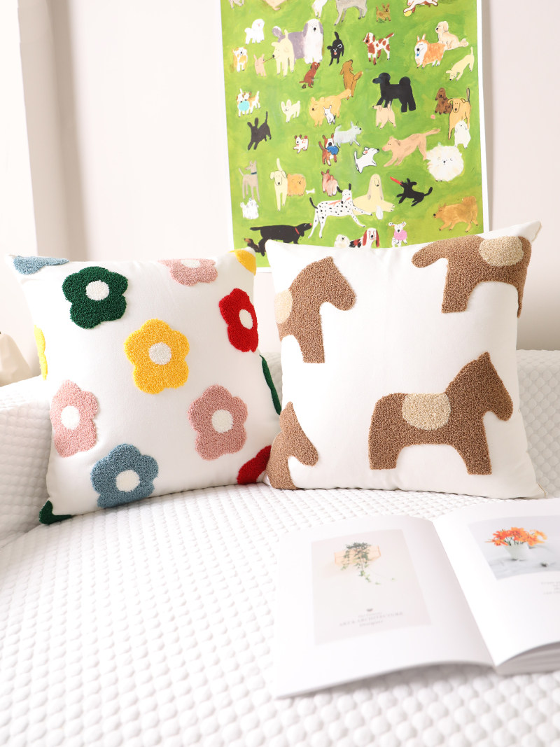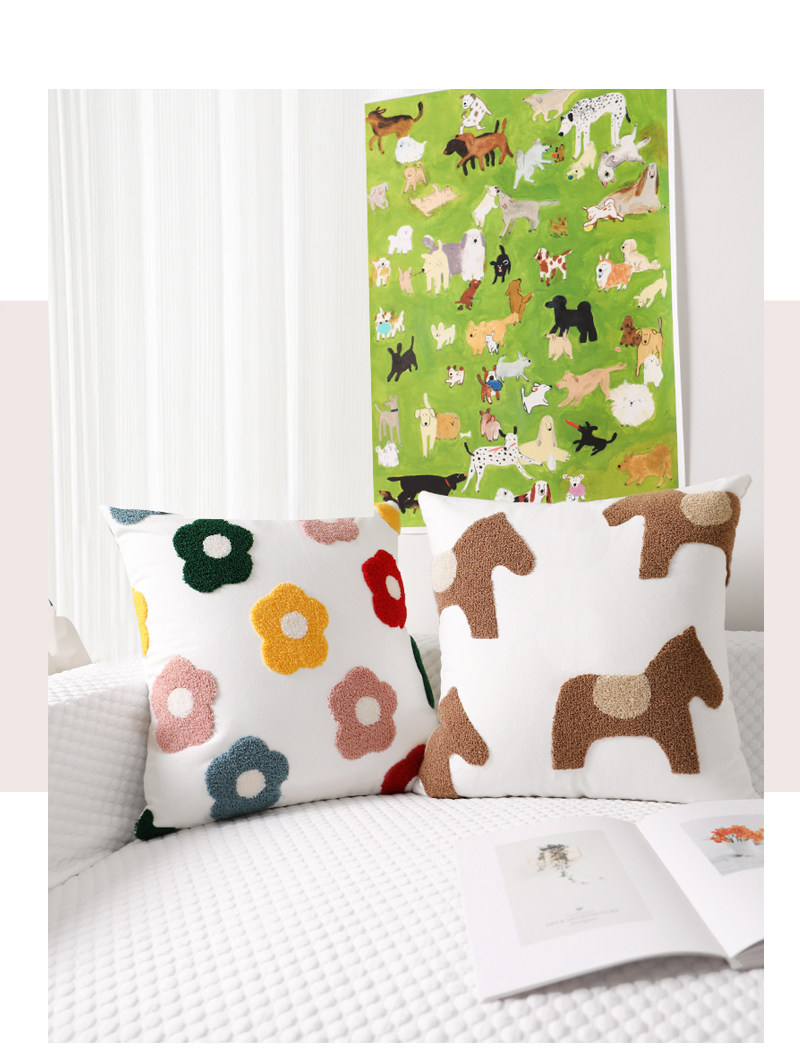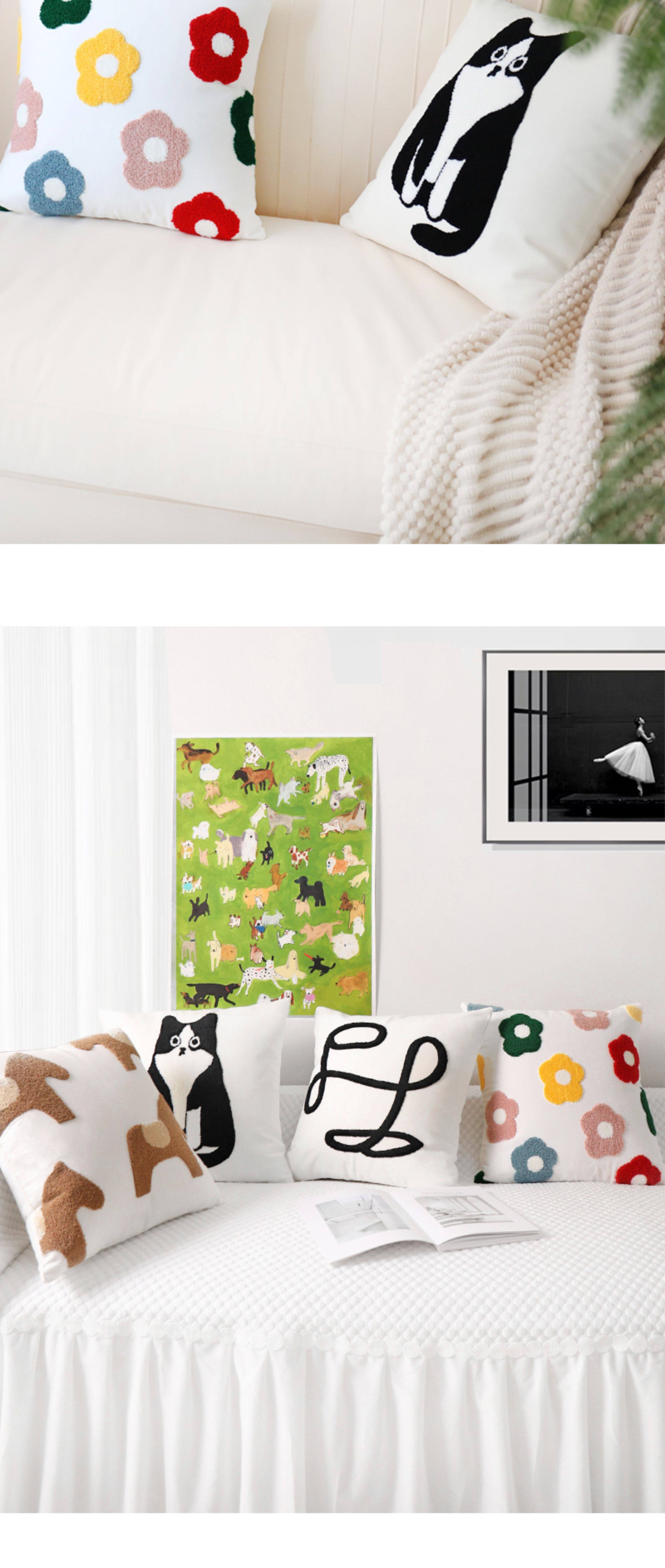 简约客厅抱枕现代靠垫小狗卡通绣花枕套全棉加厚帆布时尚布艺靠包