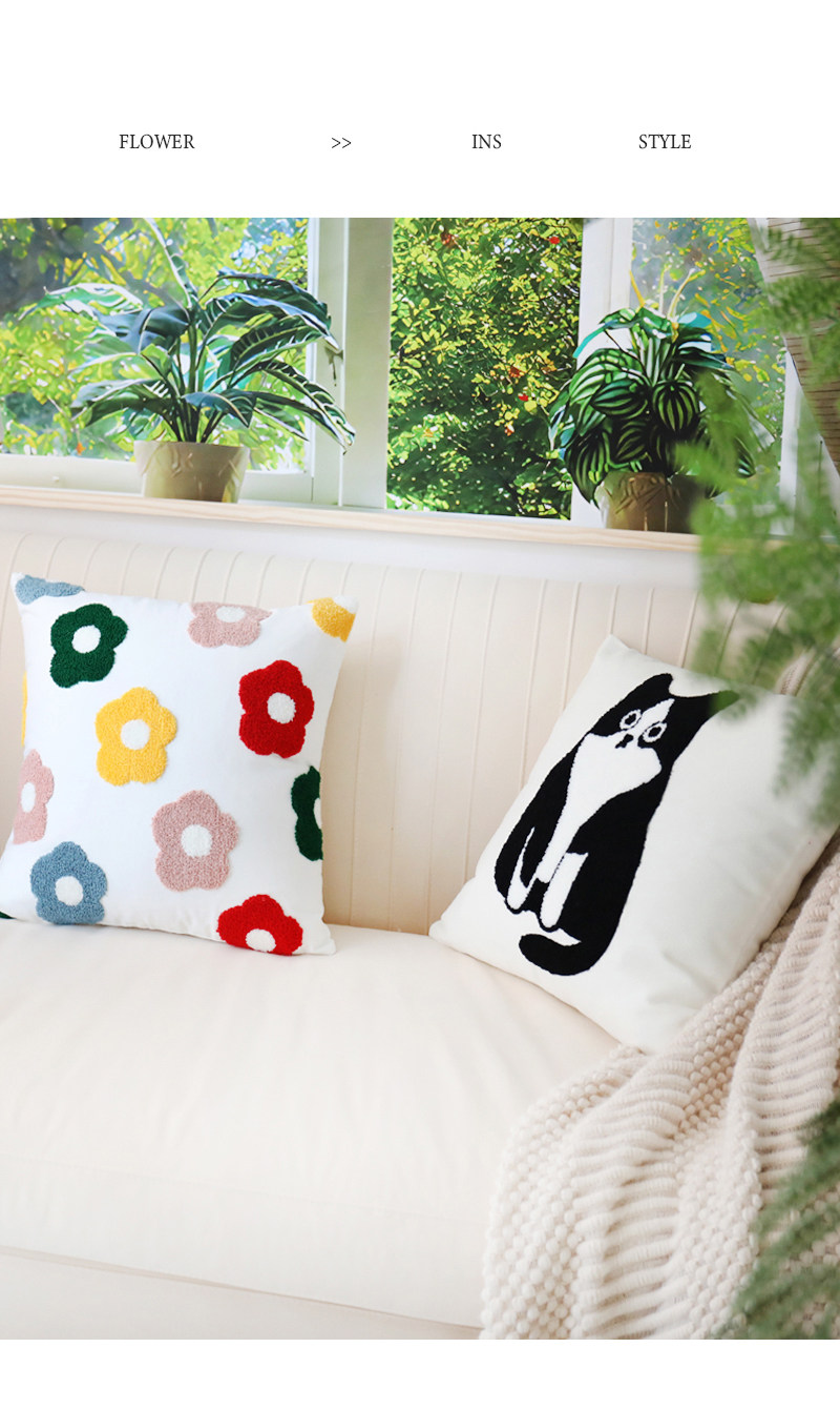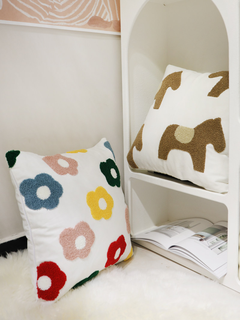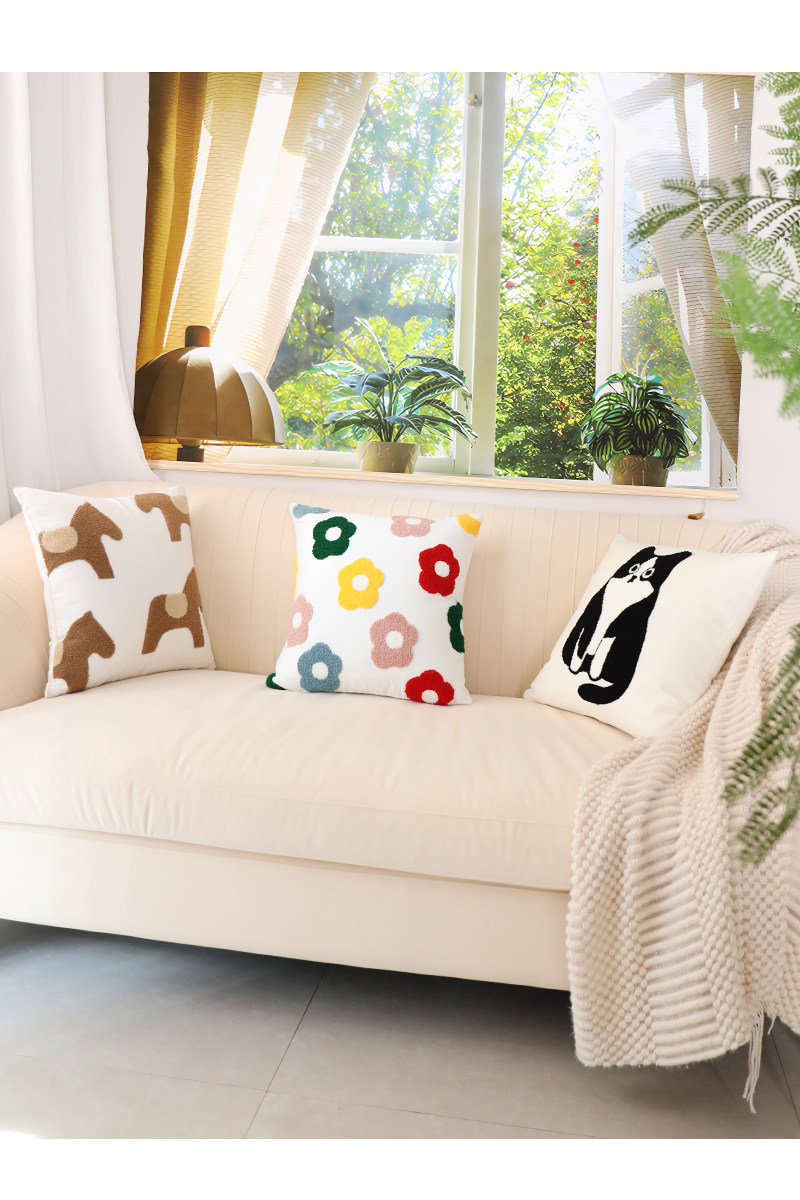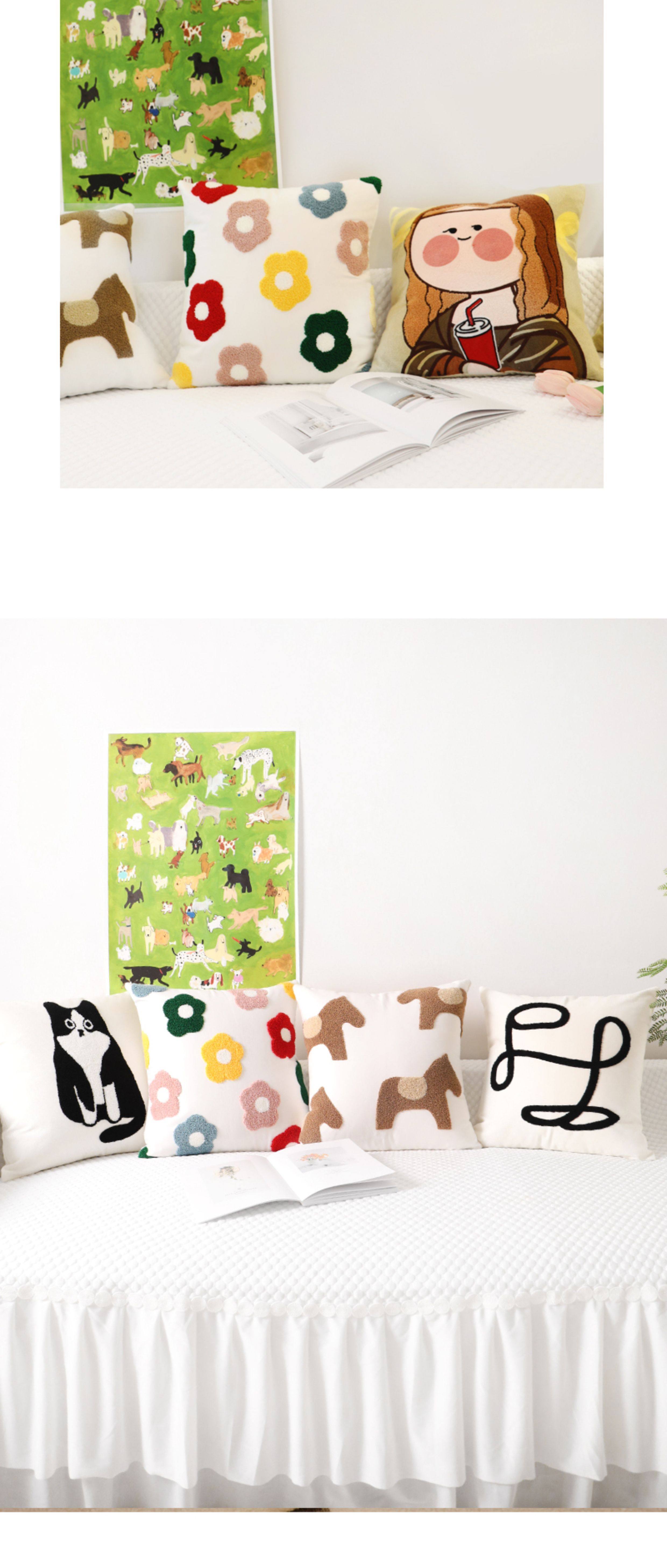 简约客厅抱枕现代靠垫小狗卡通绣花枕套全棉加厚帆布时尚布艺靠包