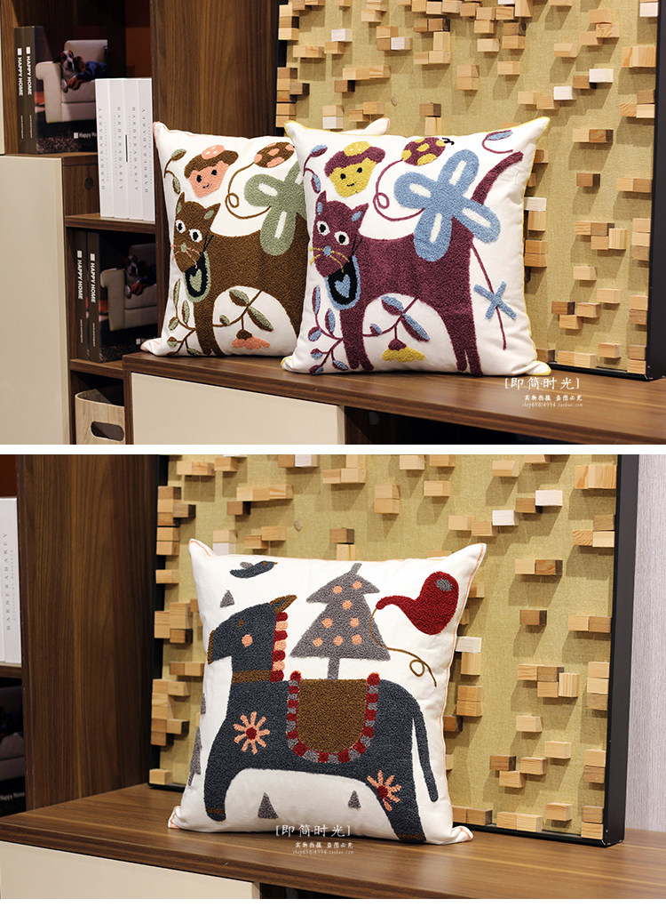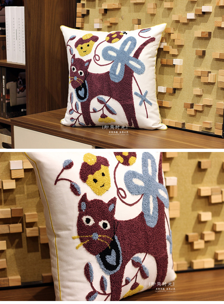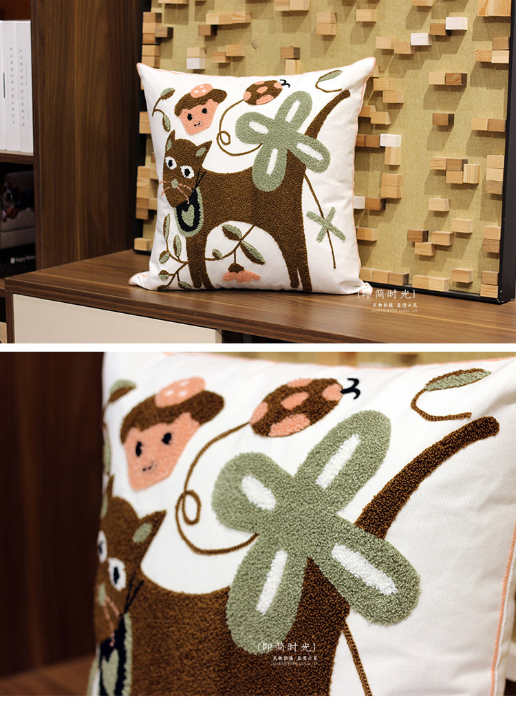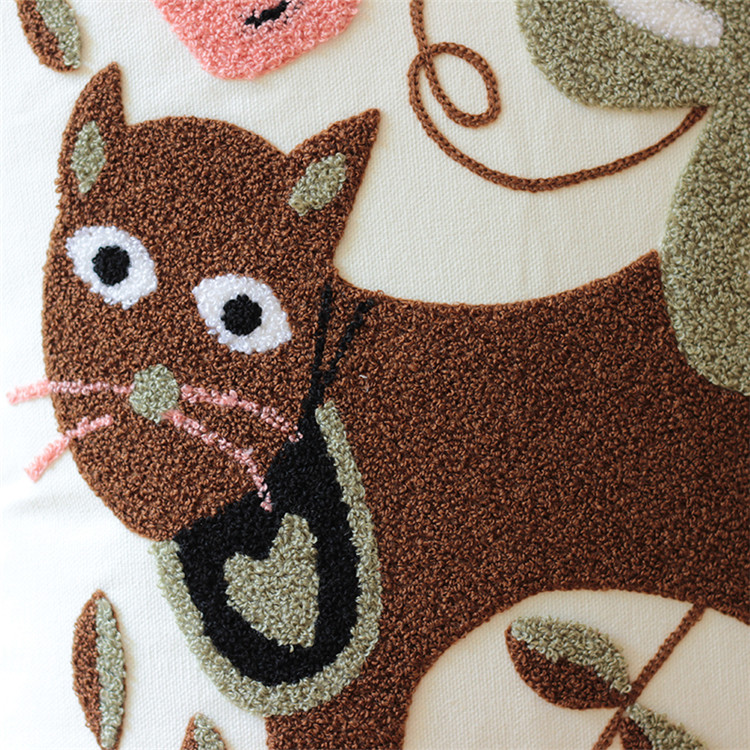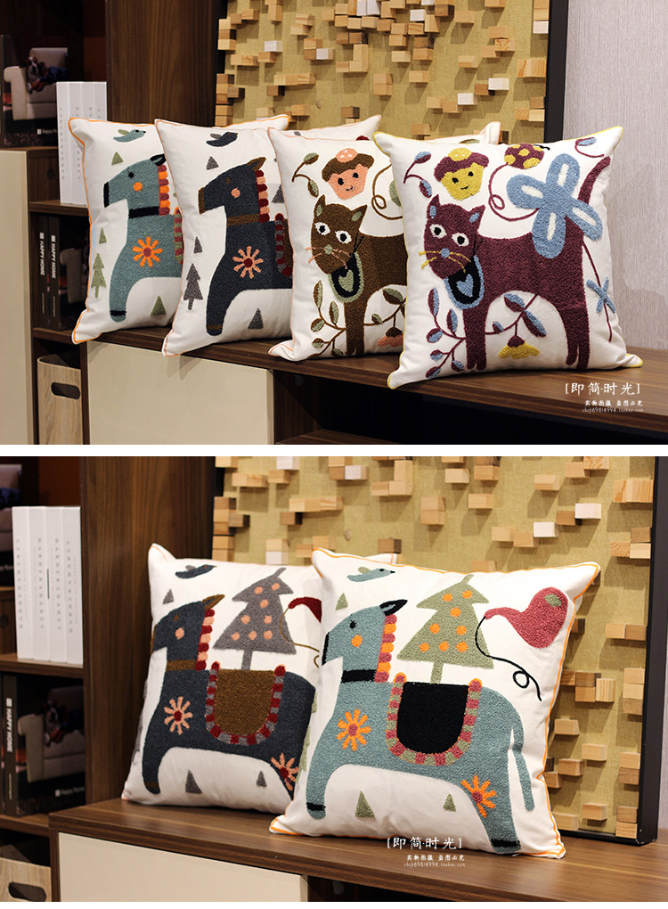 文艺可爱卡通客厅沙发靠垫抱枕 美式乡村鲁绣靠枕办公室座椅靠垫