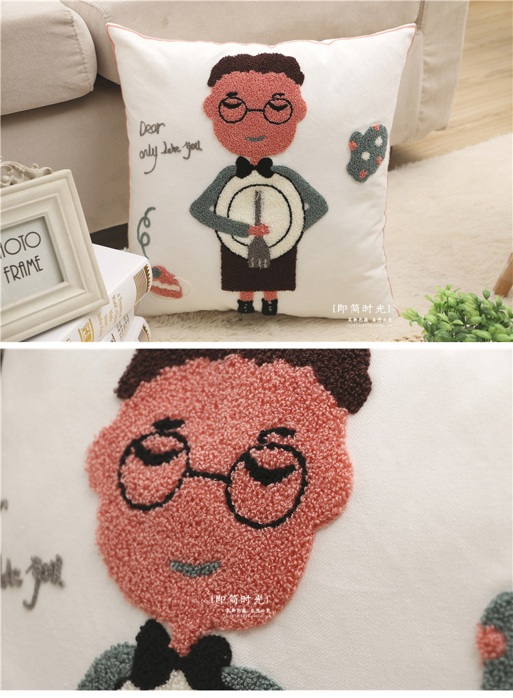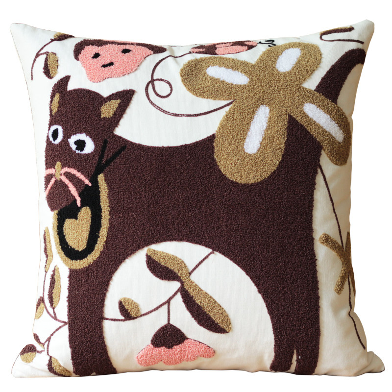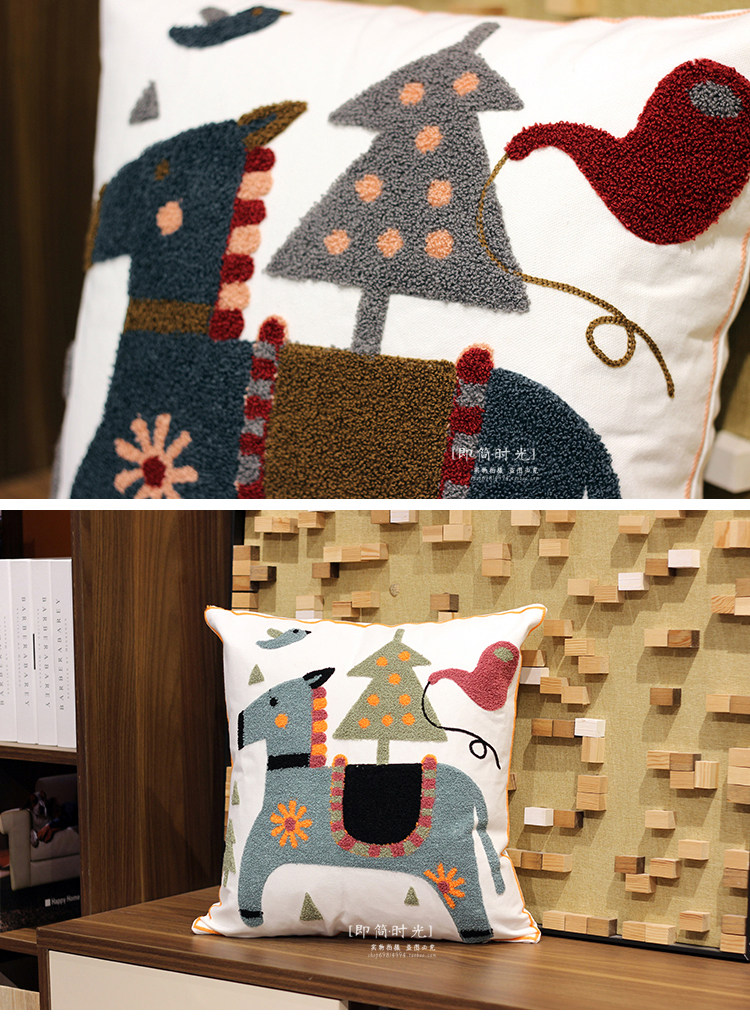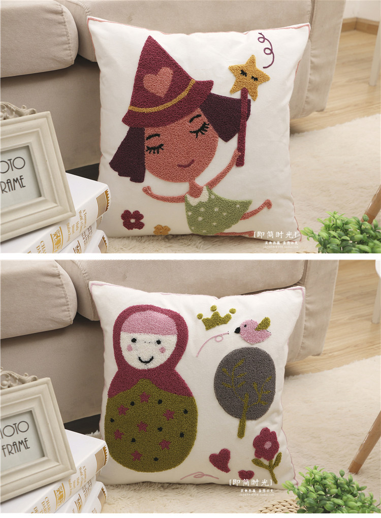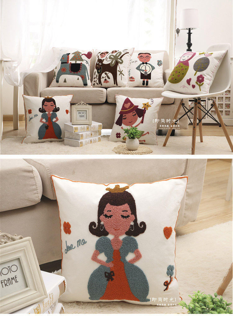 文艺可爱卡通客厅沙发靠垫抱枕 美式乡村鲁绣靠枕办公室座椅靠垫