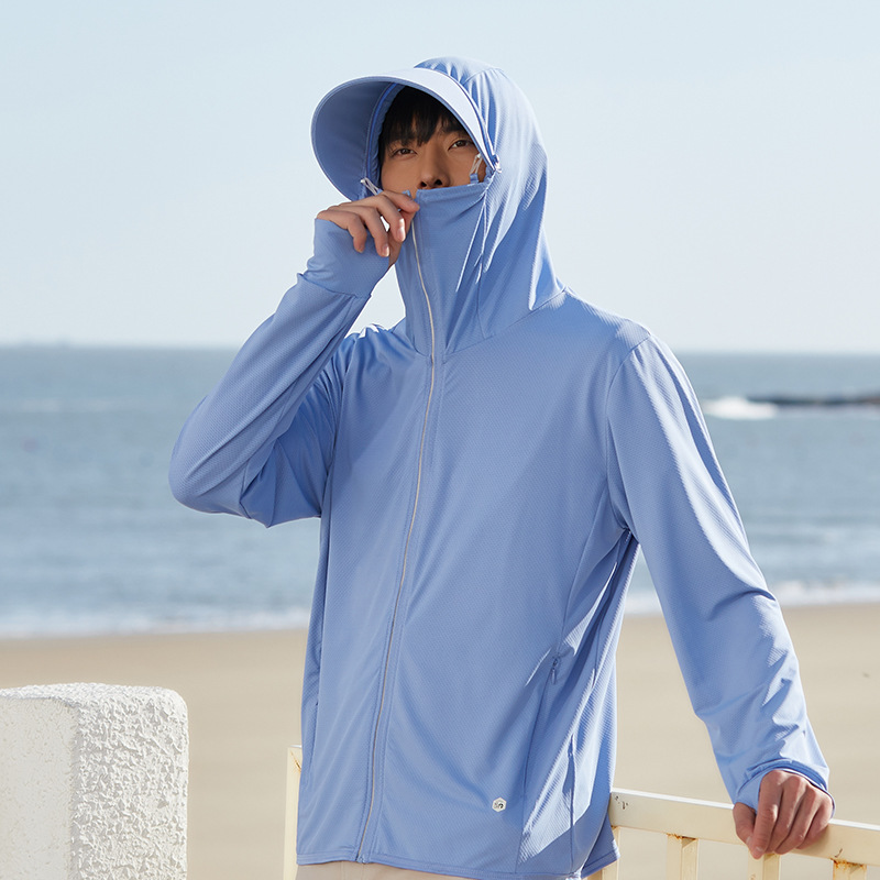 夏季户外冰丝防晒衣女款连帽防紫外线大帽檐钓鱼防晒外套男防晒服
