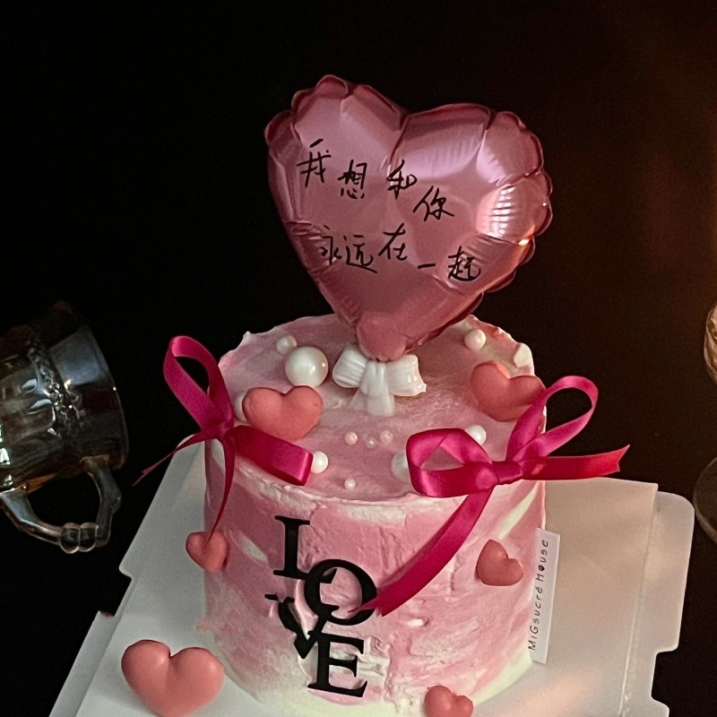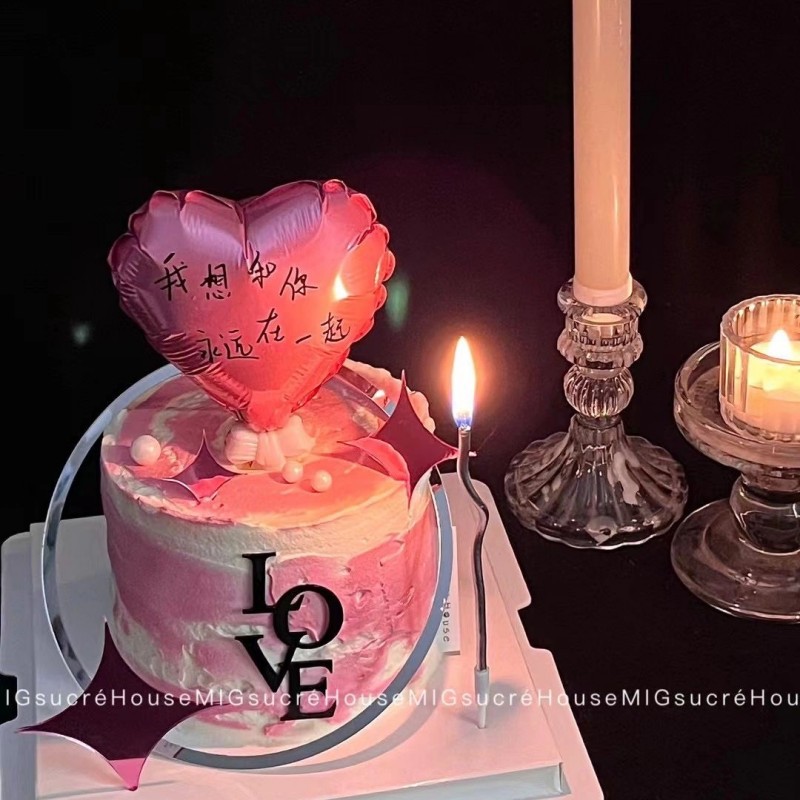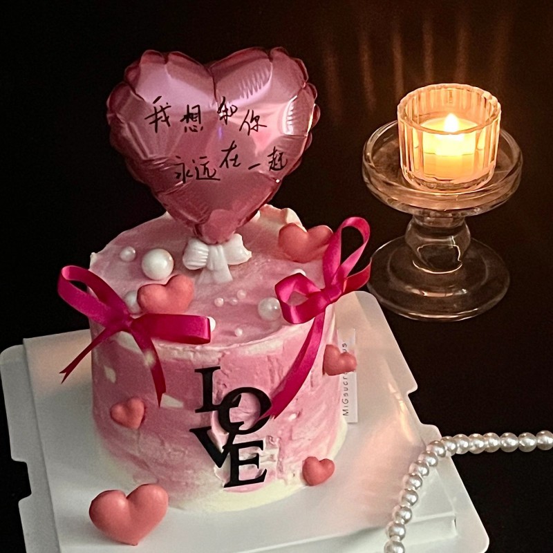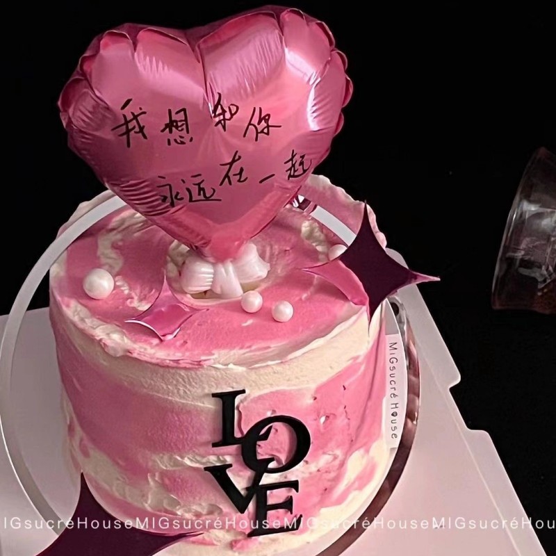 七夕情人节love亚克力蛋糕装饰5寸我想和你在一起气球蛋糕装饰