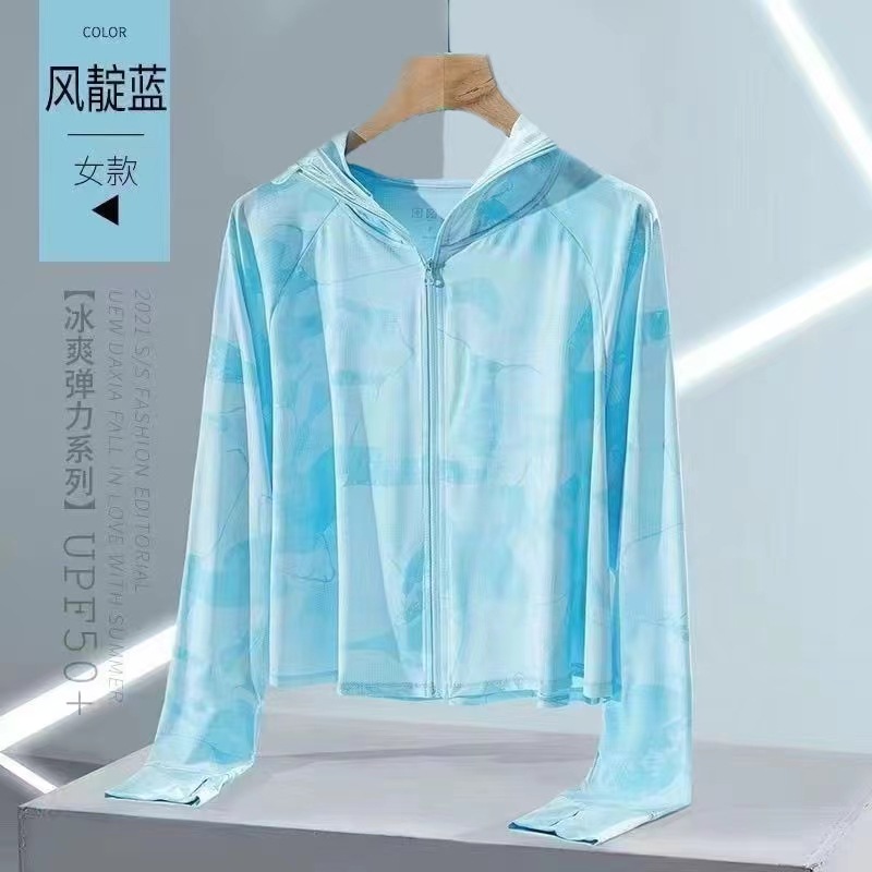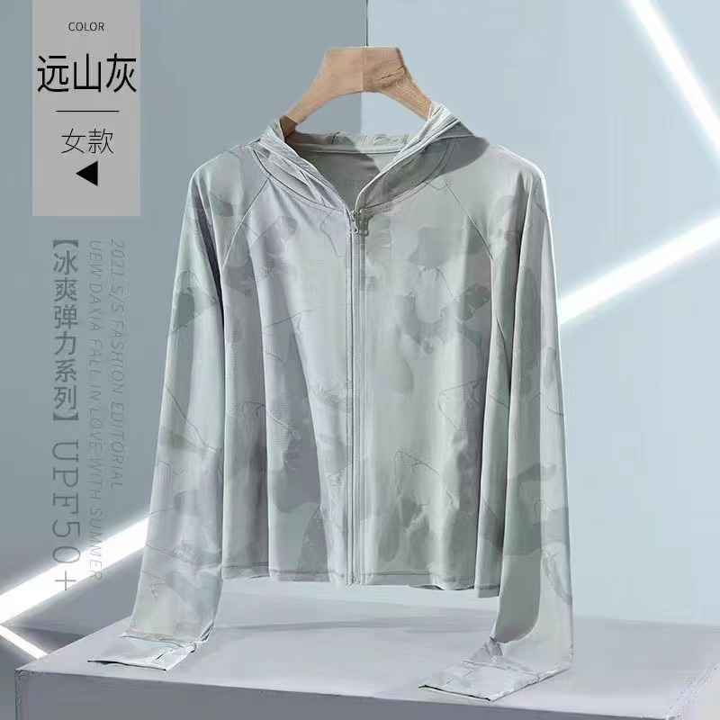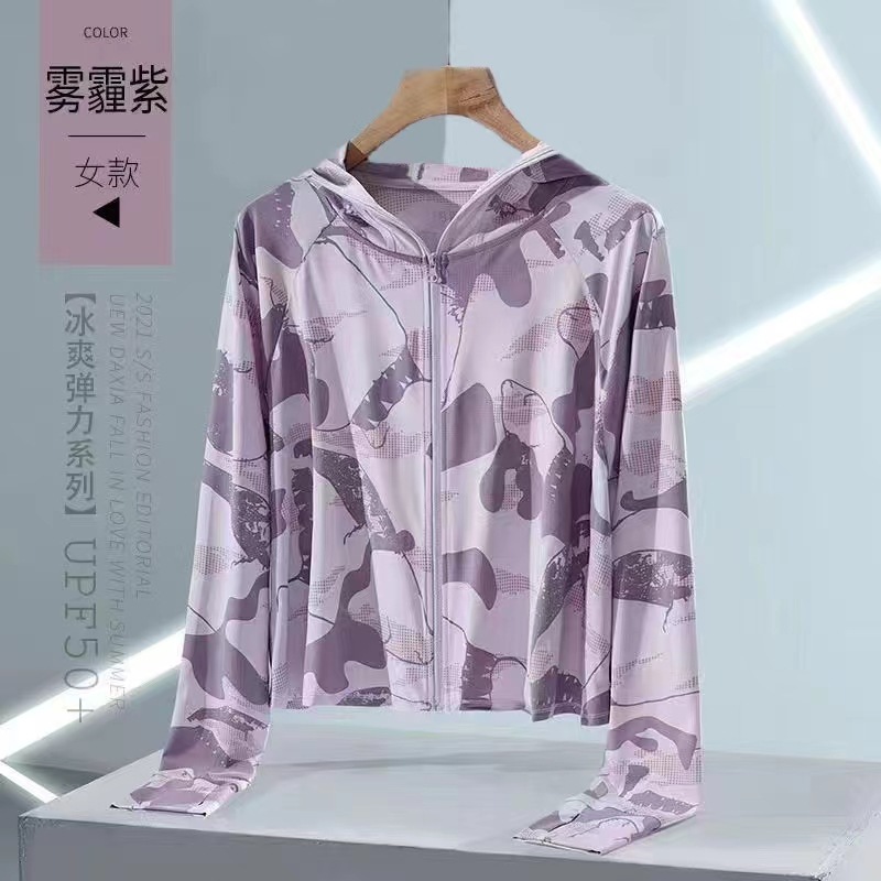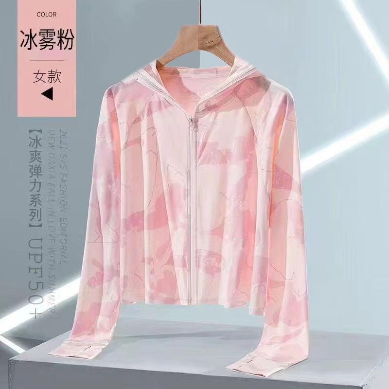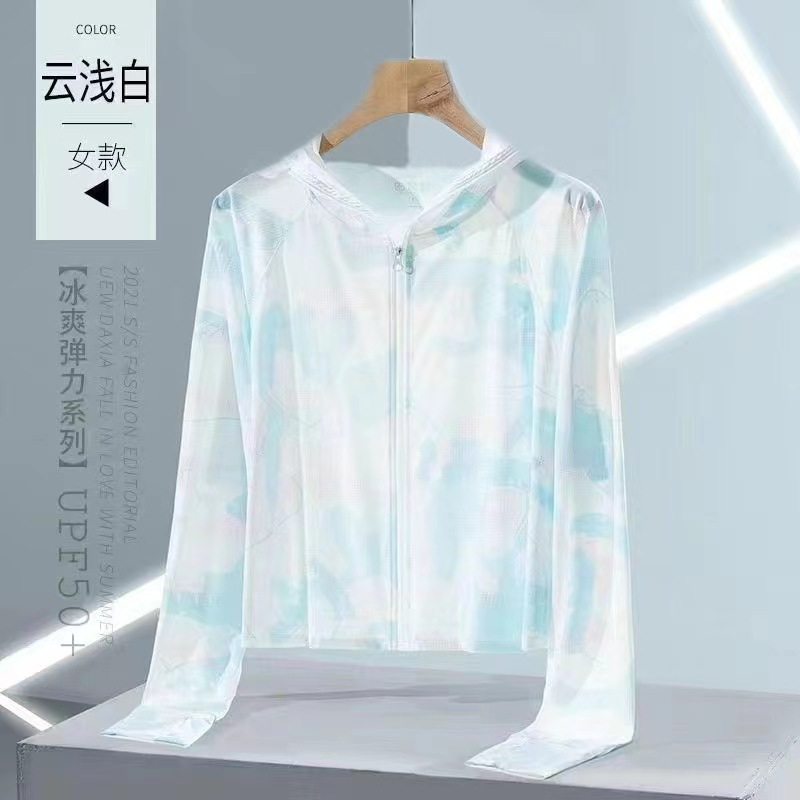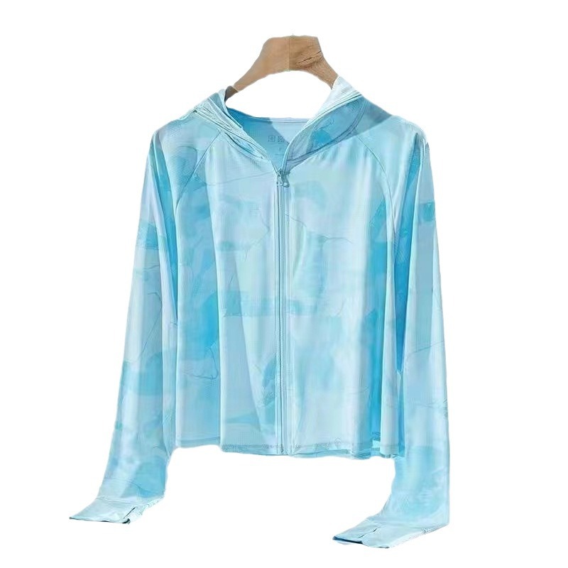 2024东南亚夏季新款女防晒衣薄款小外套户外必备满印拉链连帽上衣
