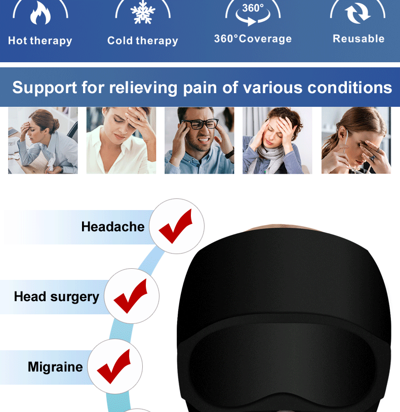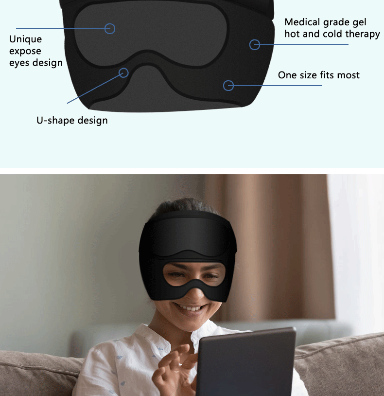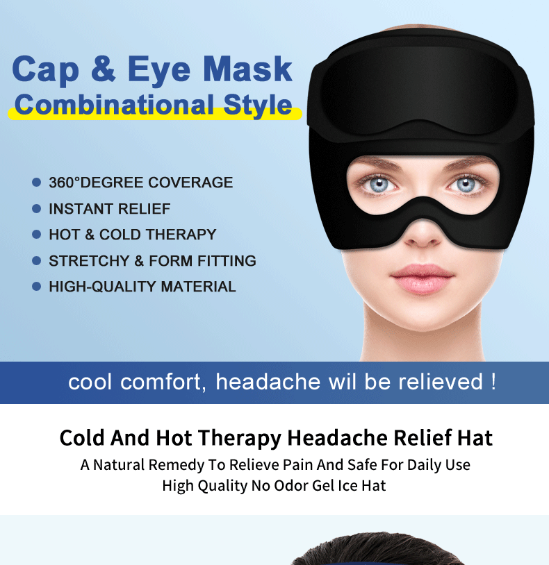 亚马逊新款固体凝胶帽冷热敷露眼睛冰敷面罩冰帽凝胶头套眼罩套装