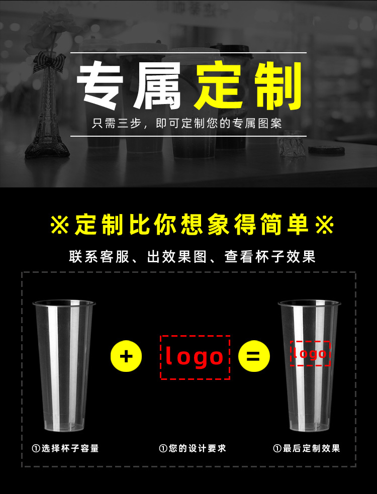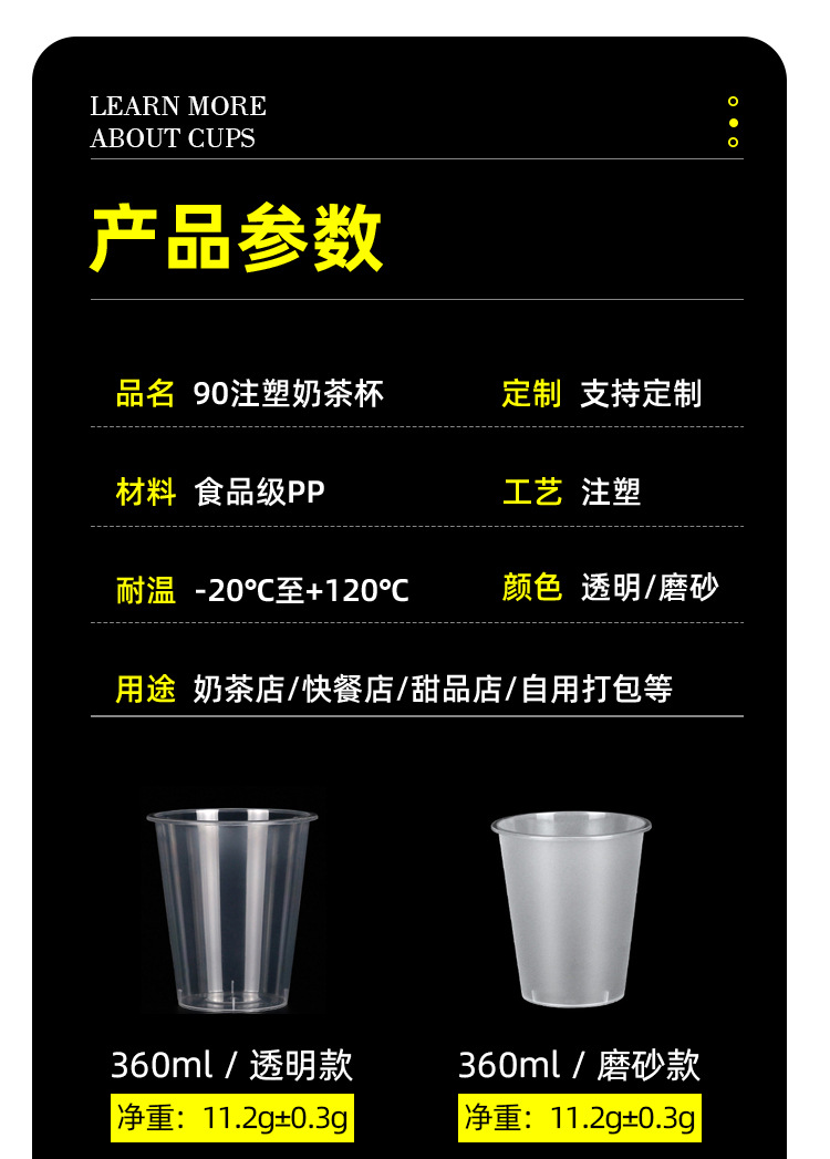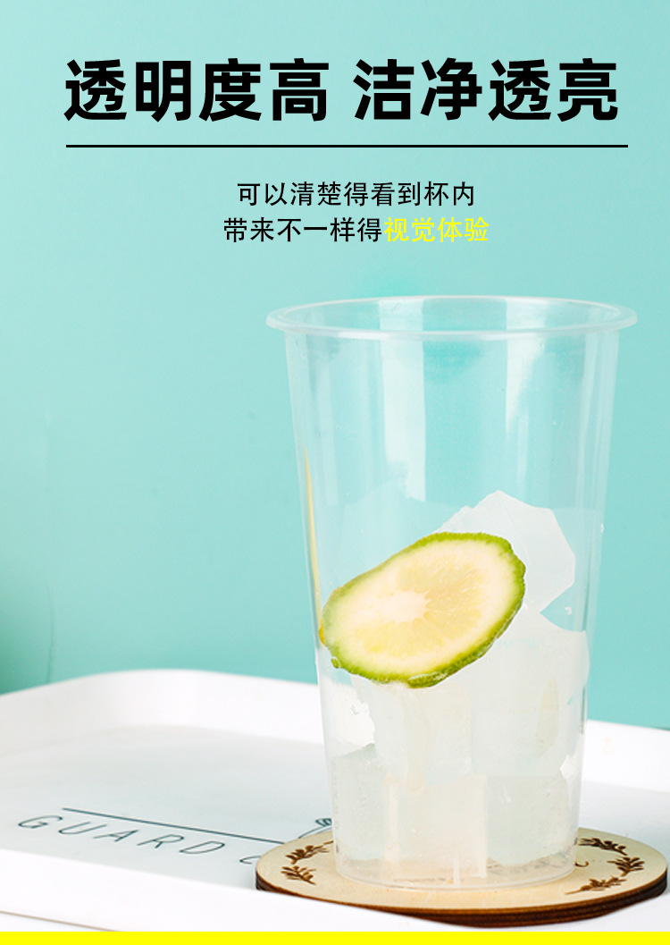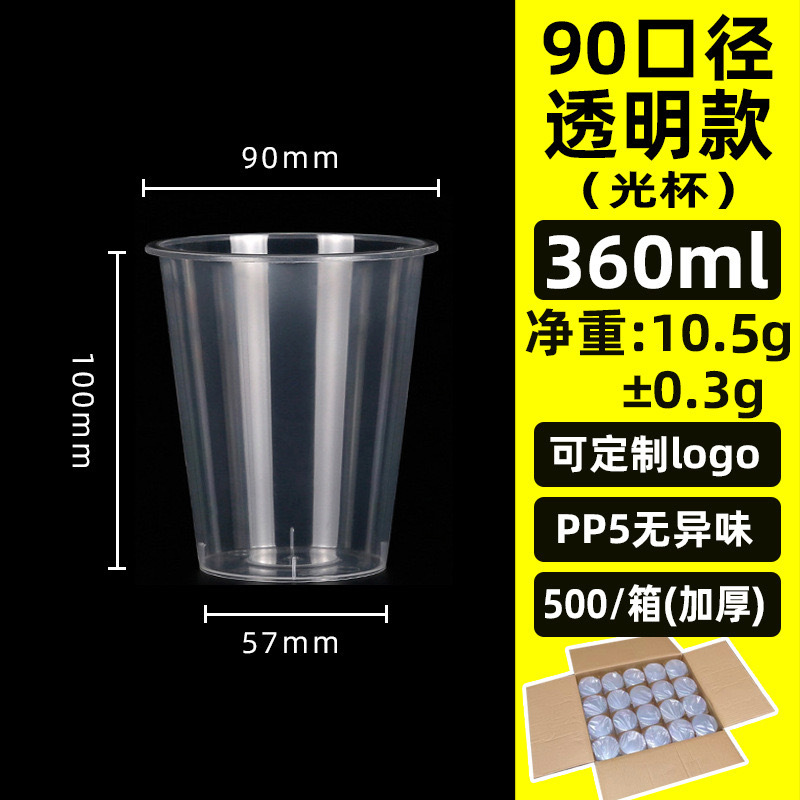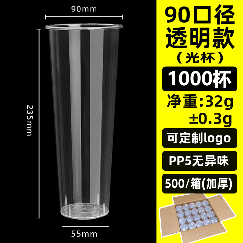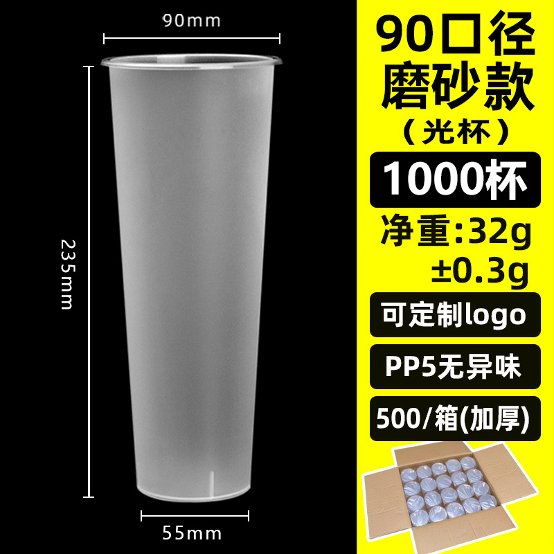 鼎善90口径一次性奶茶杯商用透明磨砂加厚果汁杯冷热注塑杯印logo
