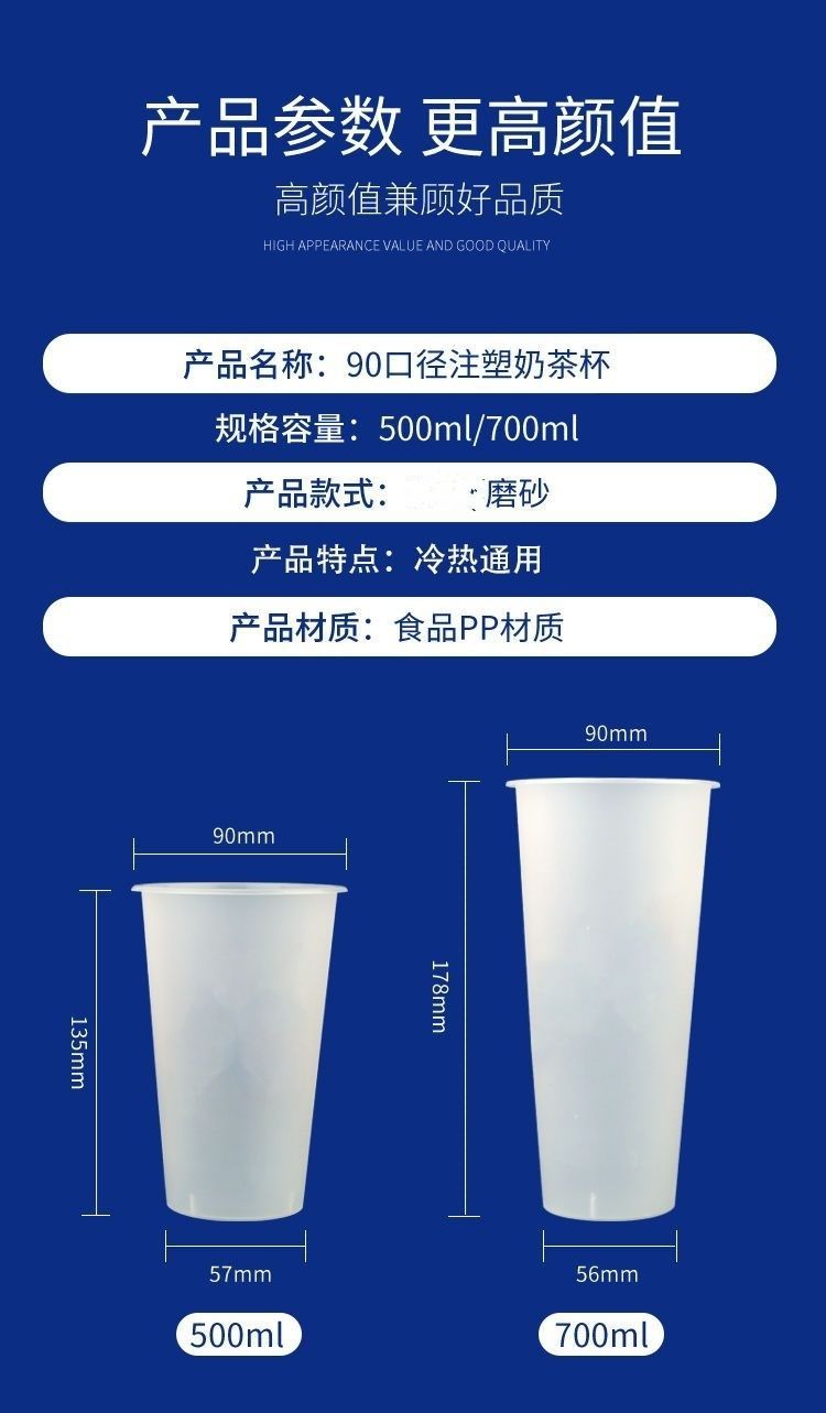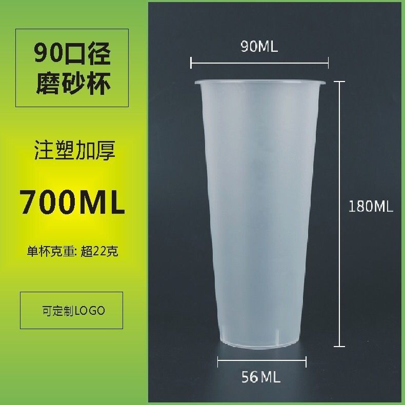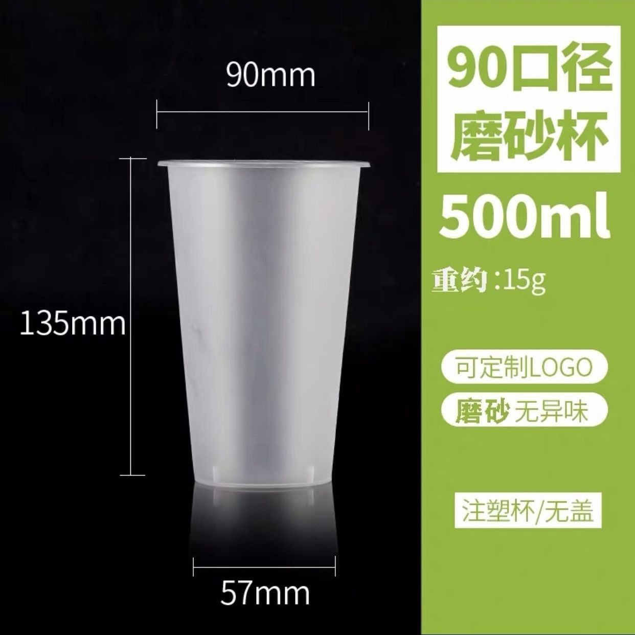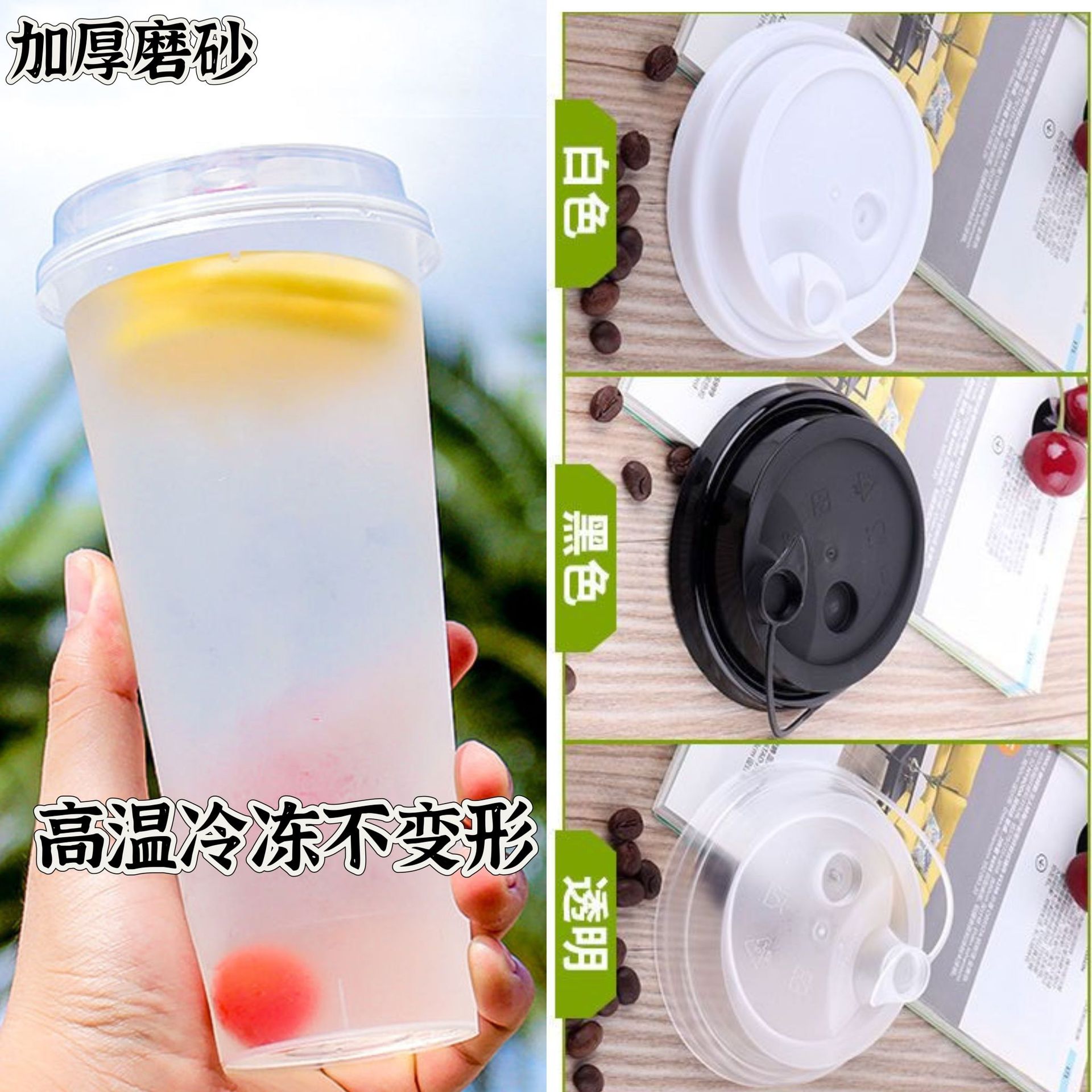 pp加厚磨砂杯带盖一次性果汁奶茶杯印花系列出售700/500ml注塑杯