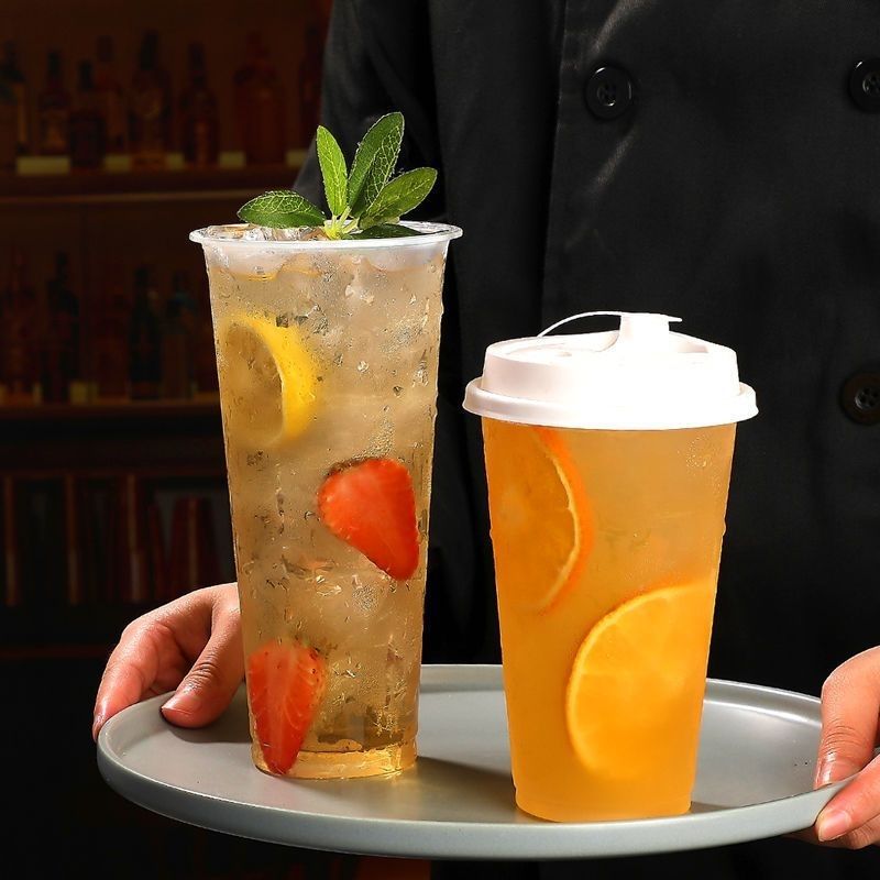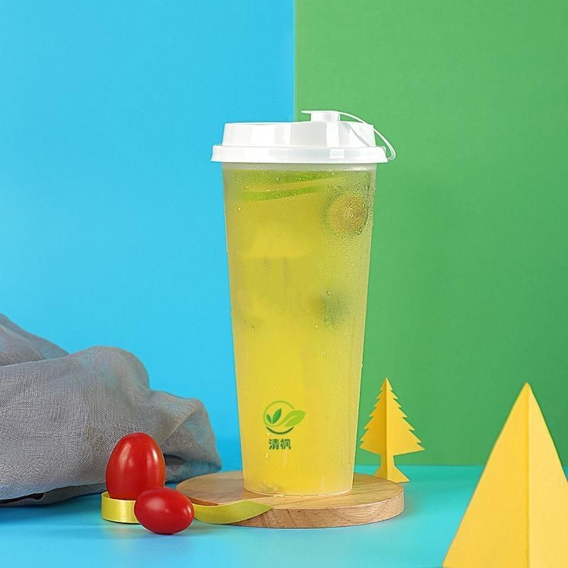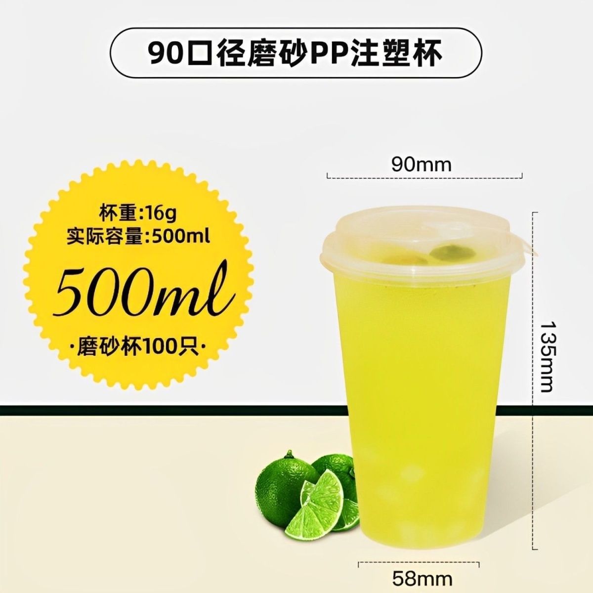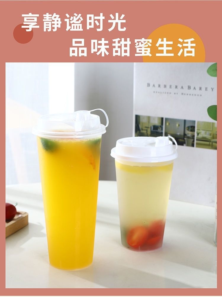 pp加厚磨砂杯带盖一次性果汁奶茶杯印花系列出售700/500ml注塑杯