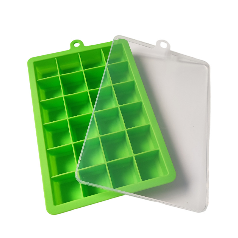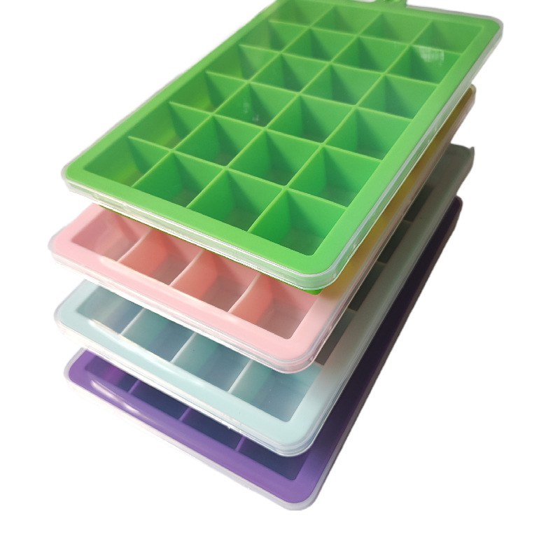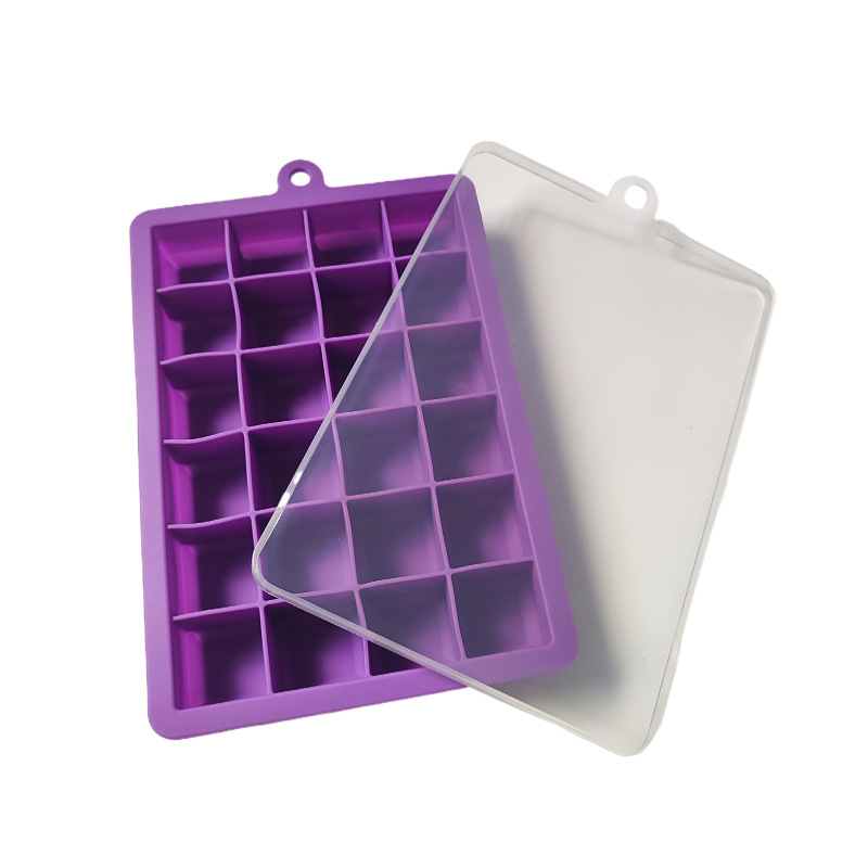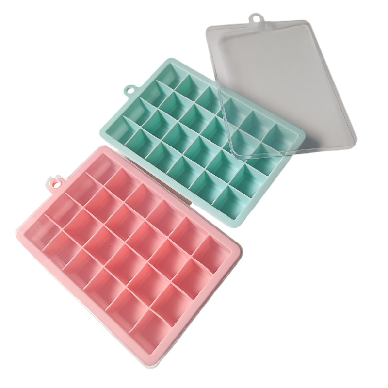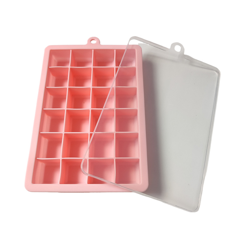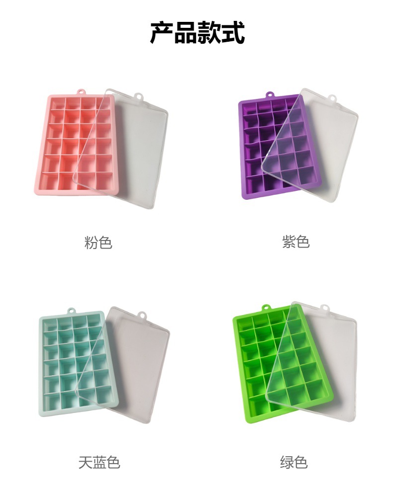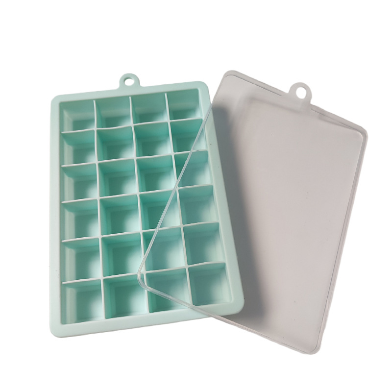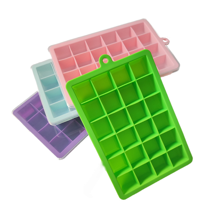 批发制冰膜具方形大容量冰块模具 家用自制冰24格带盖软硅胶冰格