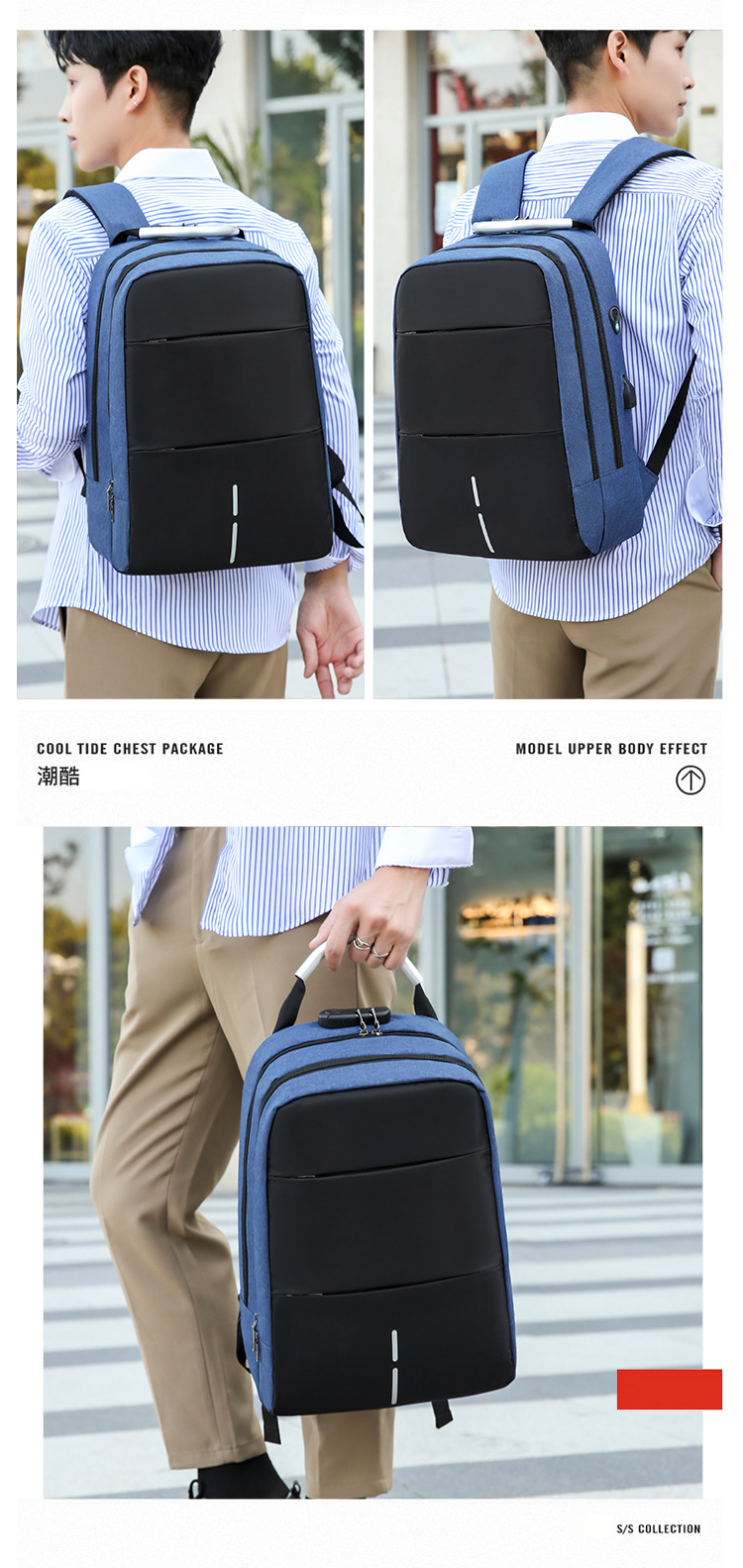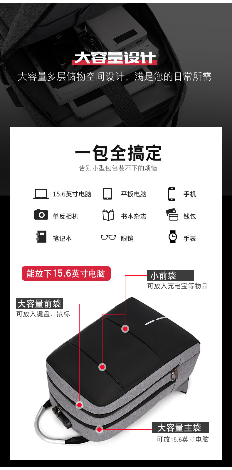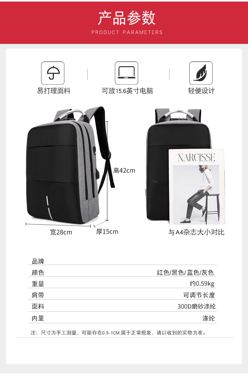 男士时尚双肩包商务电脑背包多隔层学生书包