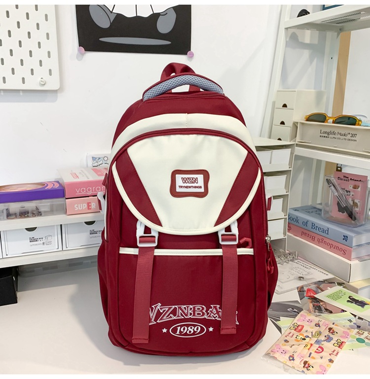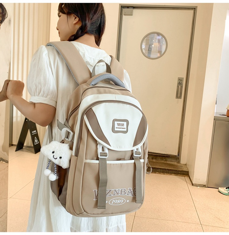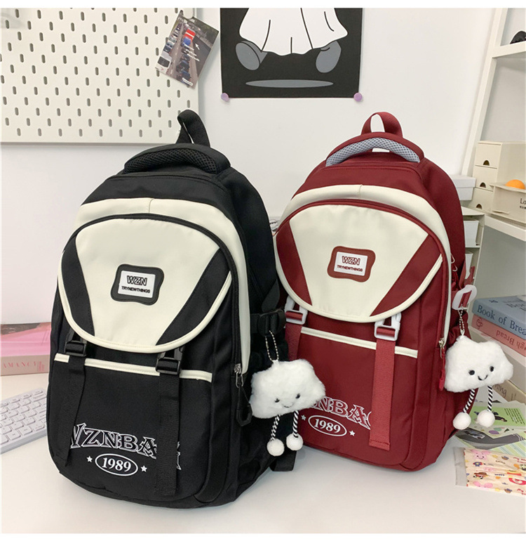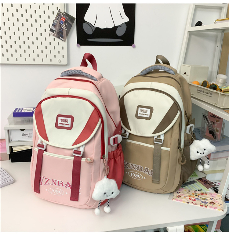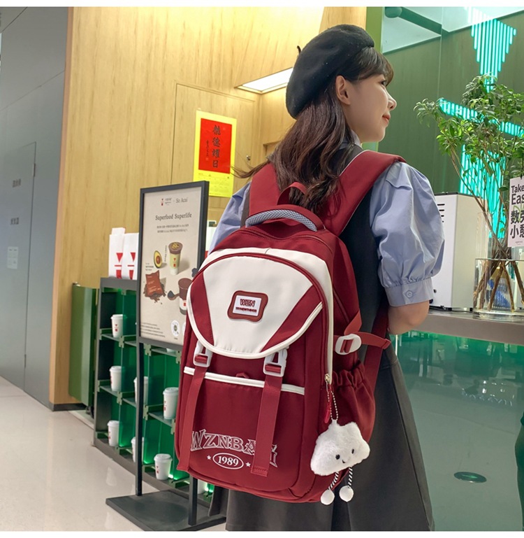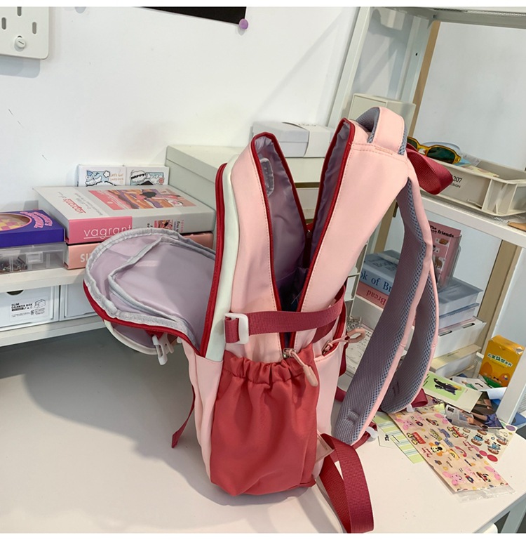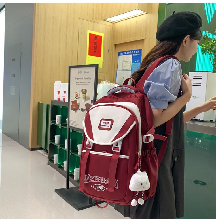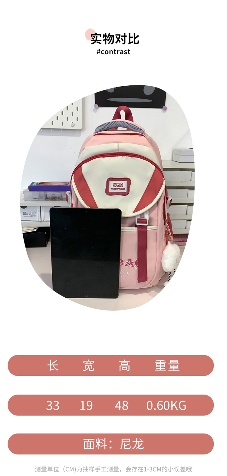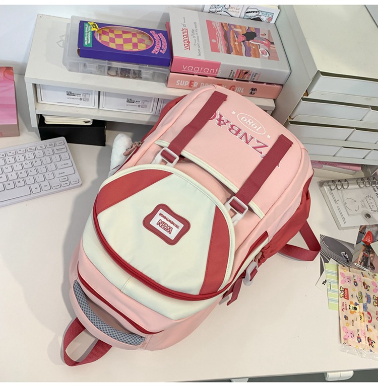 ins学院风书包女撞色双肩包初中女生高中学生背包