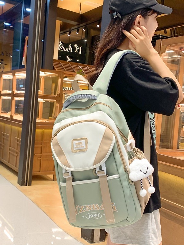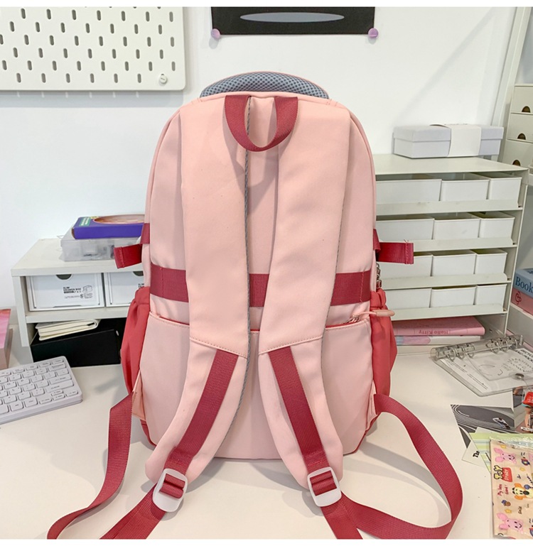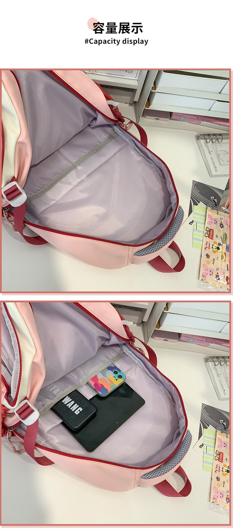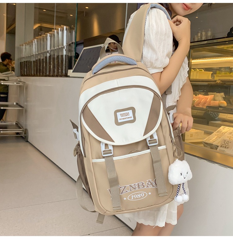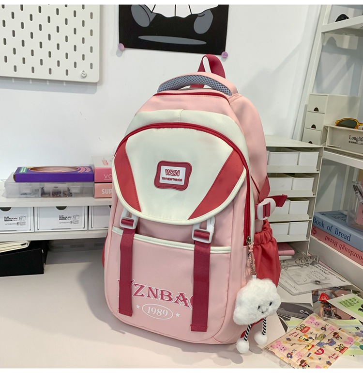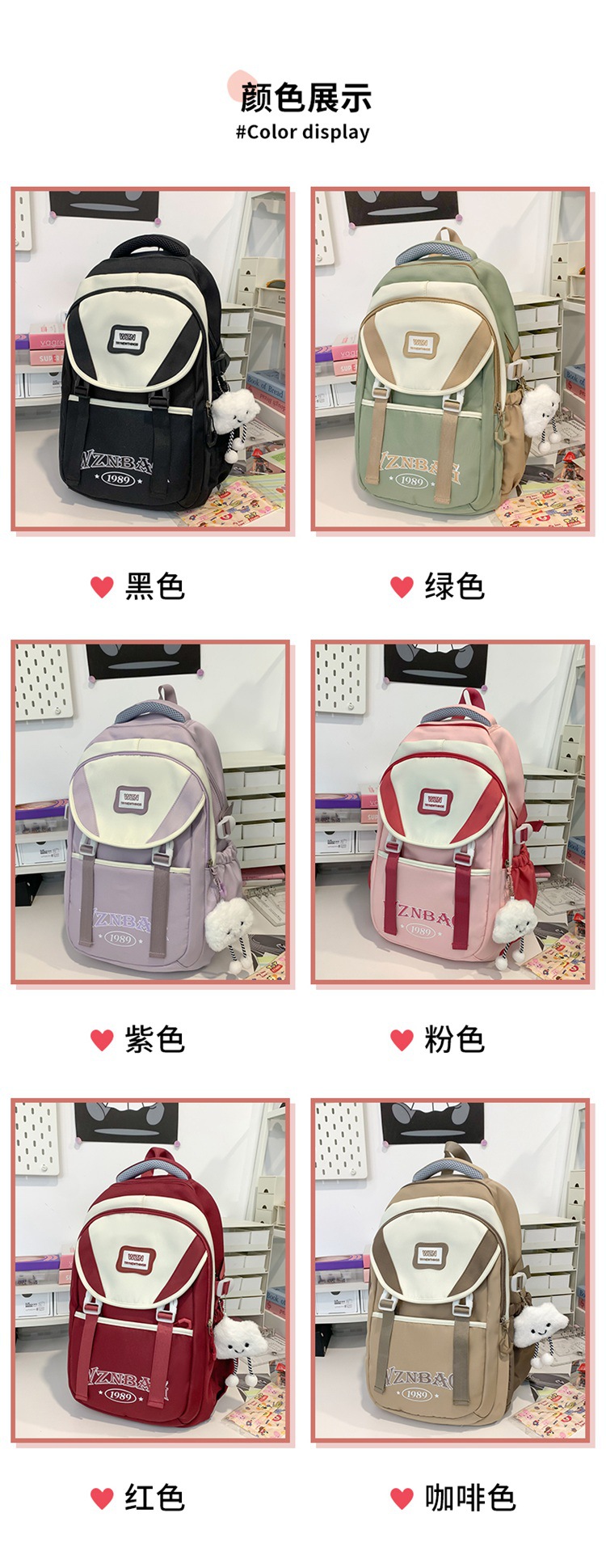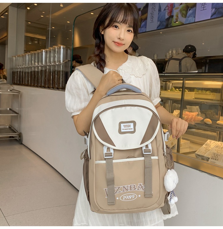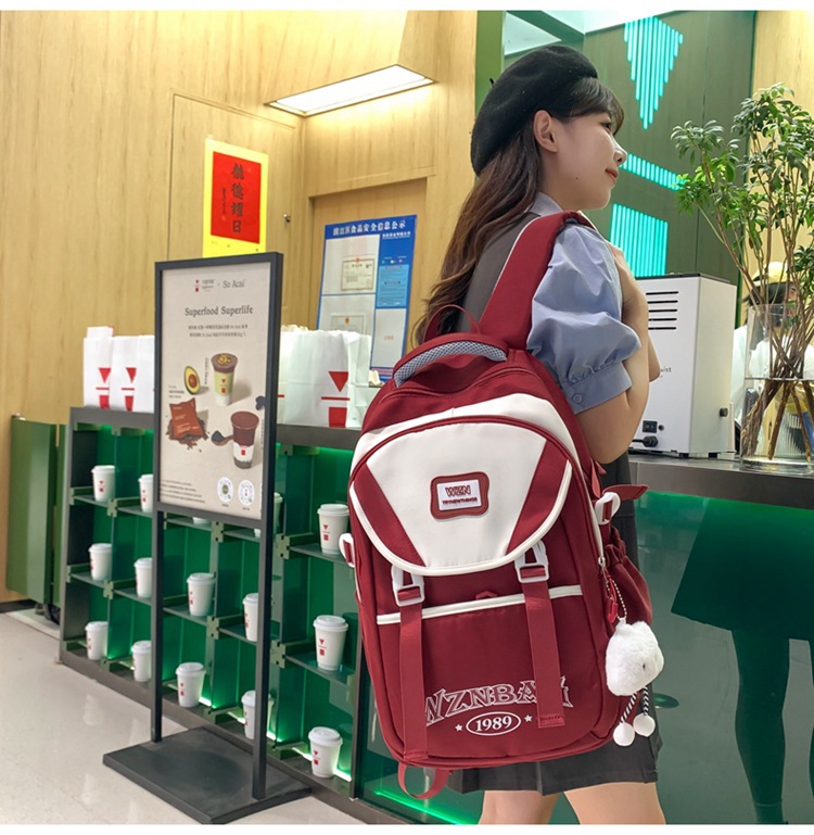 ins学院风书包女撞色双肩包初中女生高中学生背包
