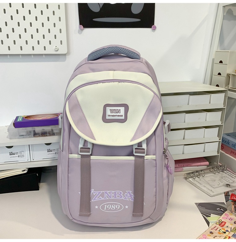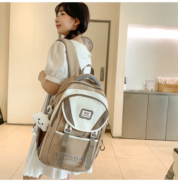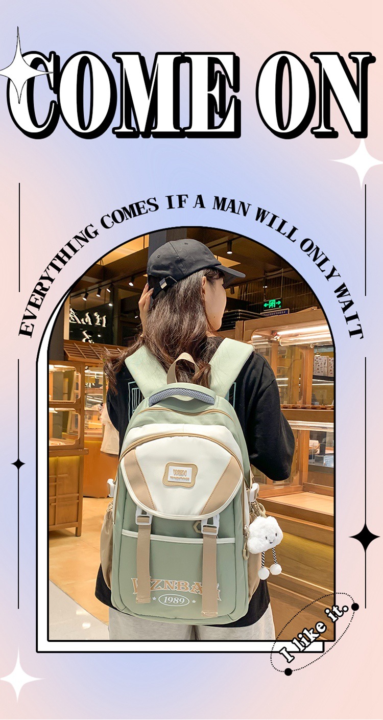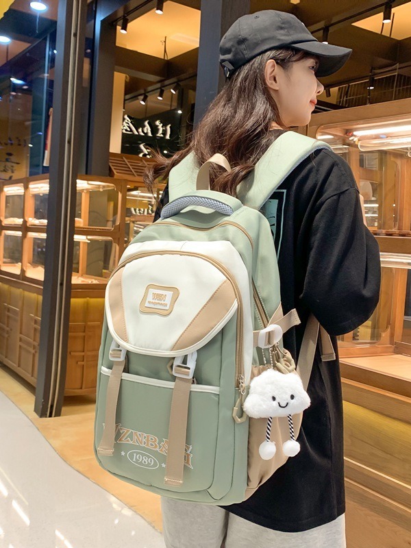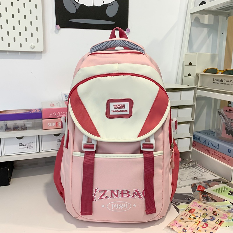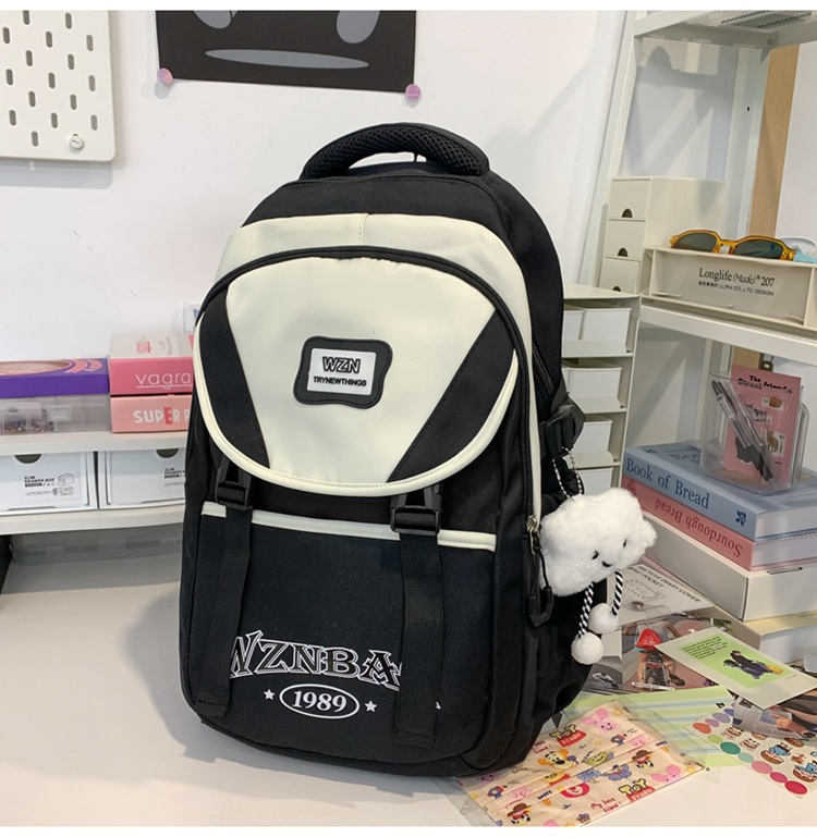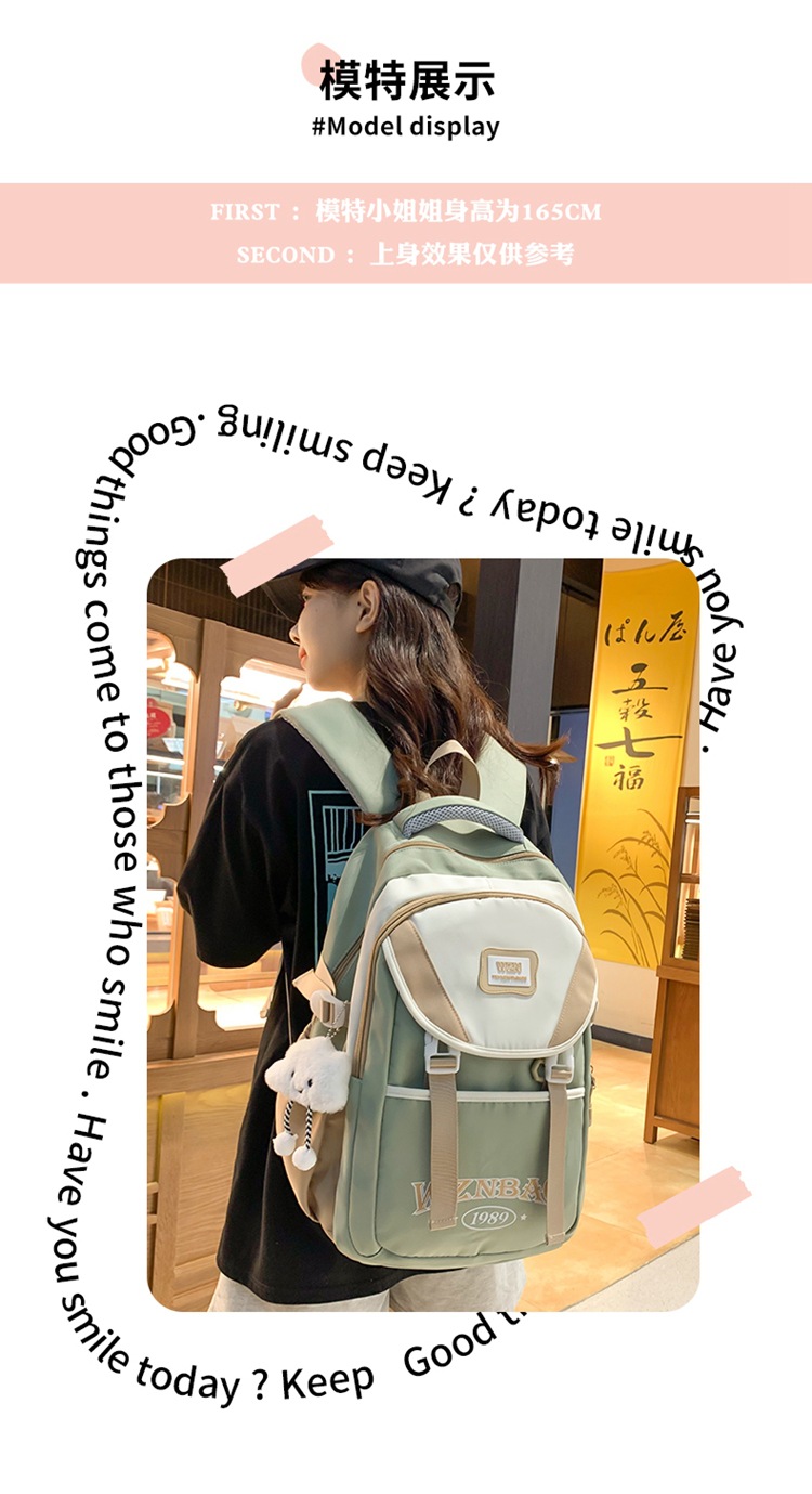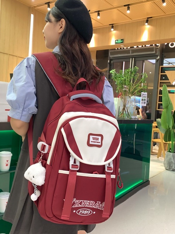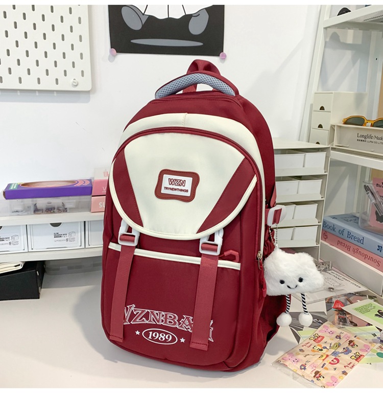 ins学院风书包女撞色双肩包初中女生高中学生背包