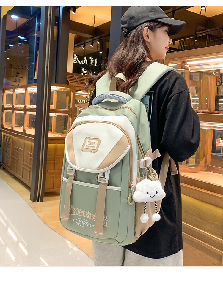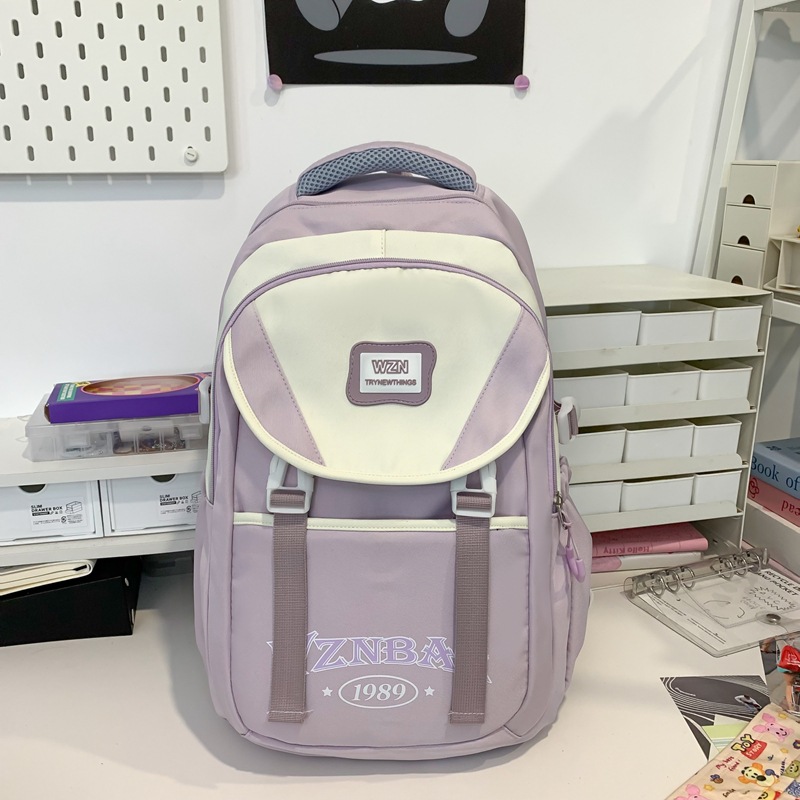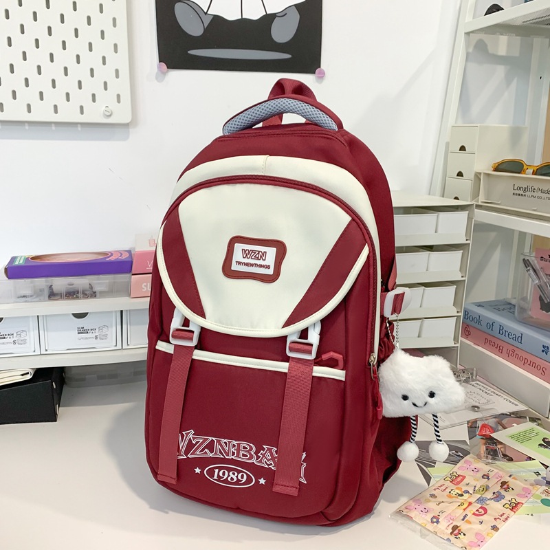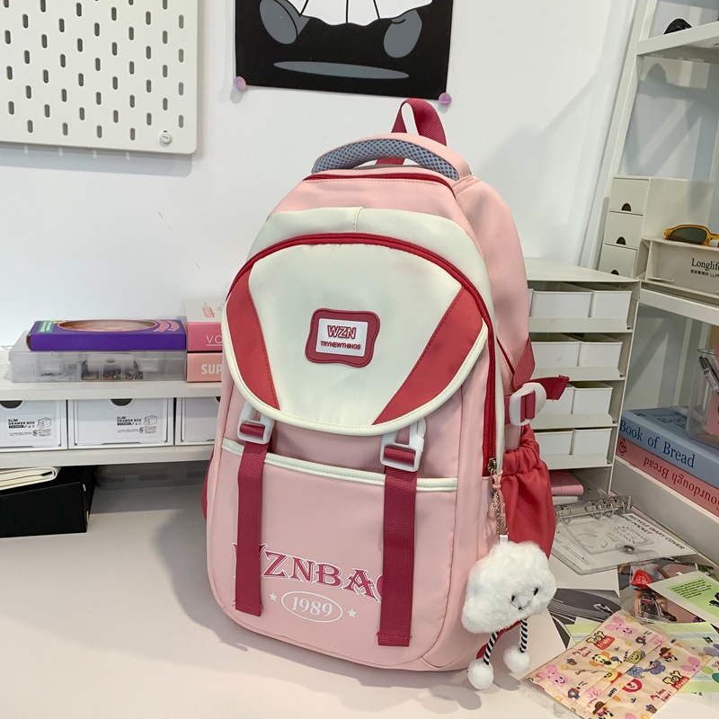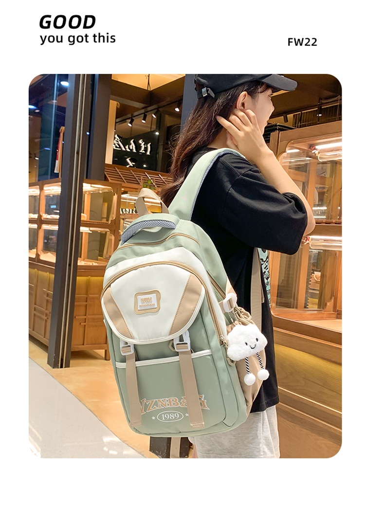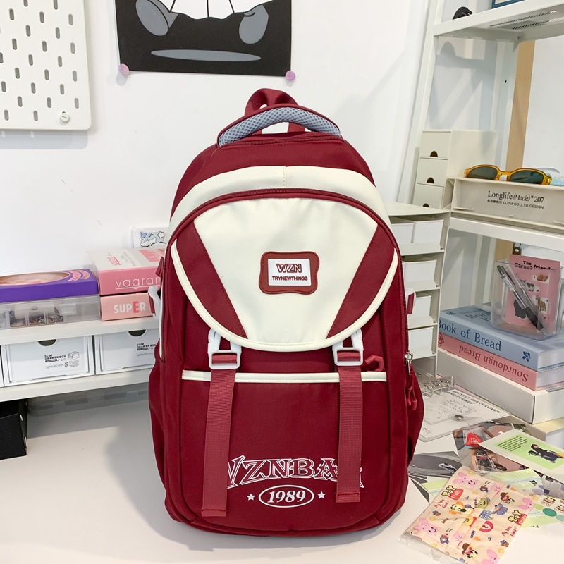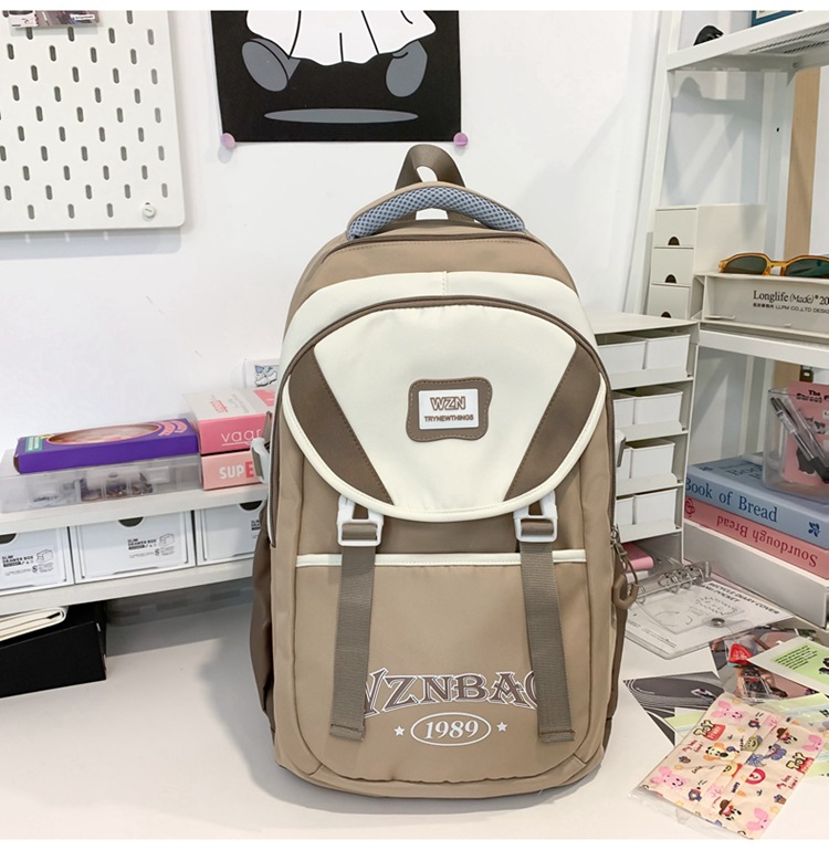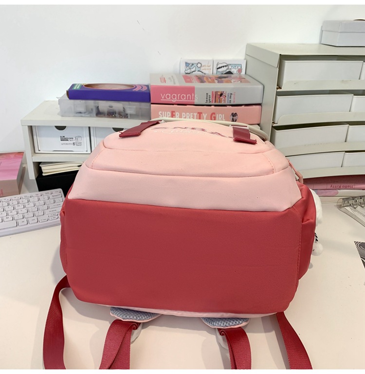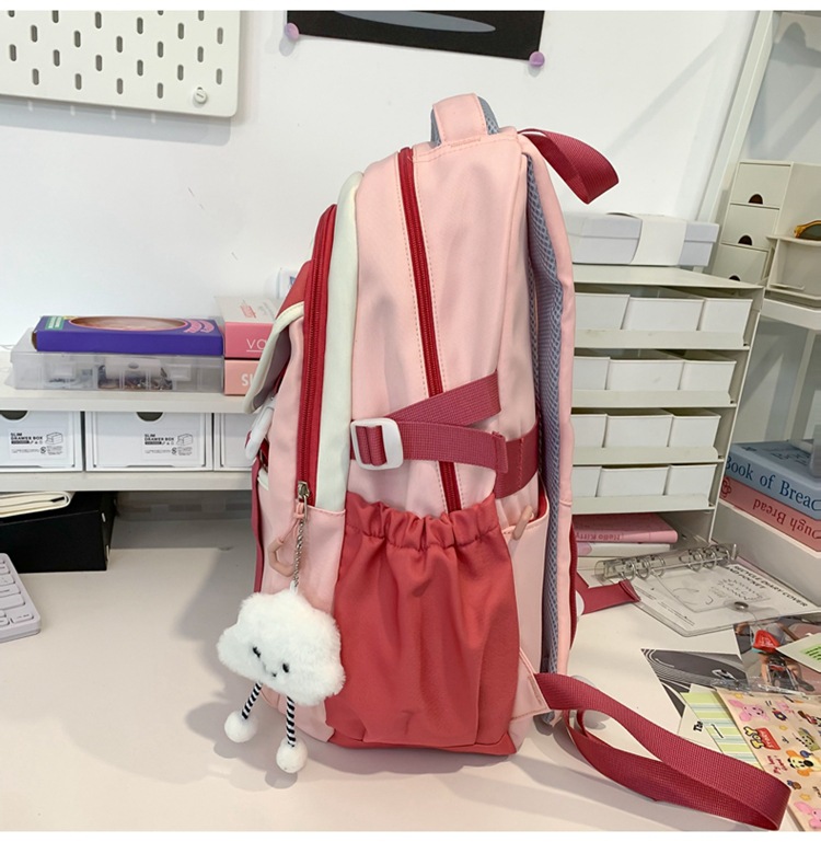ins学院风书包女撞色双肩包初中女生高中学生背包