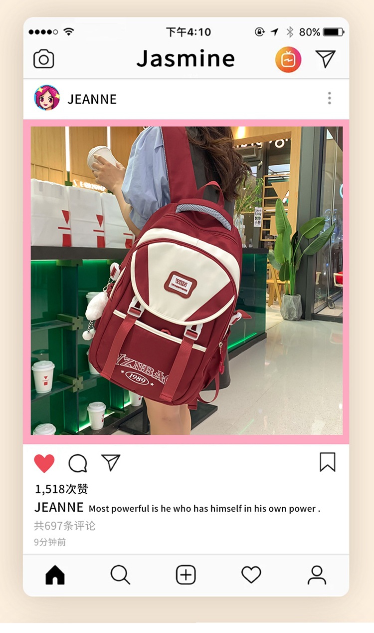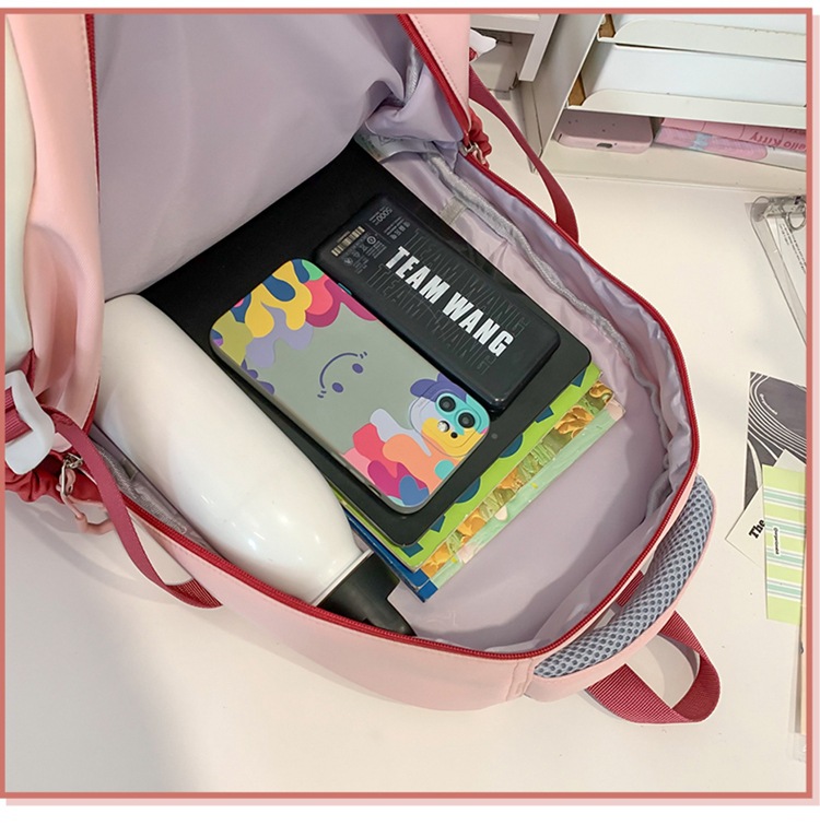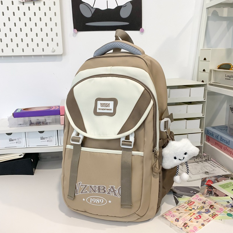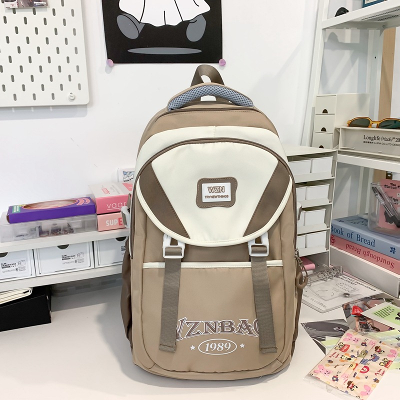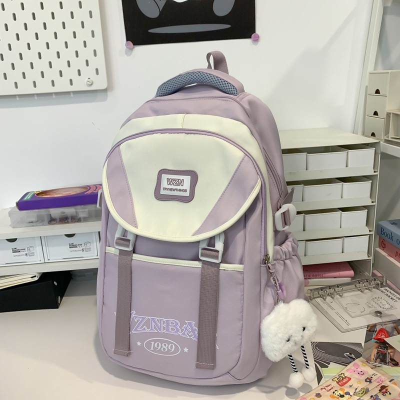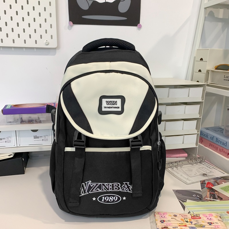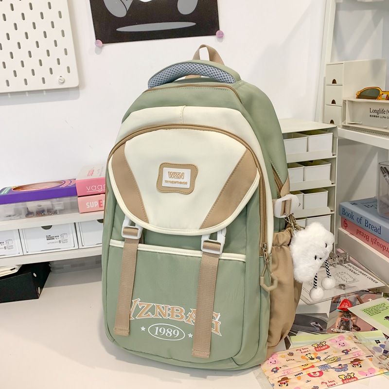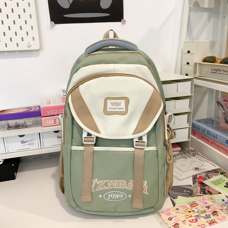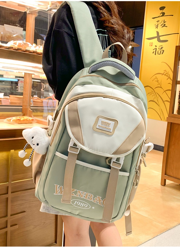 ins学院风书包女撞色双肩包初中女生高中学生背包