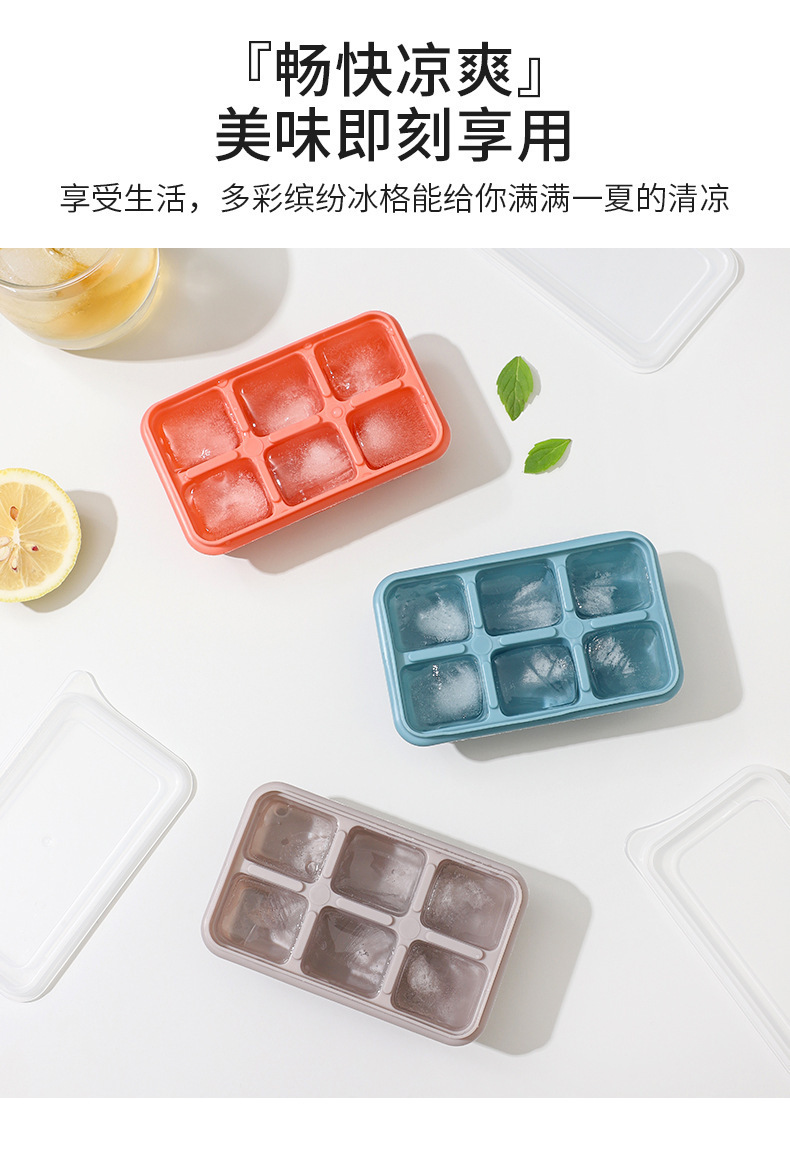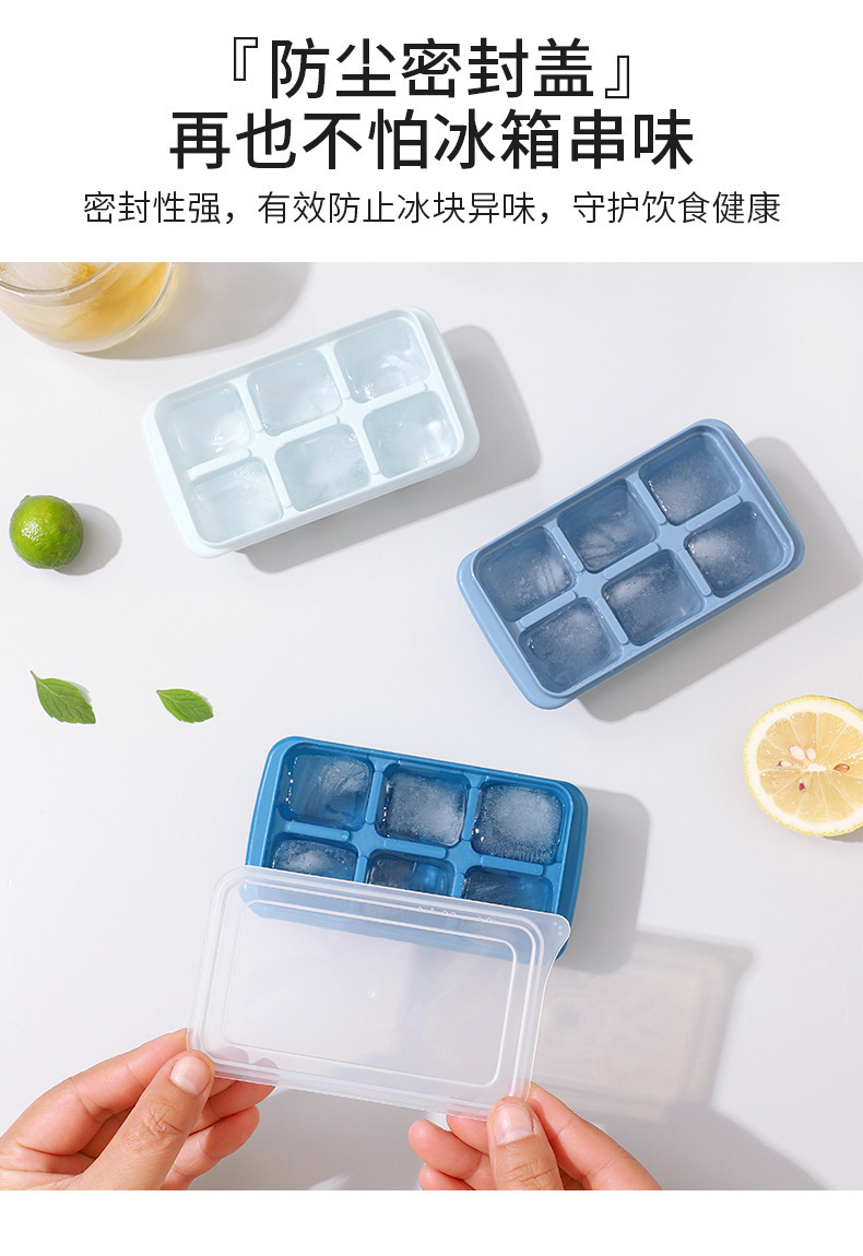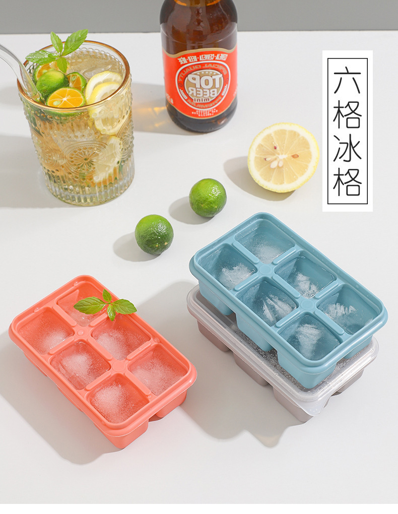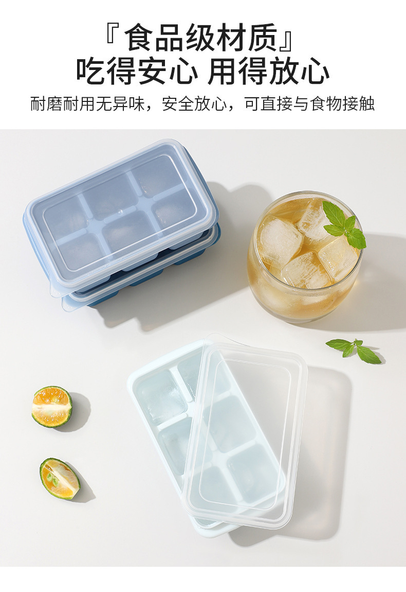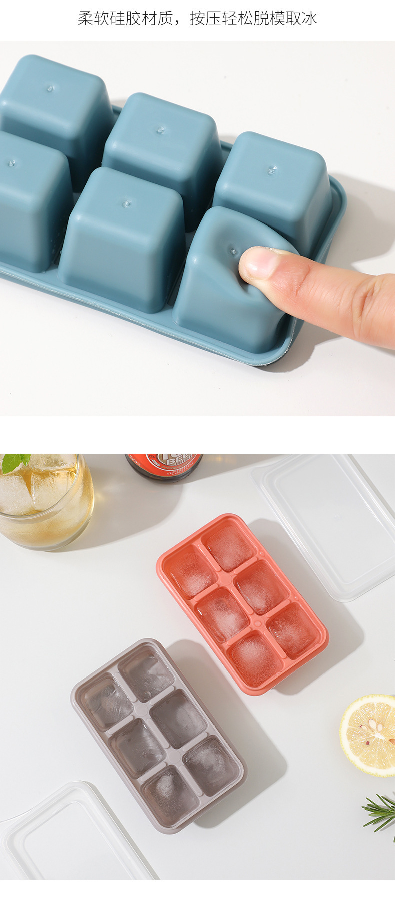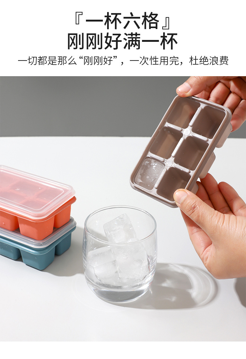 家用硅胶带盖冰格六格迷你软底方形冰格冰箱自制冰块模具冰球神器