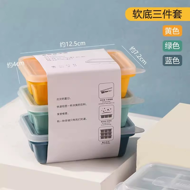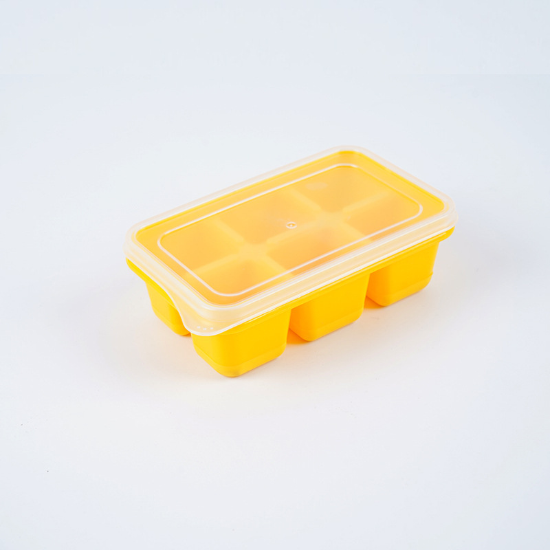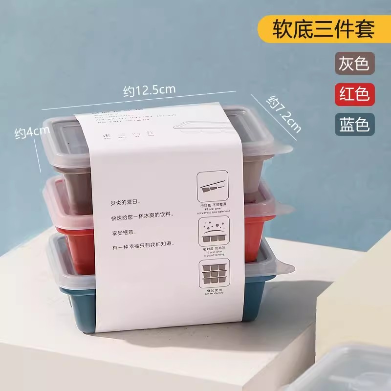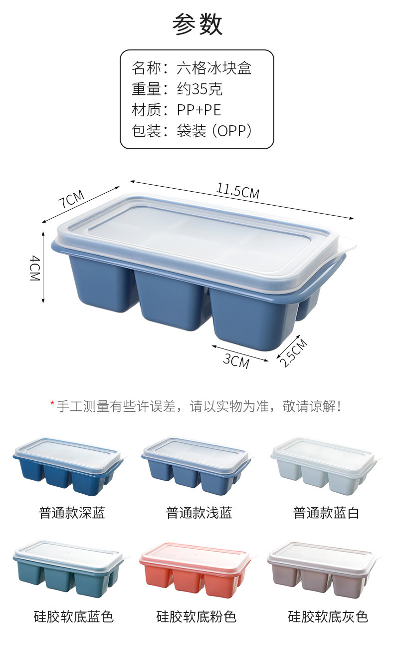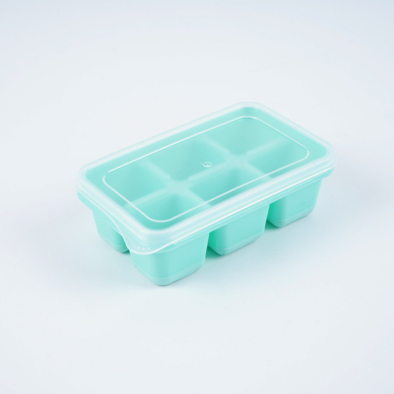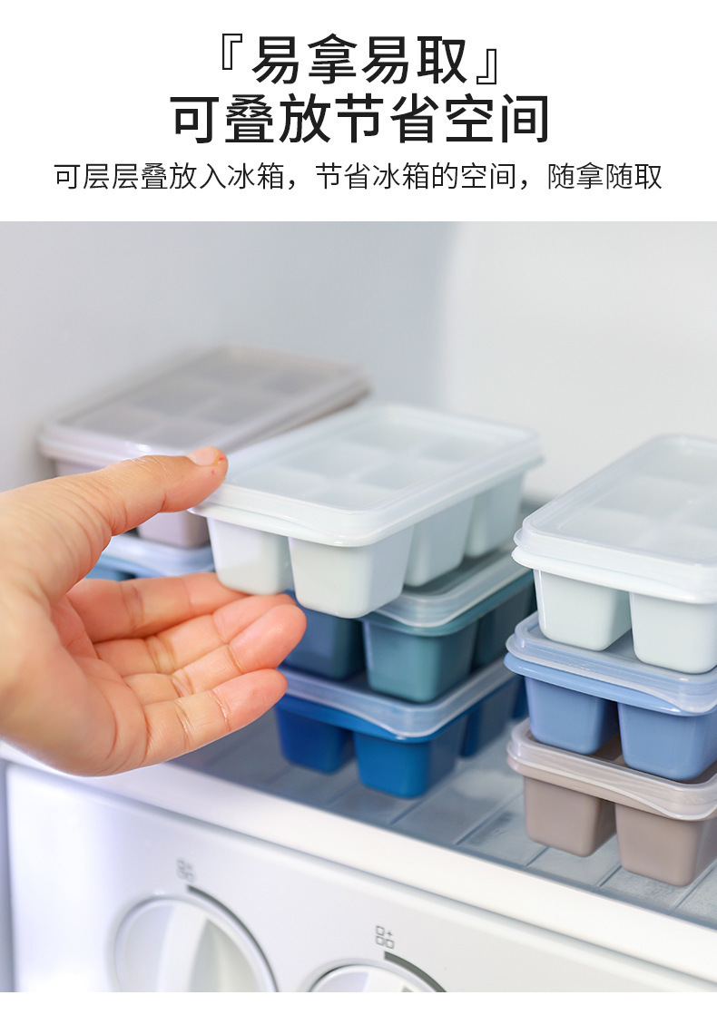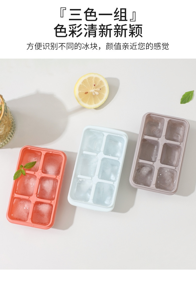 家用硅胶带盖冰格六格迷你软底方形冰格冰箱自制冰块模具冰球神器