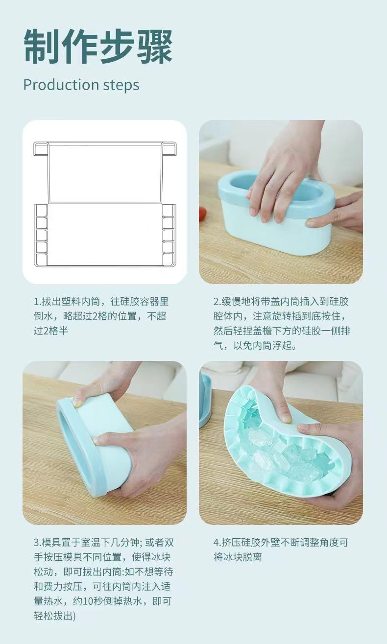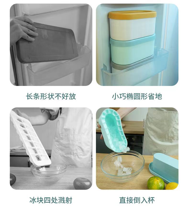 跨境升级加大硅胶冰桶椭圆冰格硅胶冰块模具制冰储冰盒制冰神器