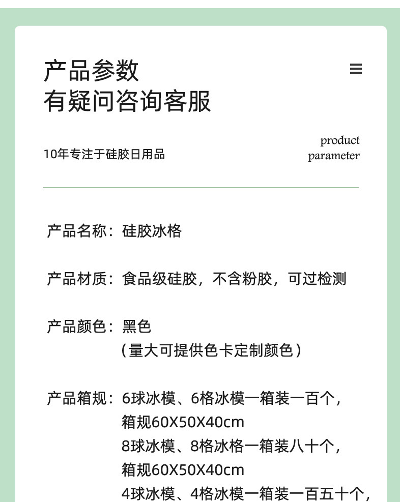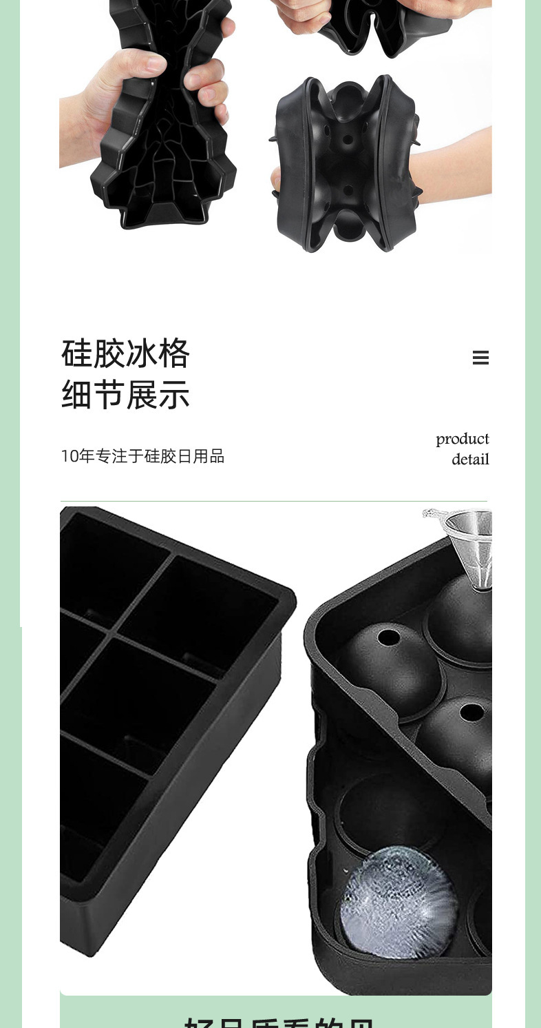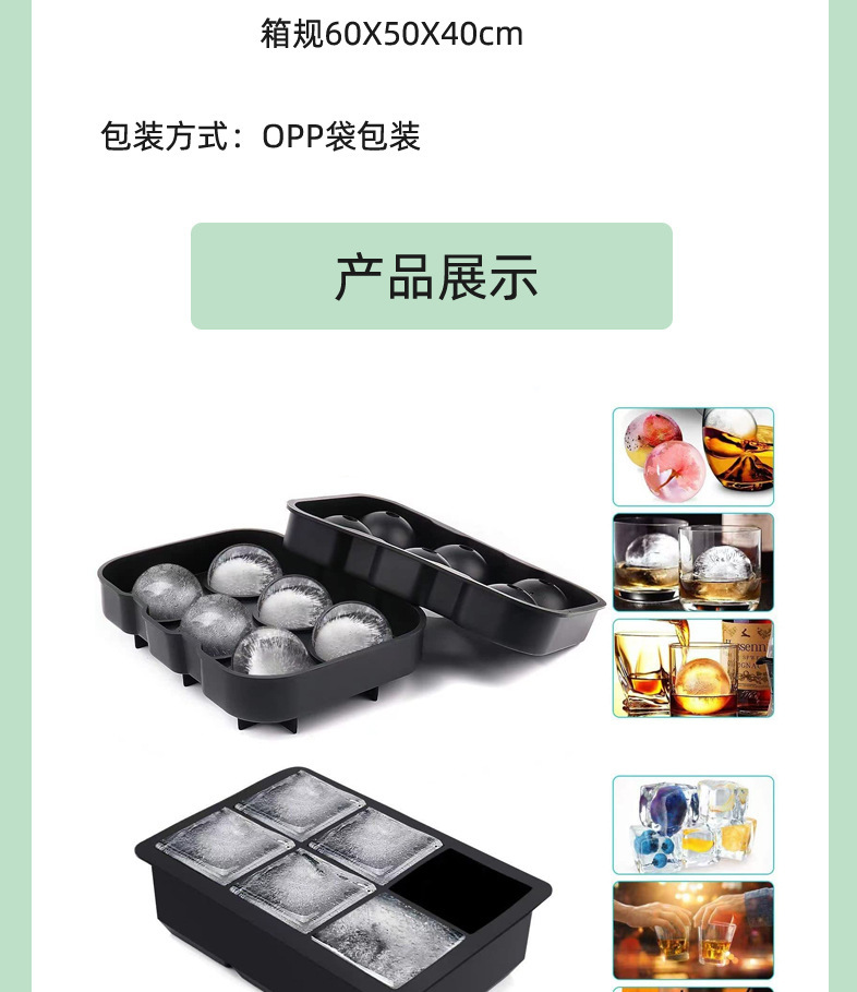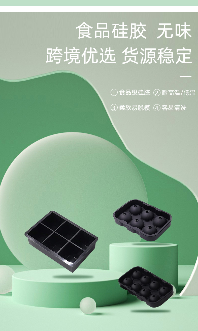 亚马逊热销6连大号硅胶冰格冰块模具易脱模速冻冰球膜具制冰模具