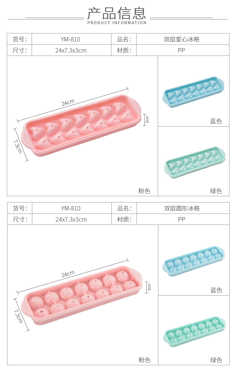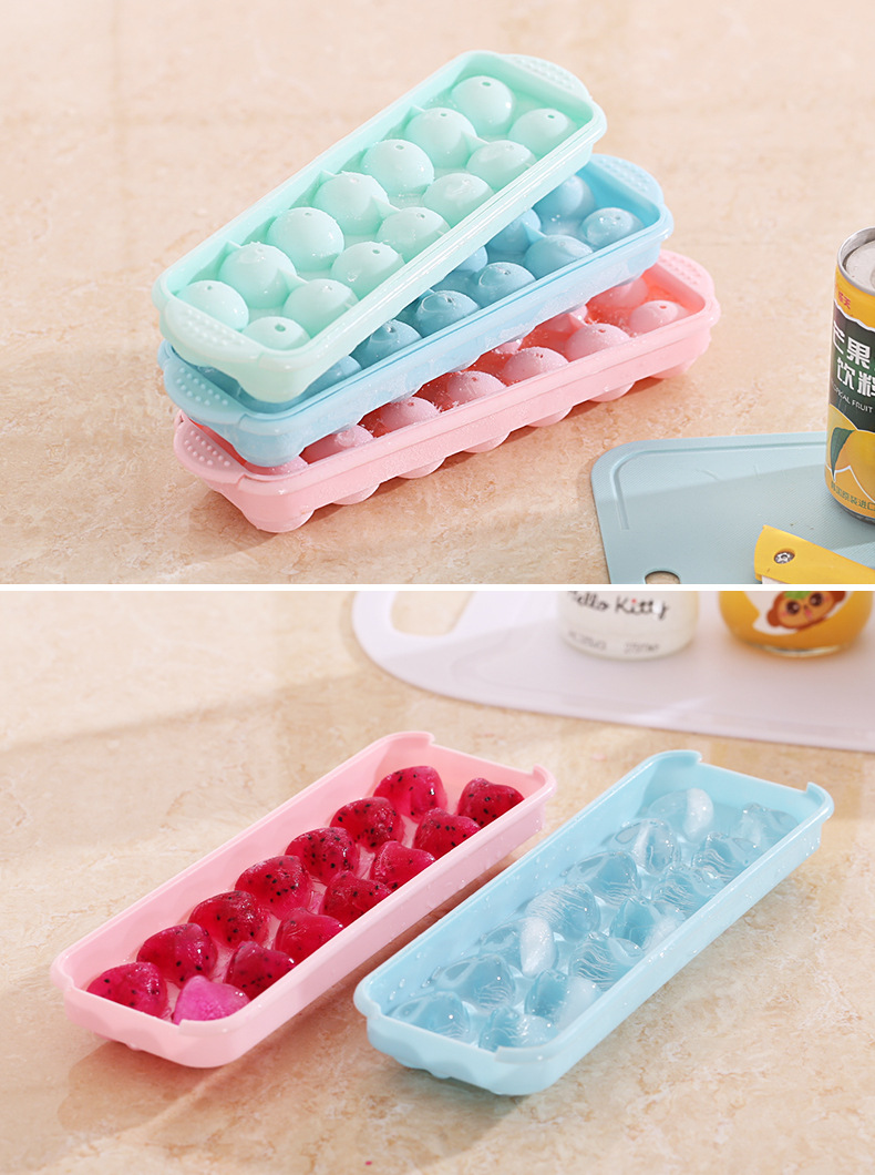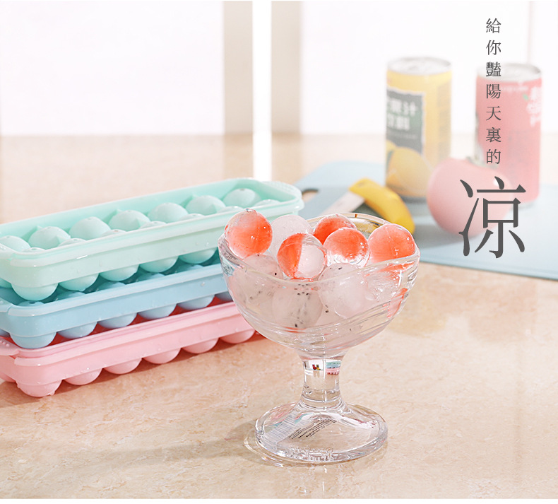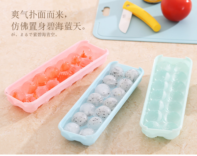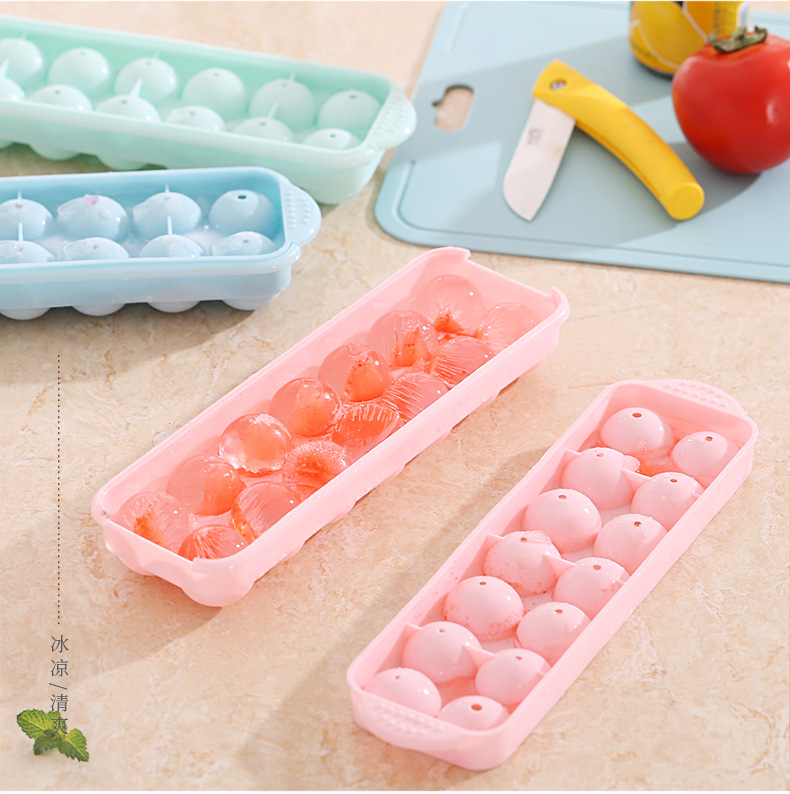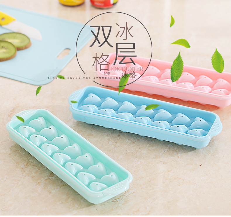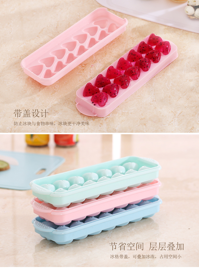 14格小冰球带盖双层塑料冰格圆形爱心冰模制冰盒创意制冰盒制冰器