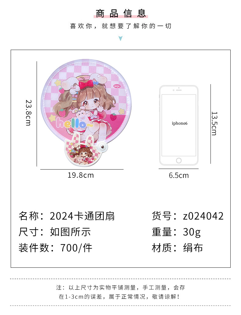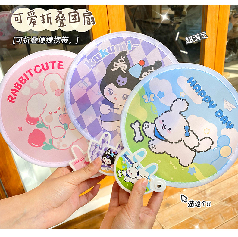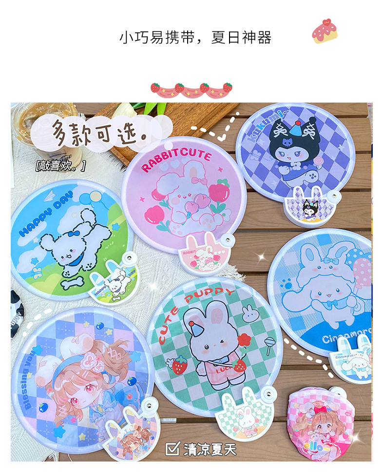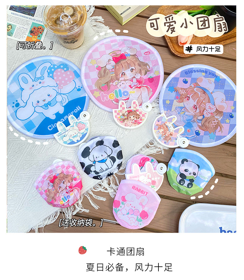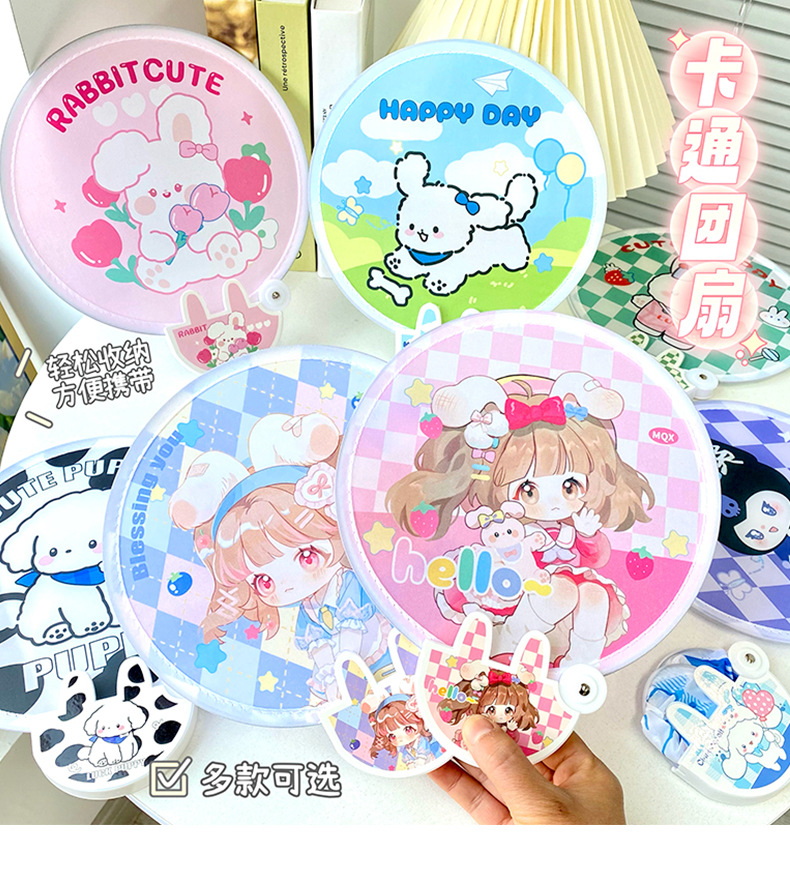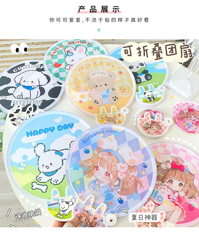 夏季可折叠团扇学生儿童diy便携圆形绢布卡通可爱扇子伴手礼批发