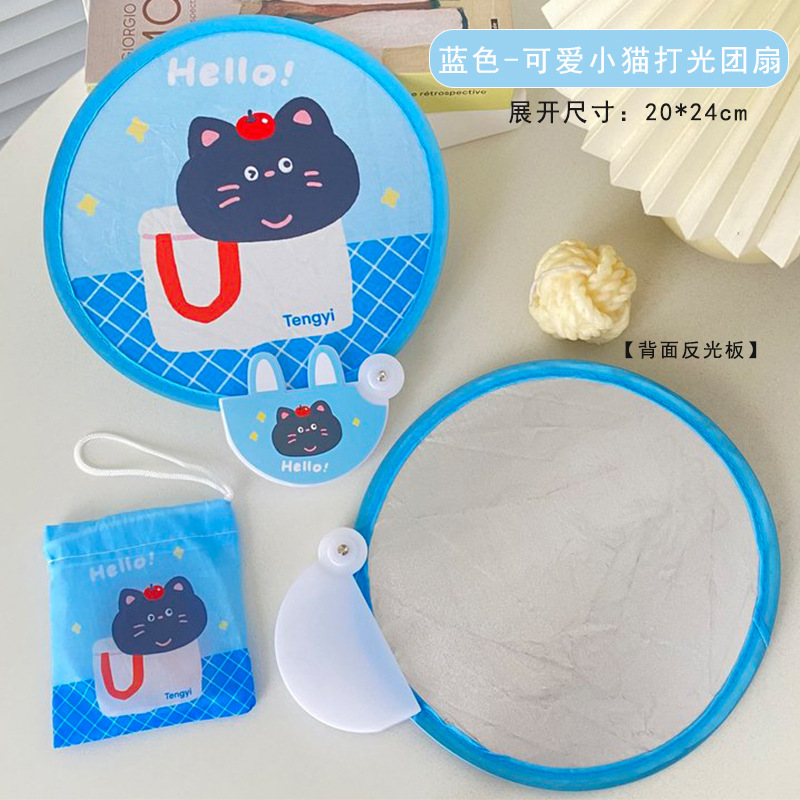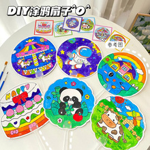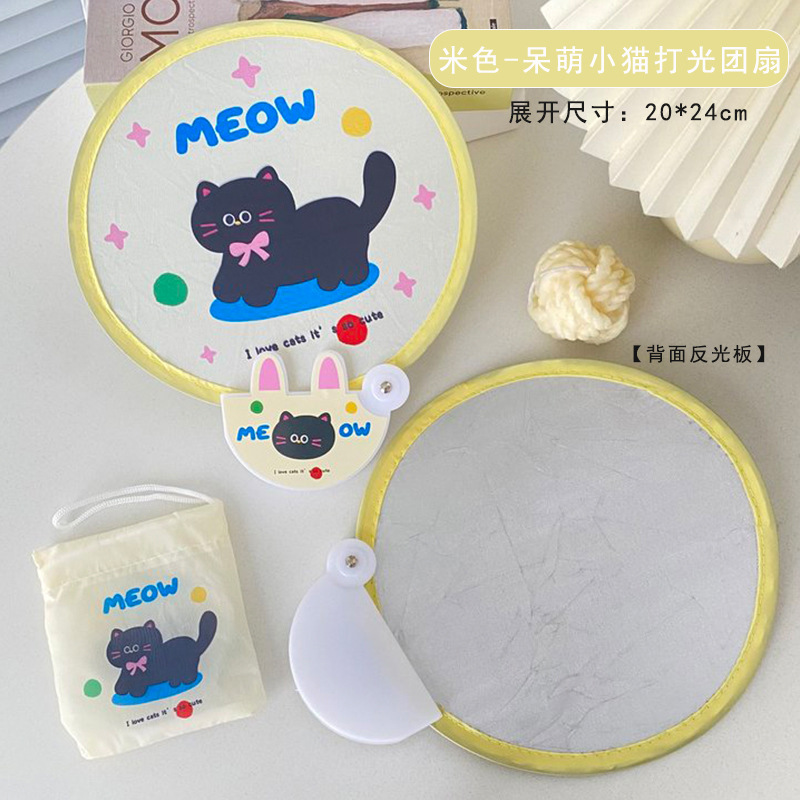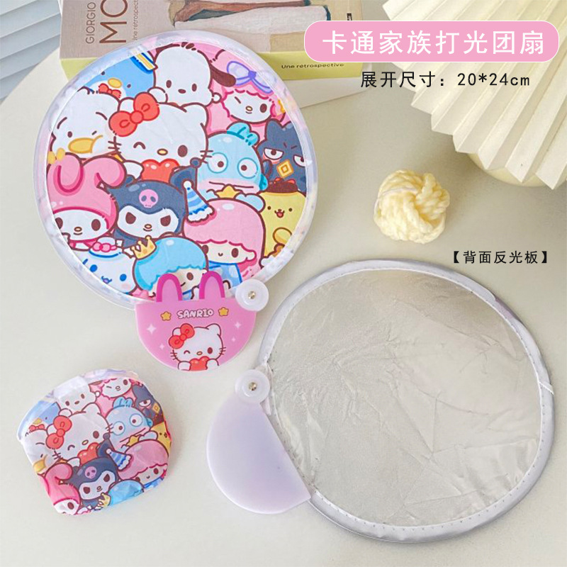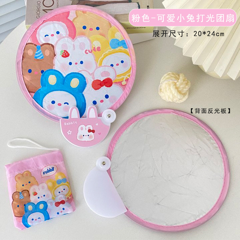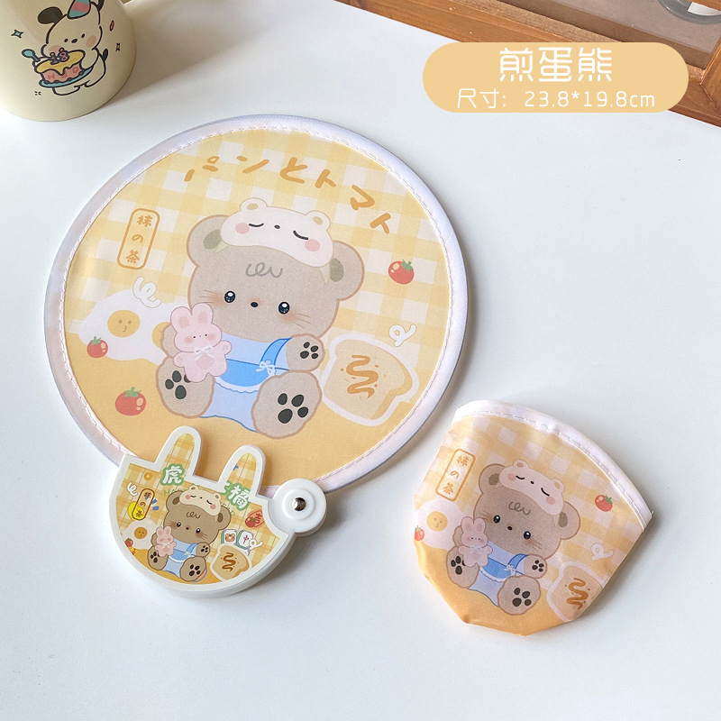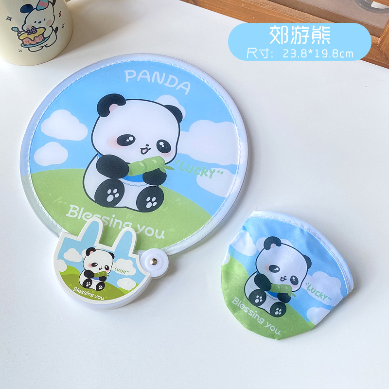 夏季可折叠团扇学生儿童diy便携圆形绢布卡通可爱扇子伴手礼批发