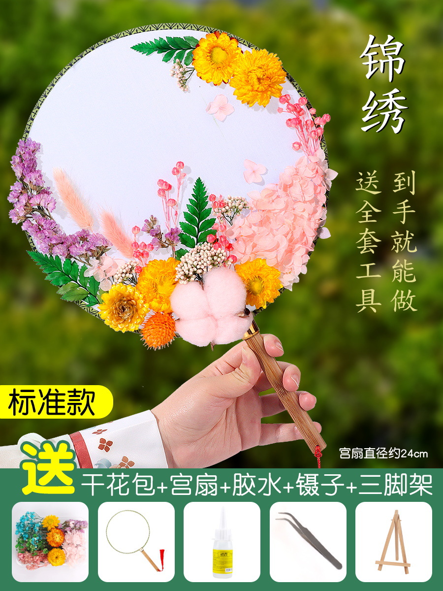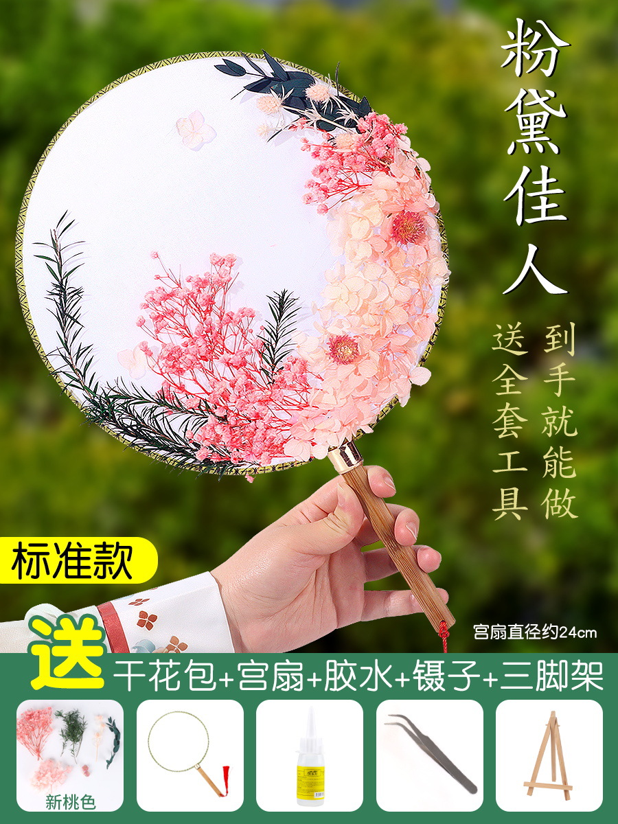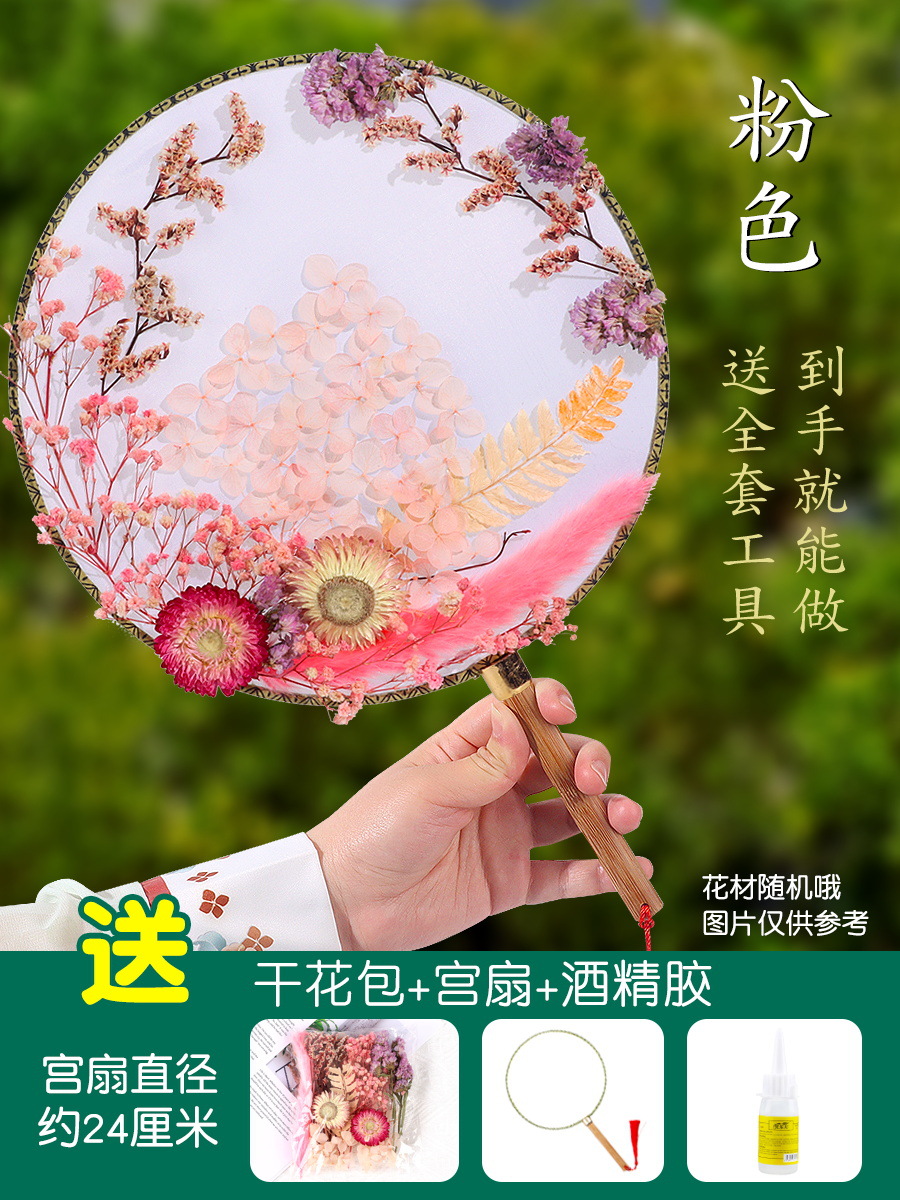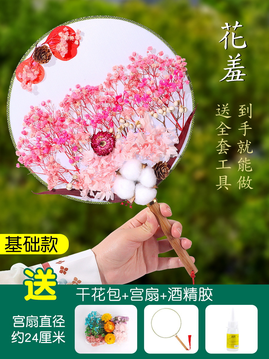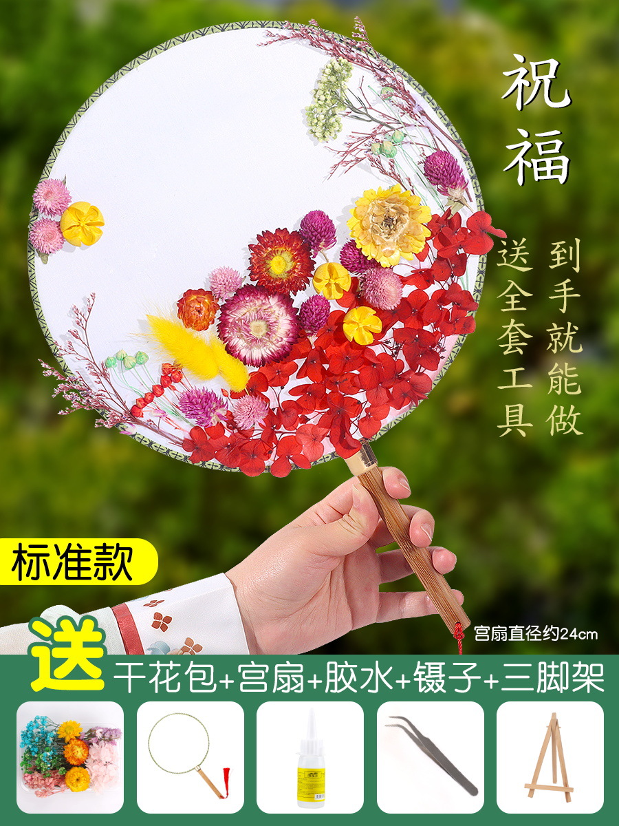 教师节永生花团扇干花diy材料包扇子儿童团建手工制作送老师 礼物