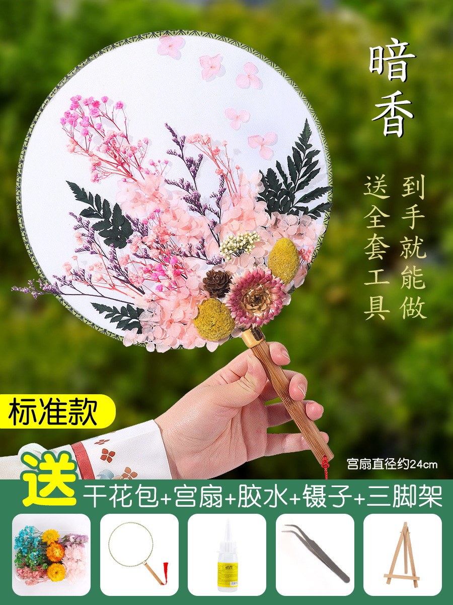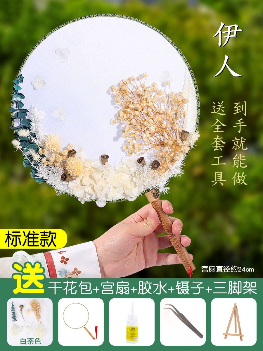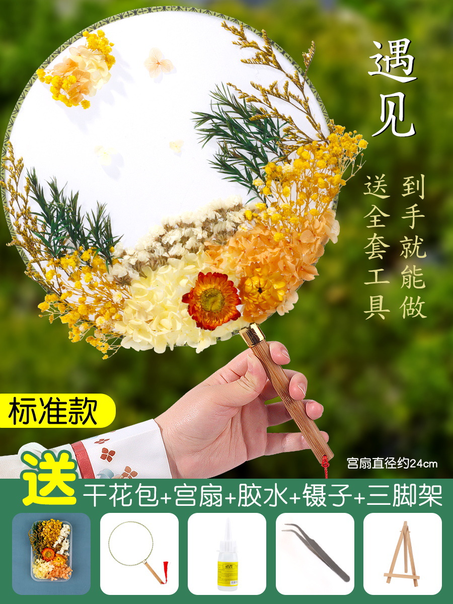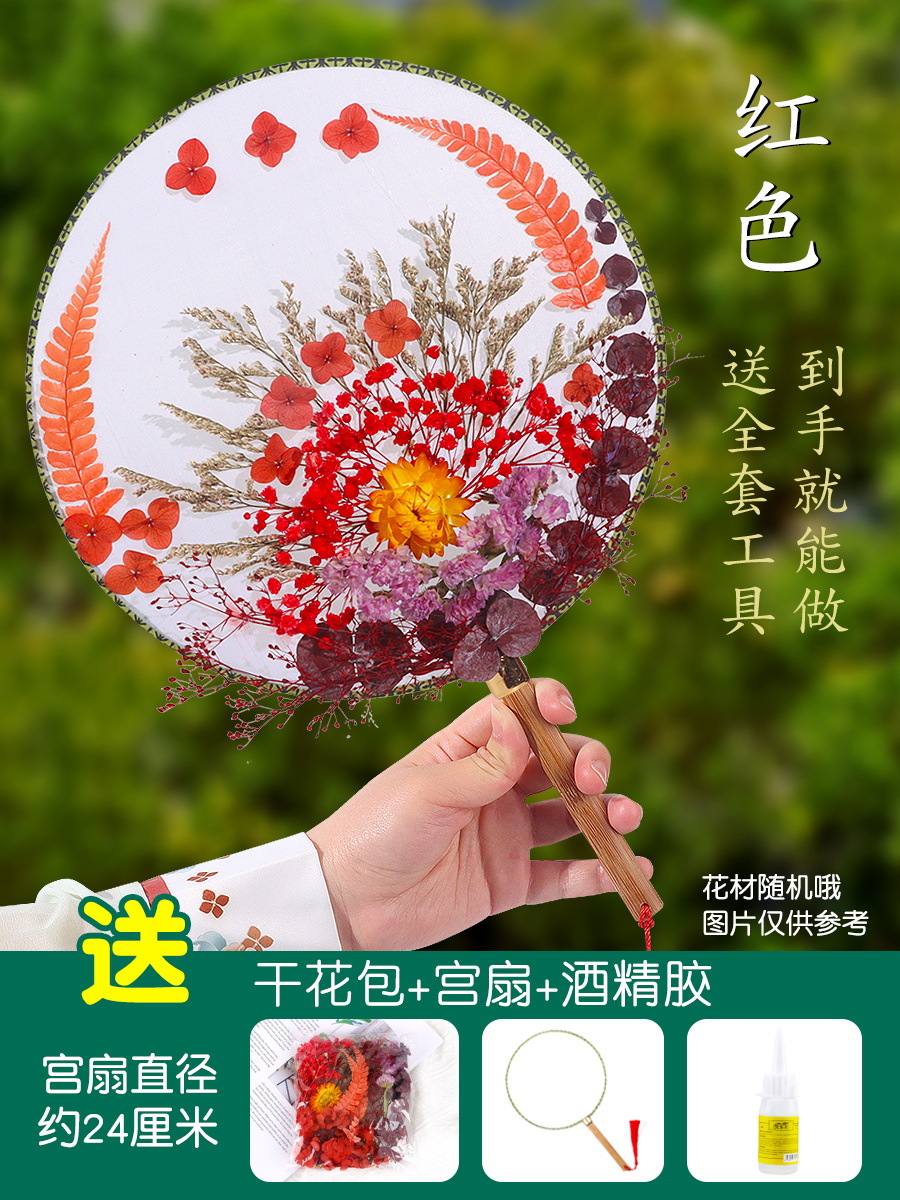 教师节永生花团扇干花diy材料包扇子儿童团建手工制作送老师 礼物