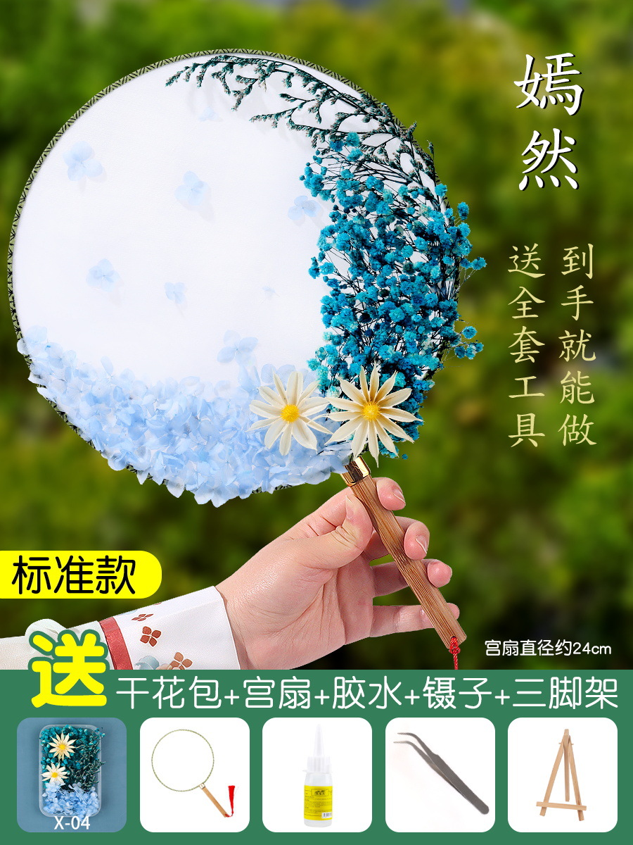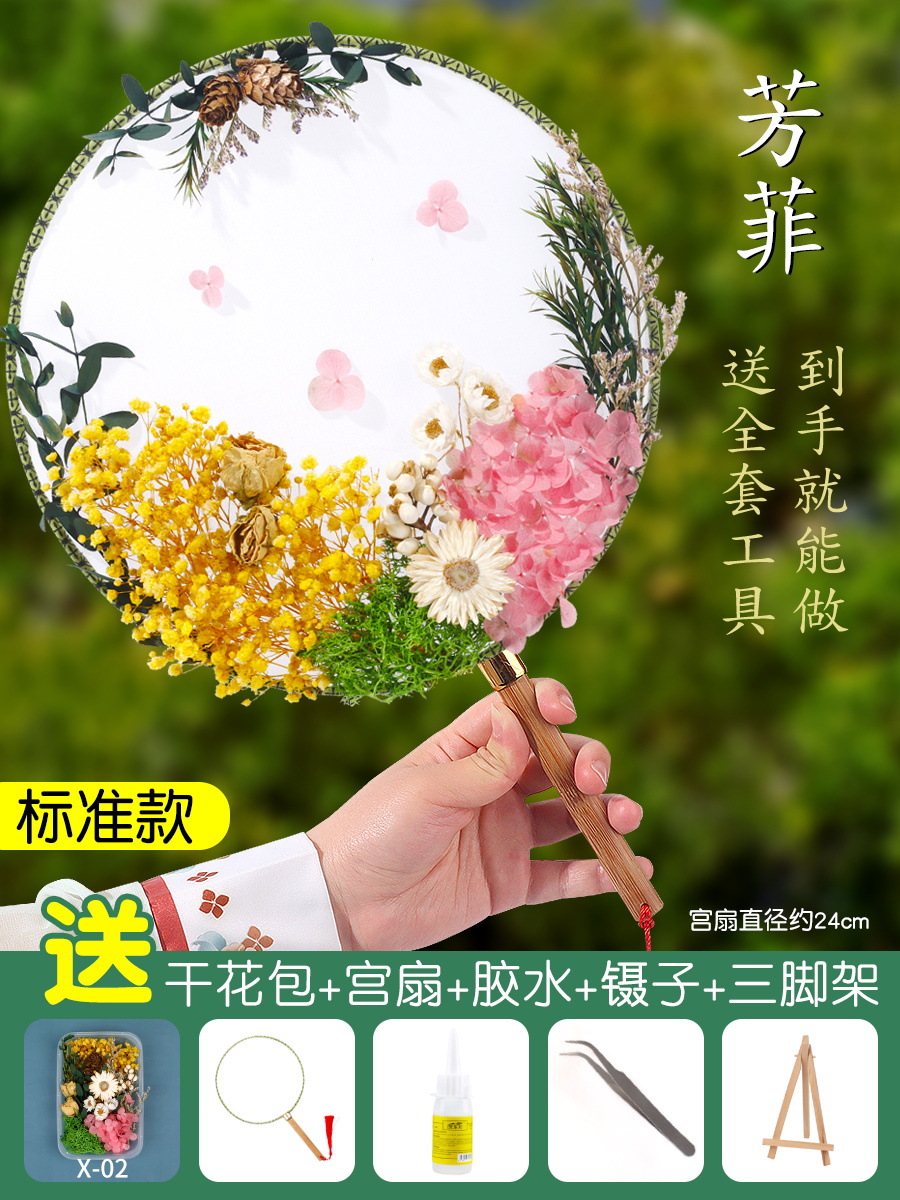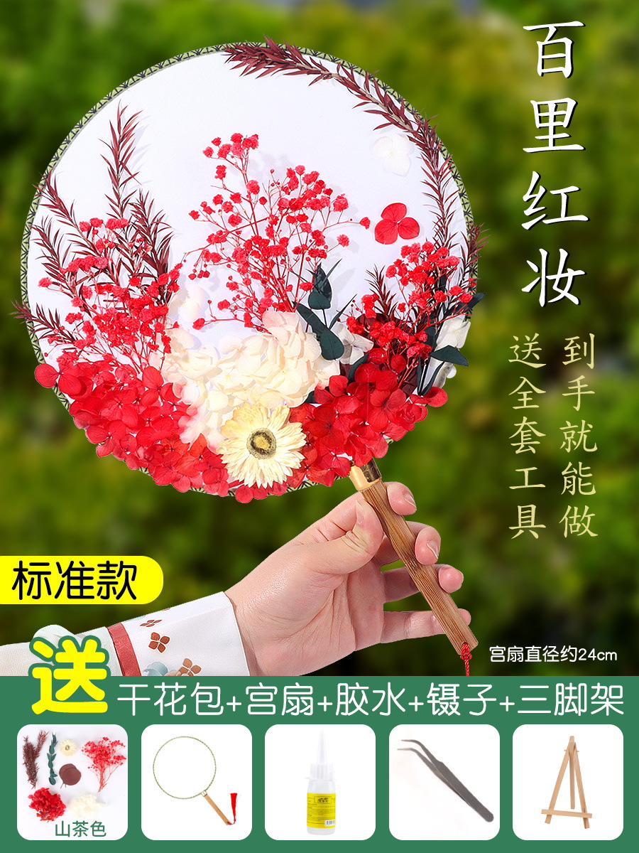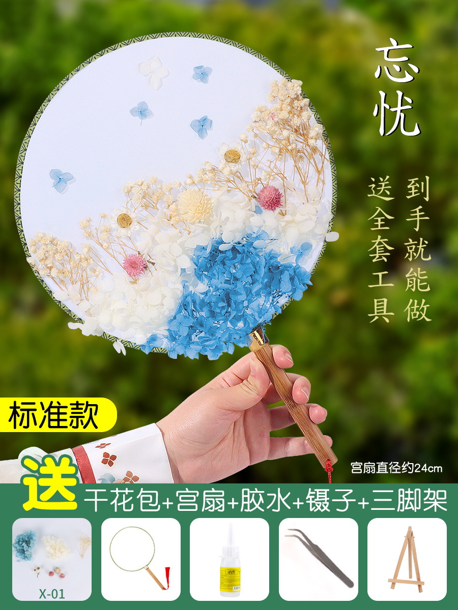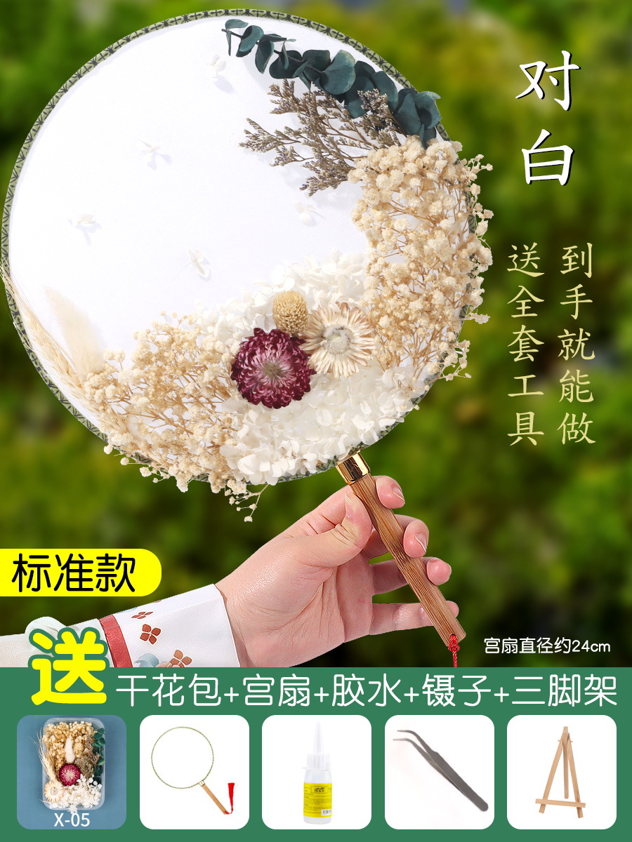 教师节永生花团扇干花diy材料包扇子儿童团建手工制作送老师 礼物
