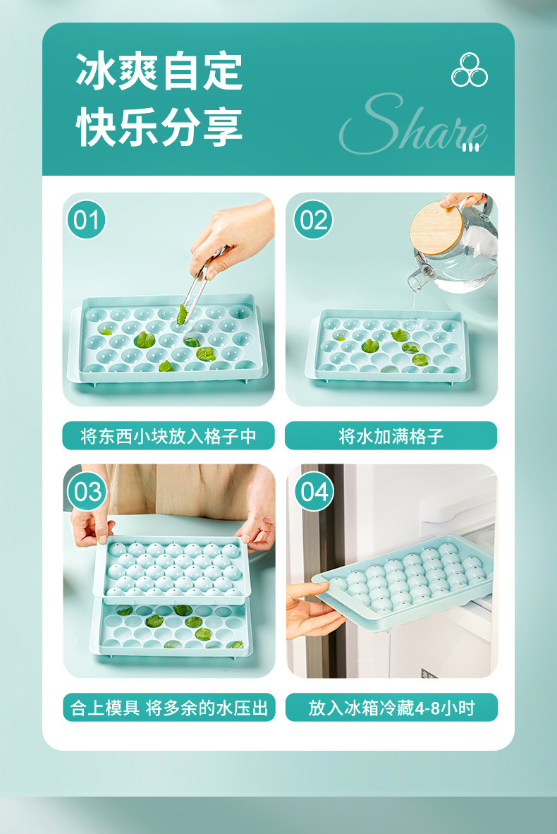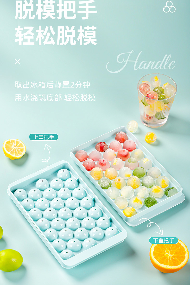 带盖冰格圆形冰球创意自制冰格冰块模具33格冰块制冰盒雪糕模膜具