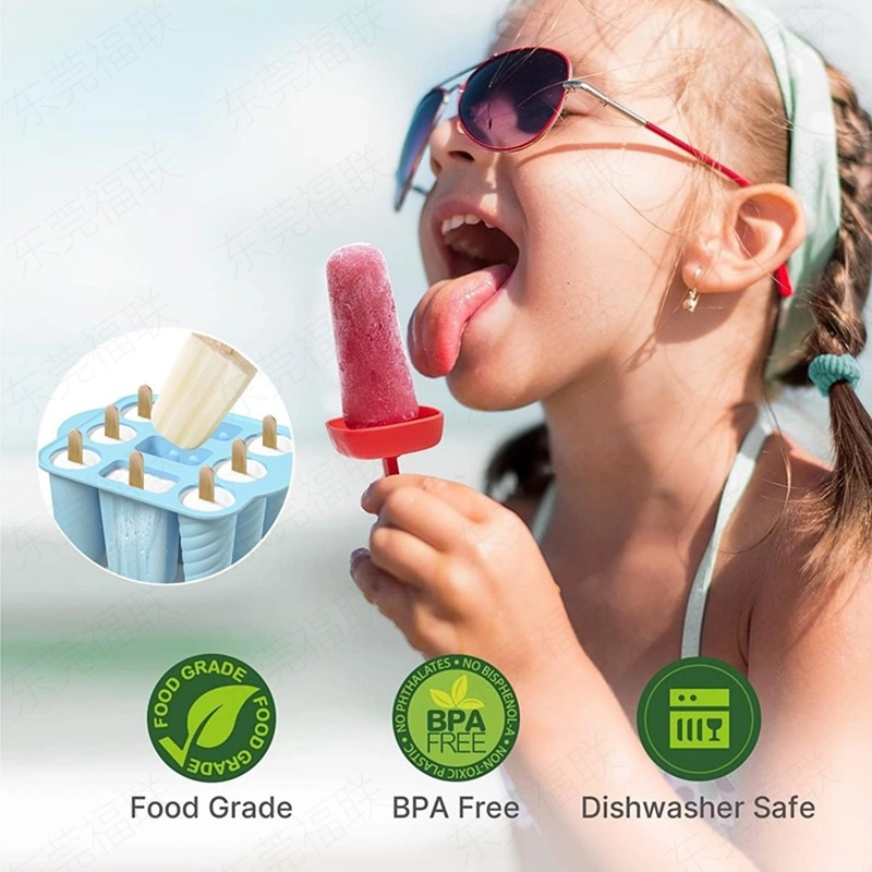 亚马逊新款9连雪糕模具创意硅胶冰格自制冰块膜具雪糕棒冰磨具