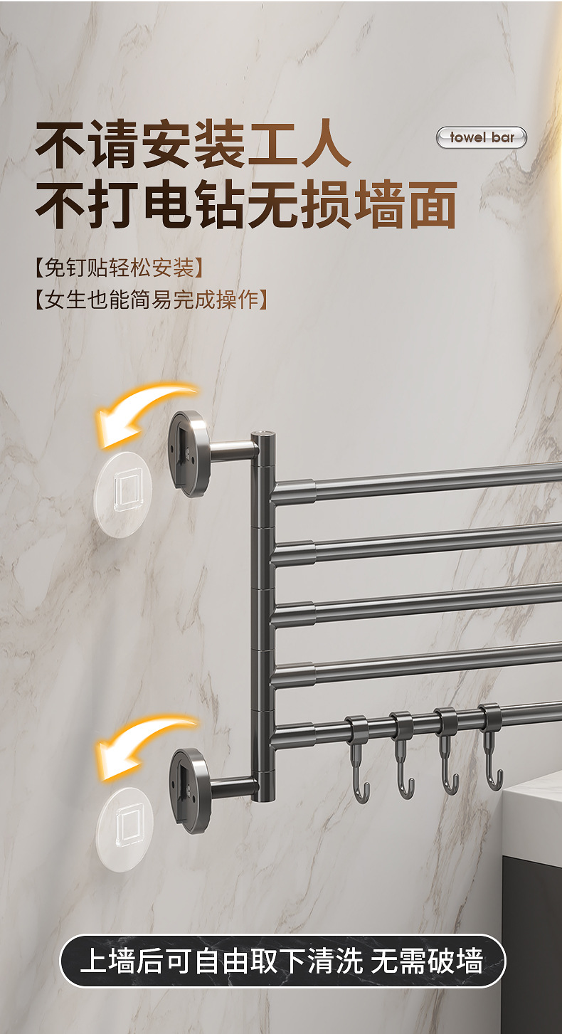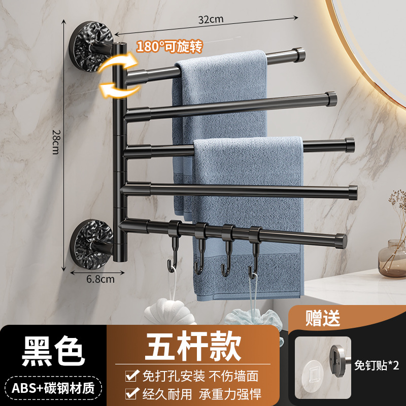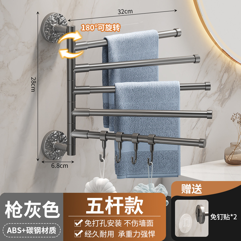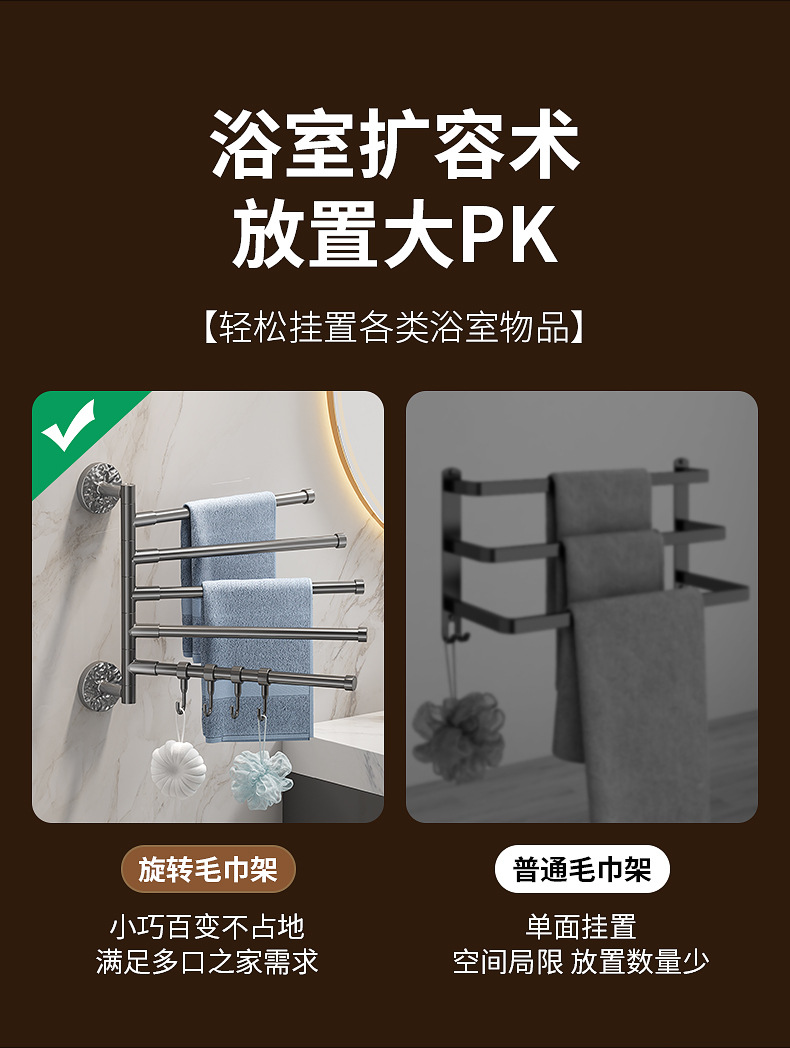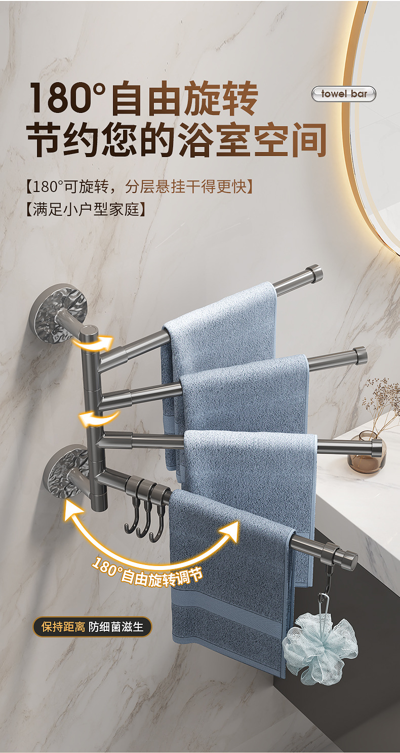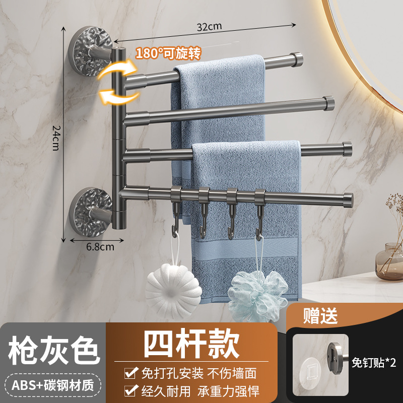 旋转毛巾架卫生间免打孔多杆浴巾收纳挂架壁挂式浴室转角毛巾挂杆