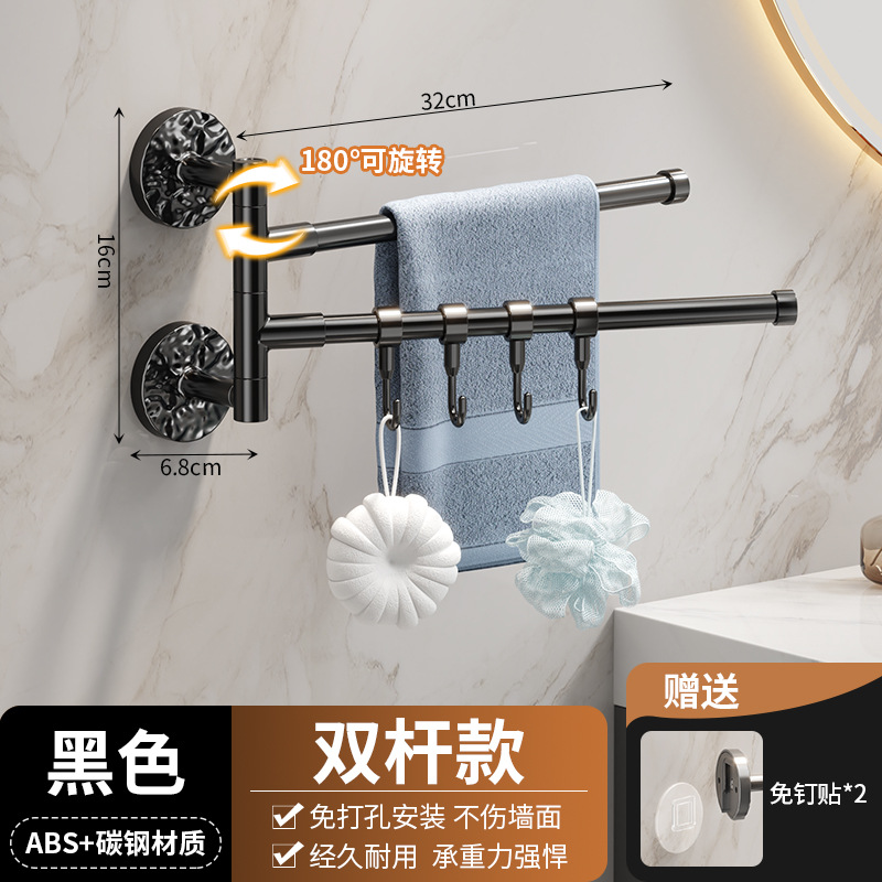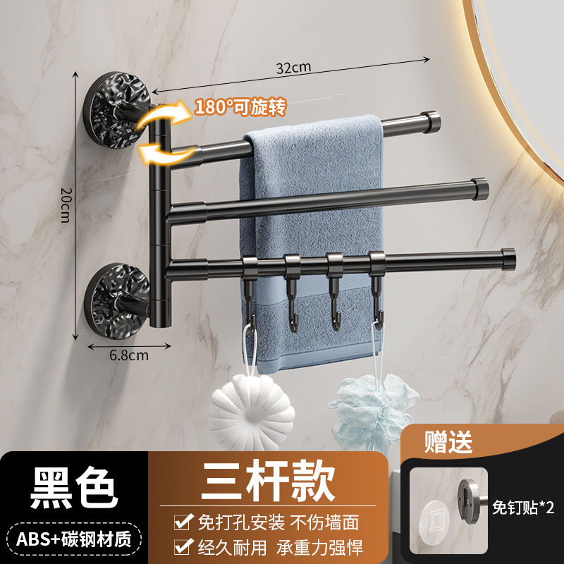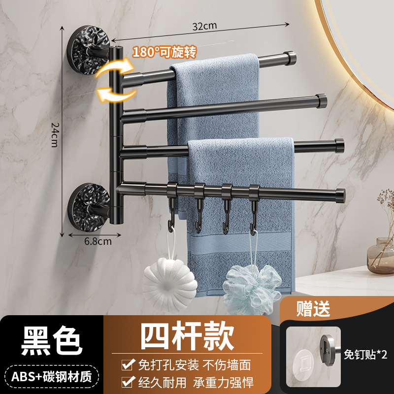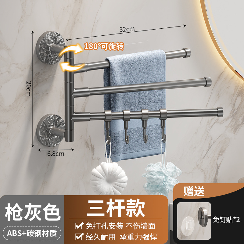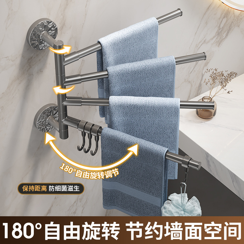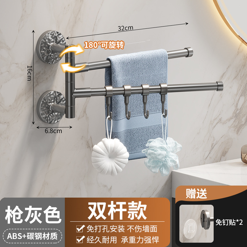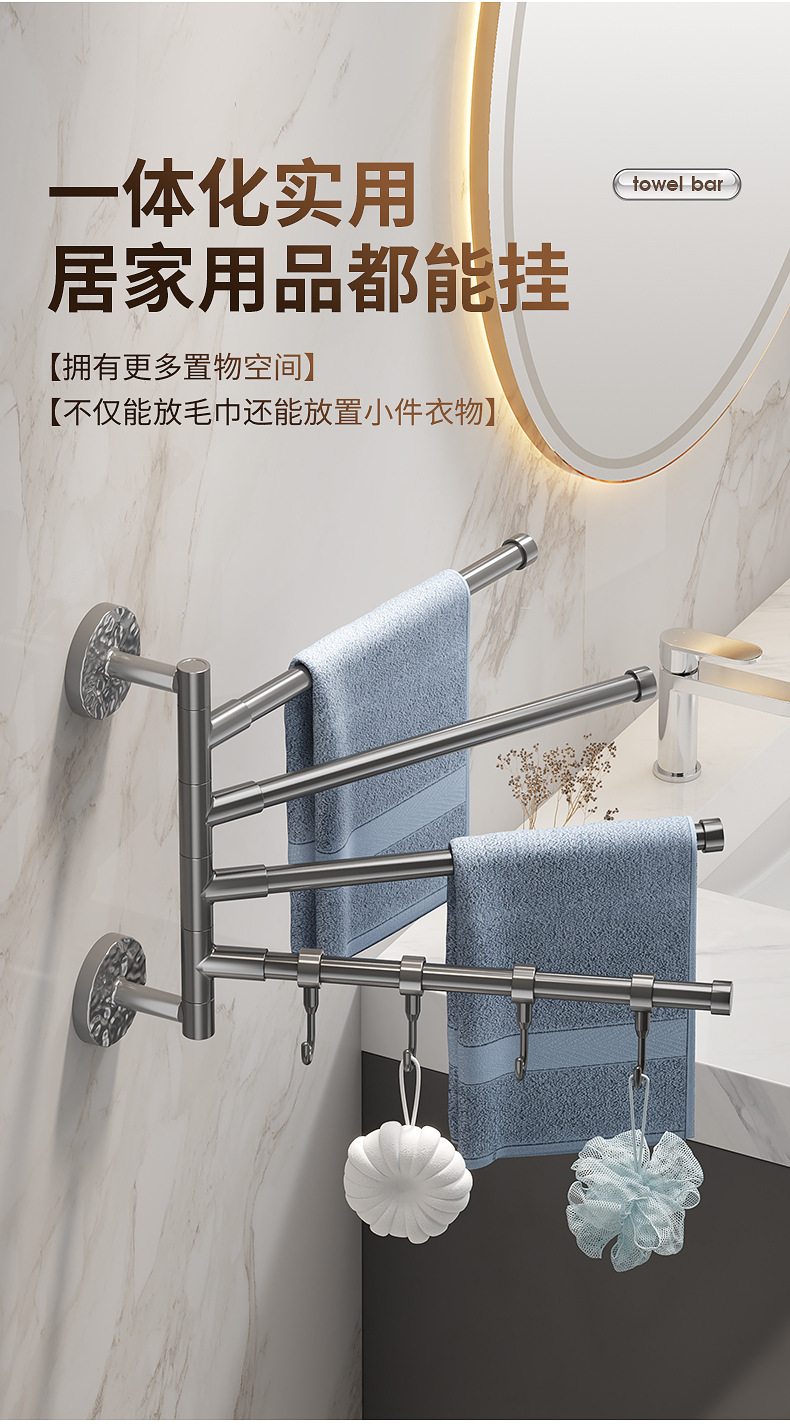 旋转毛巾架卫生间免打孔多杆浴巾收纳挂架壁挂式浴室转角毛巾挂杆