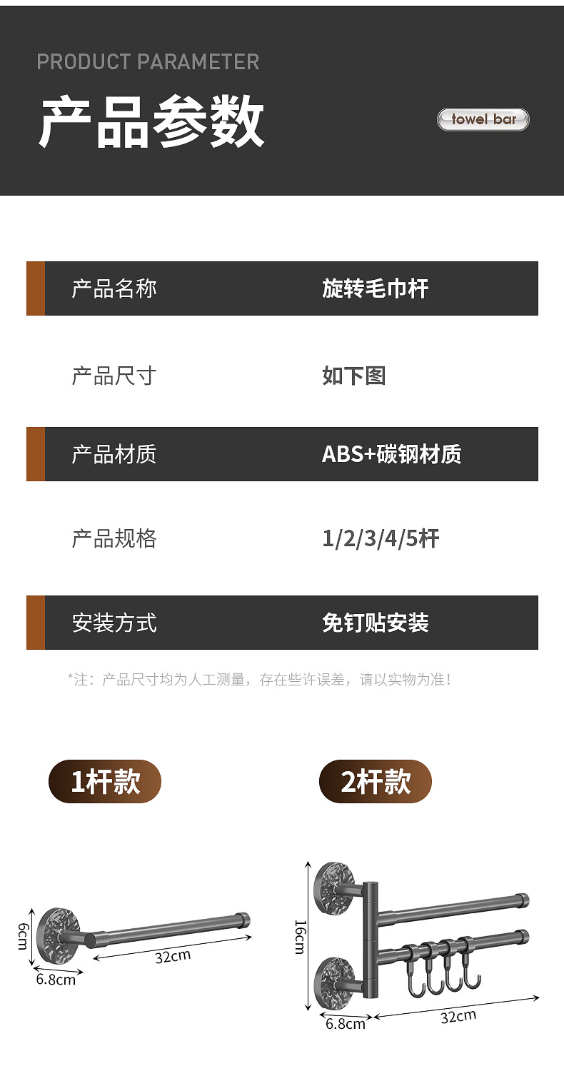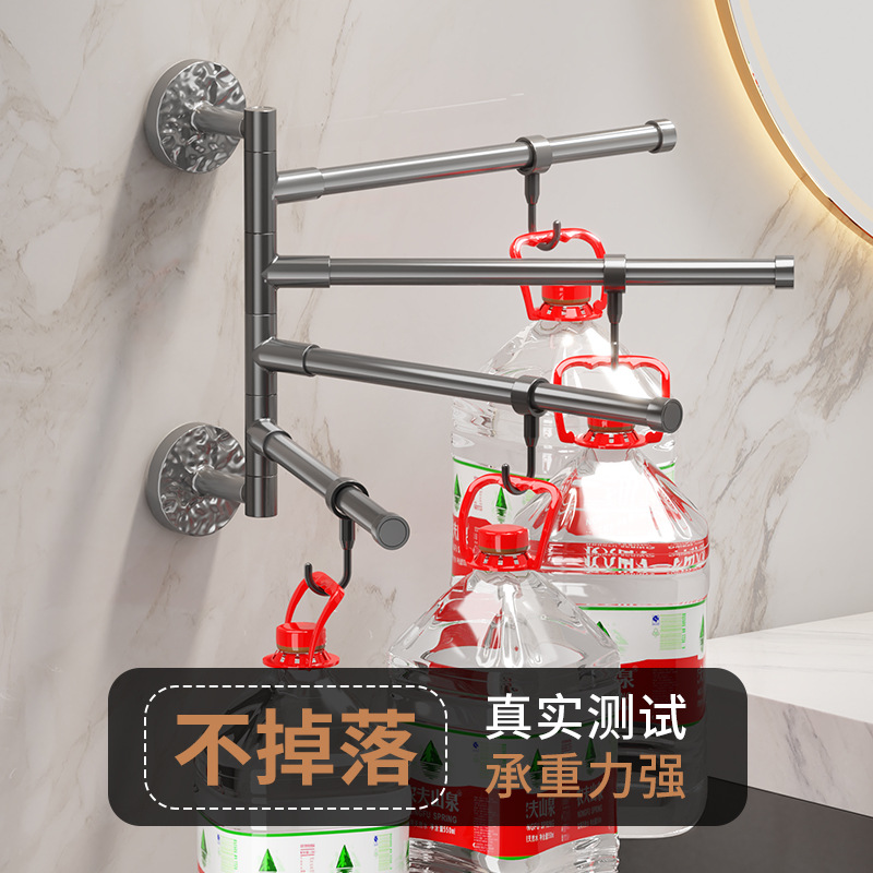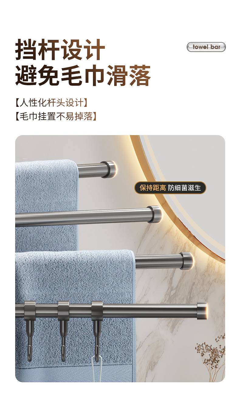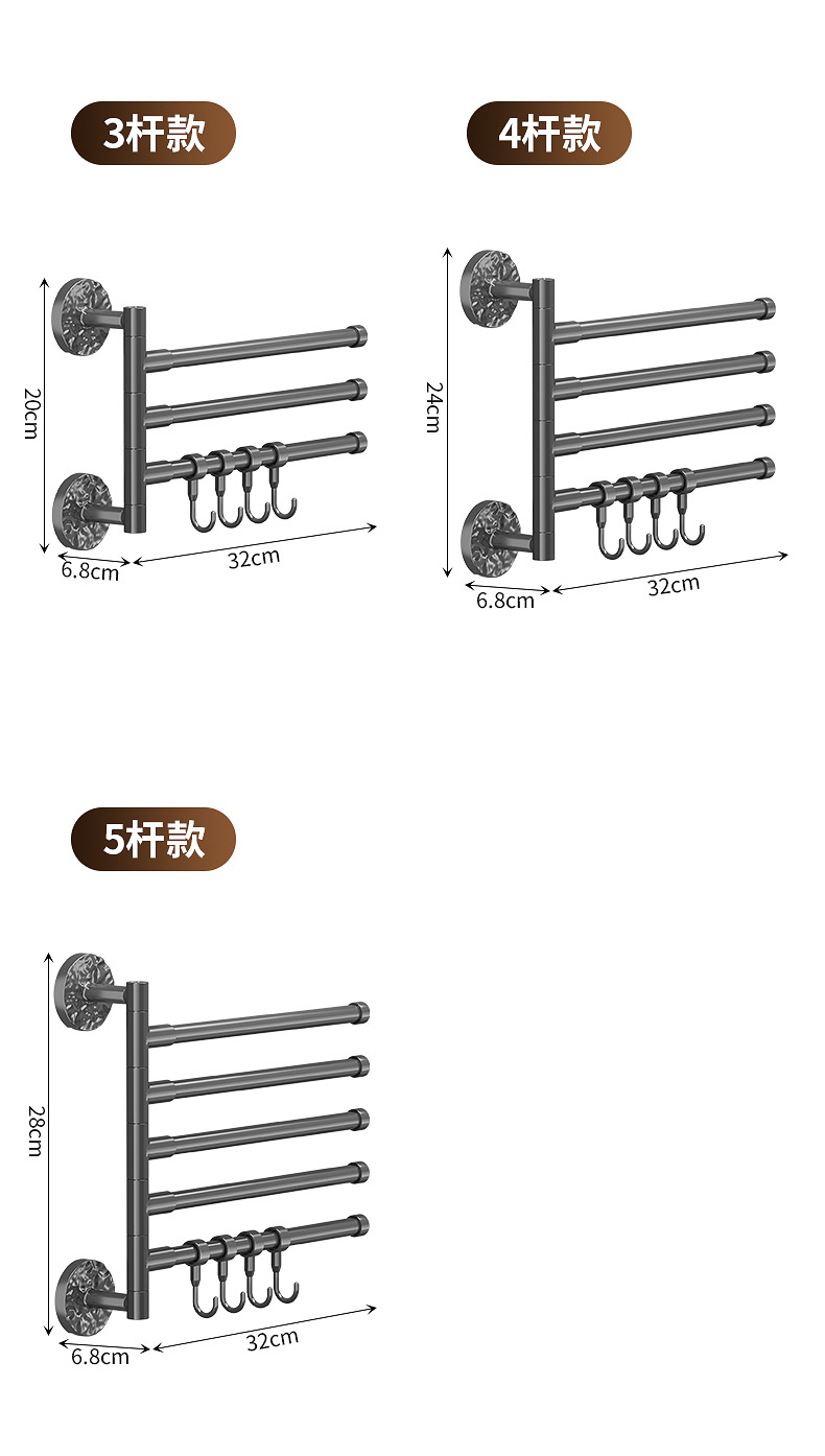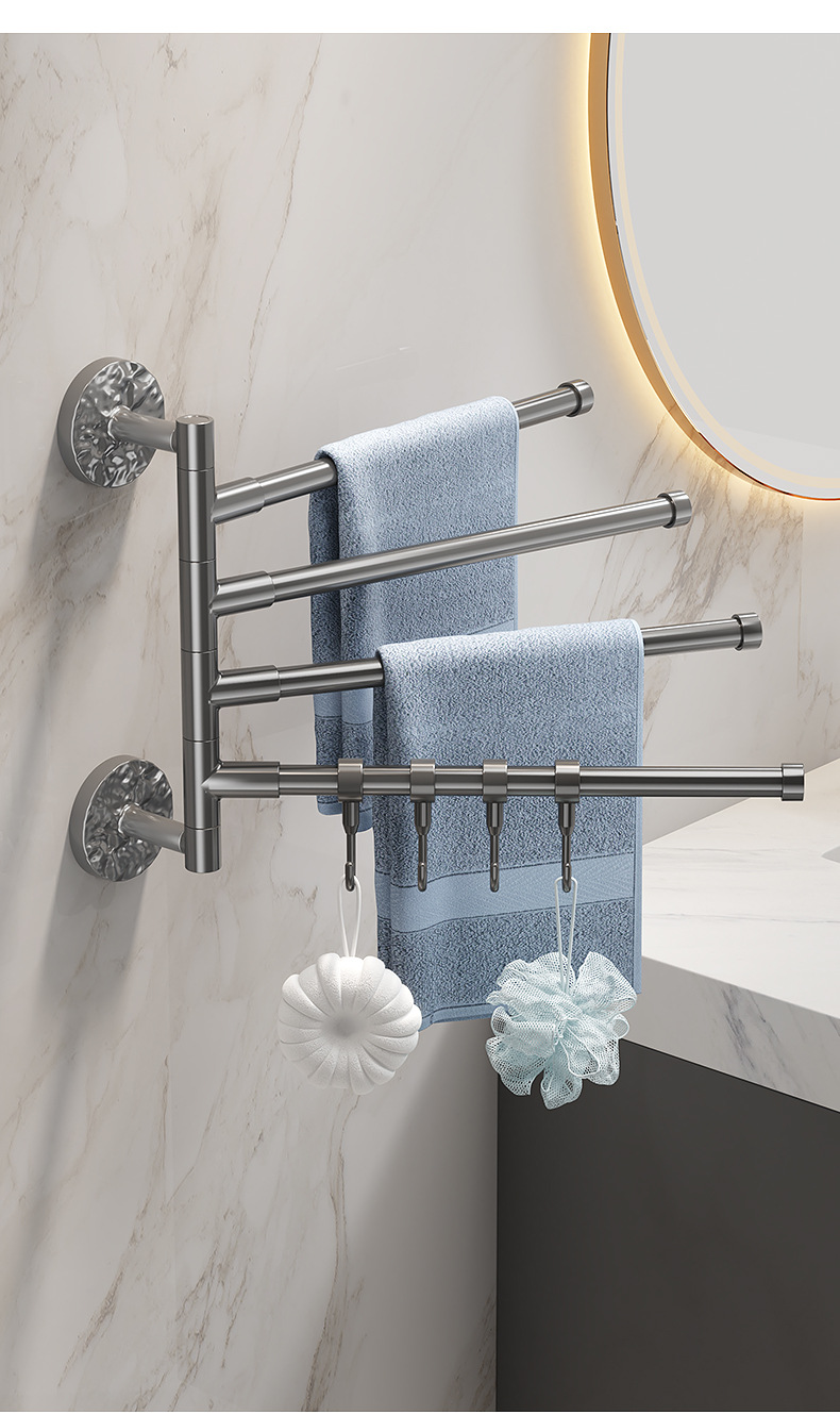 旋转毛巾架卫生间免打孔多杆浴巾收纳挂架壁挂式浴室转角毛巾挂杆