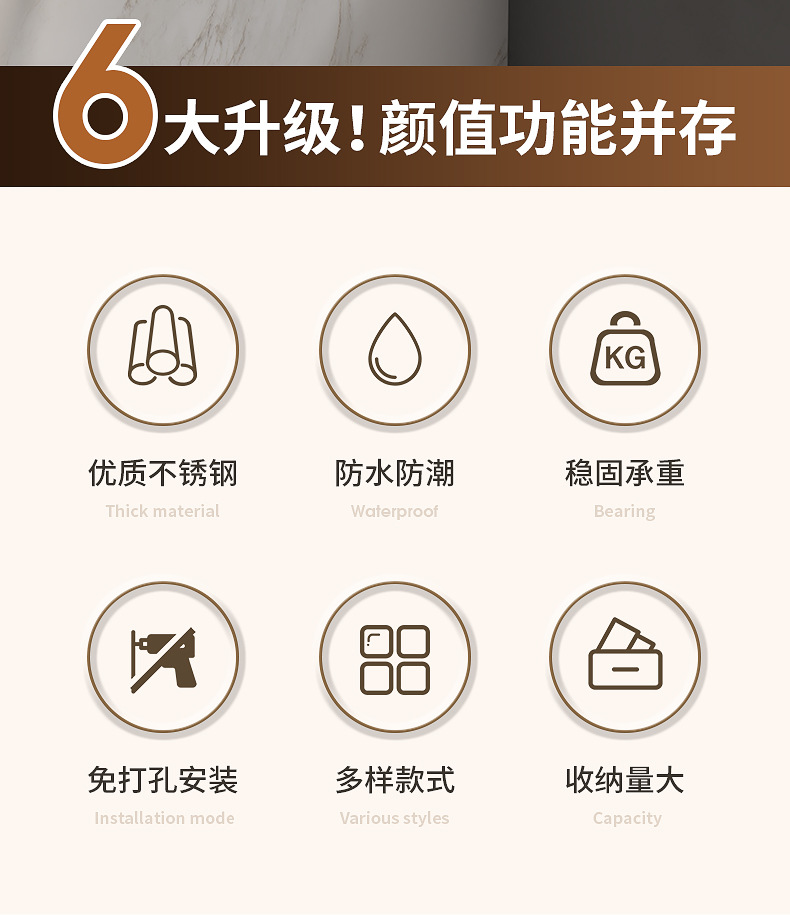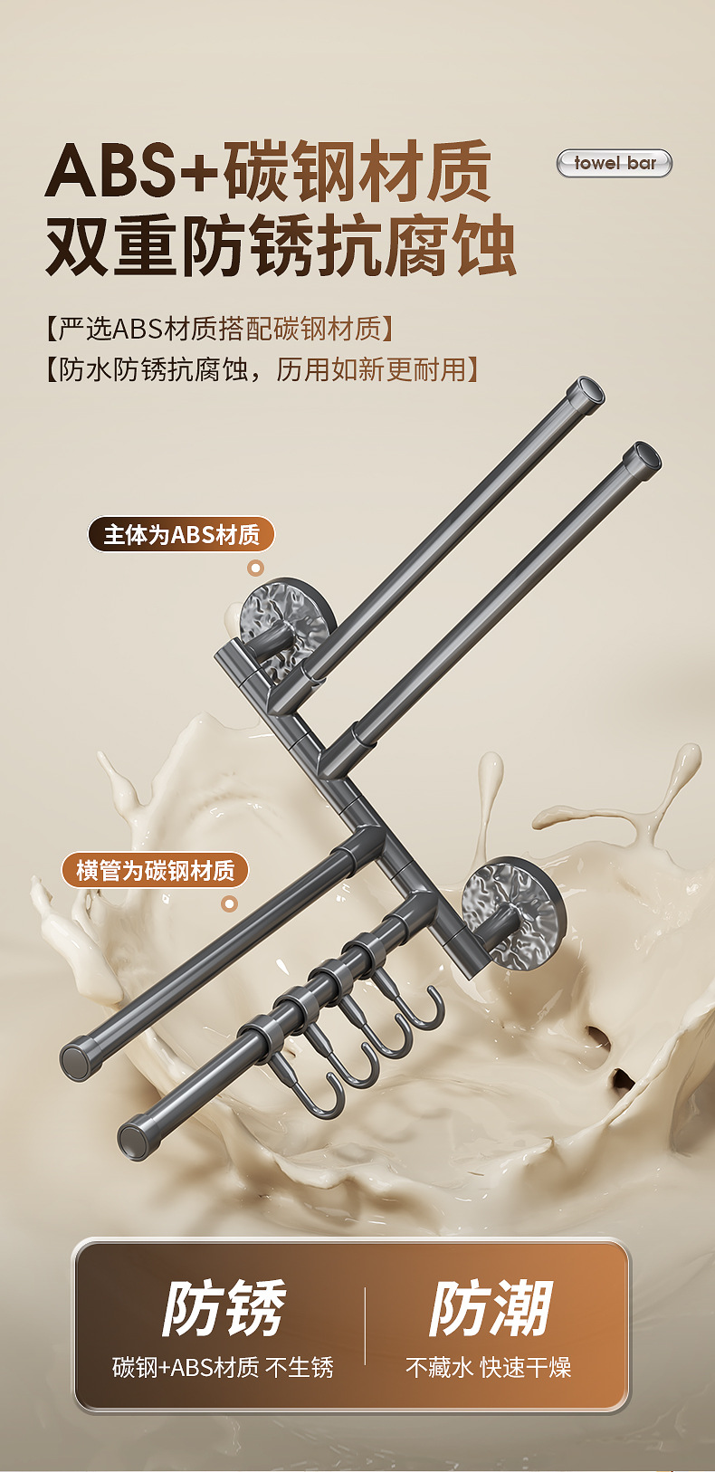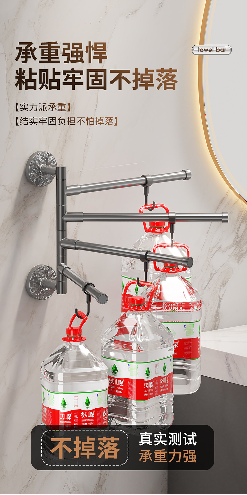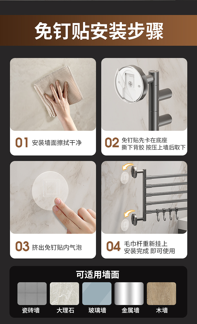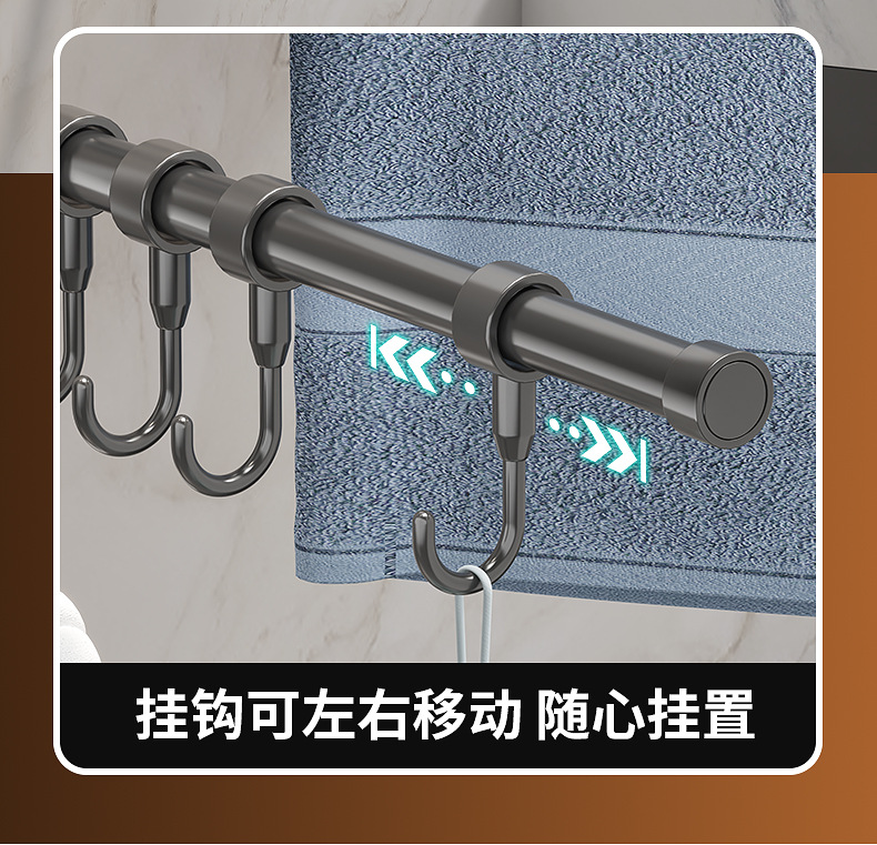 旋转毛巾架卫生间免打孔多杆浴巾收纳挂架壁挂式浴室转角毛巾挂杆
