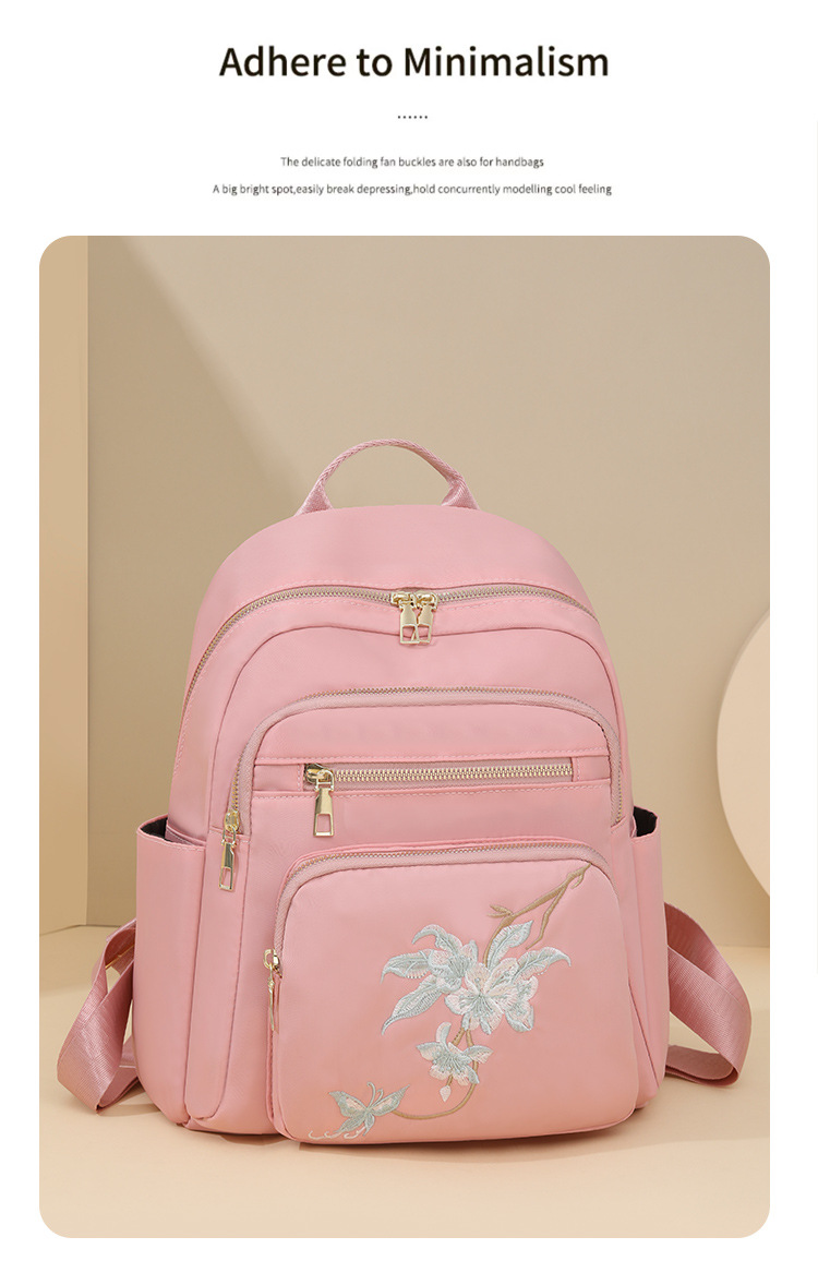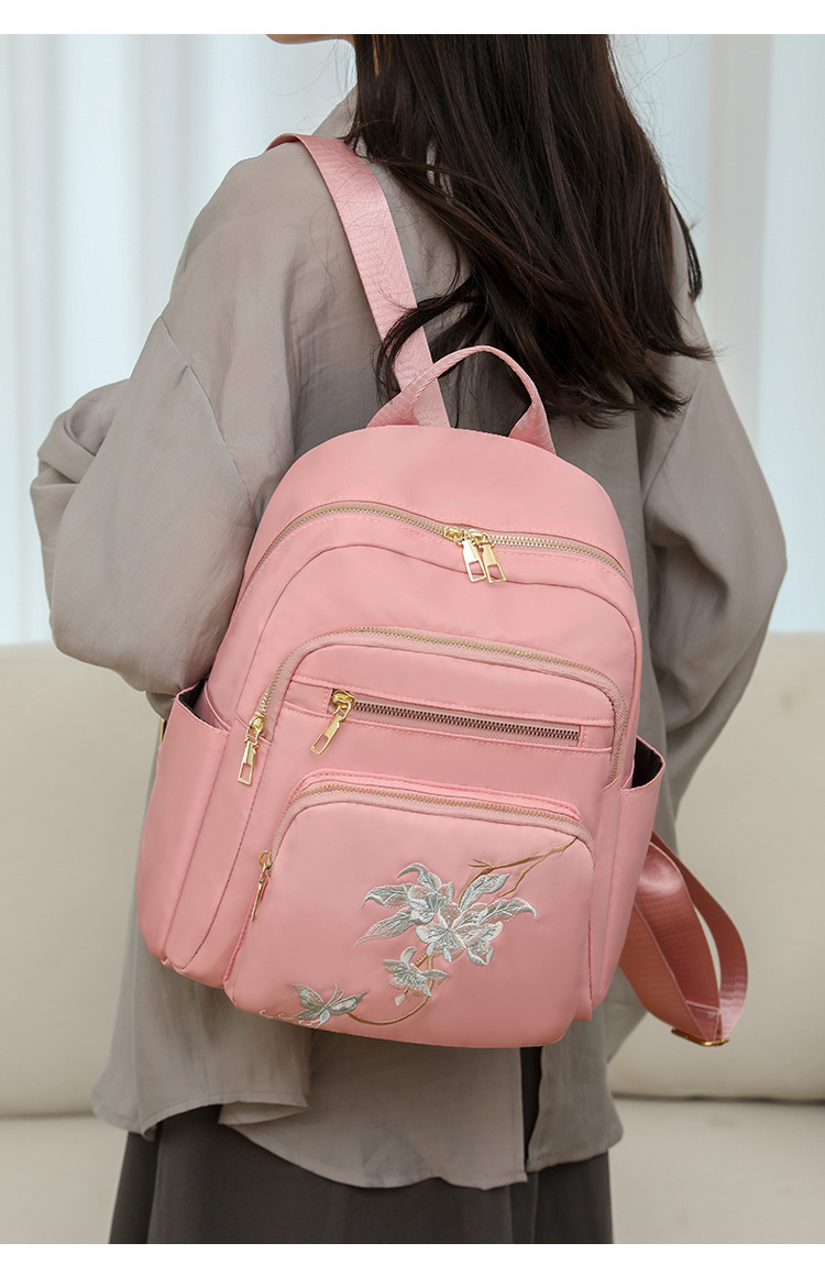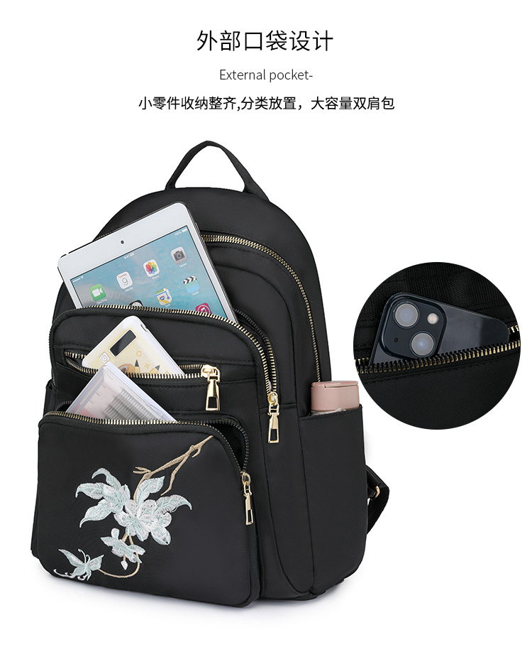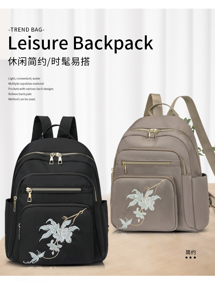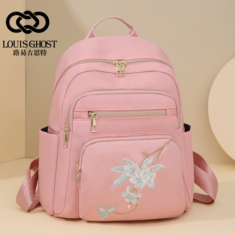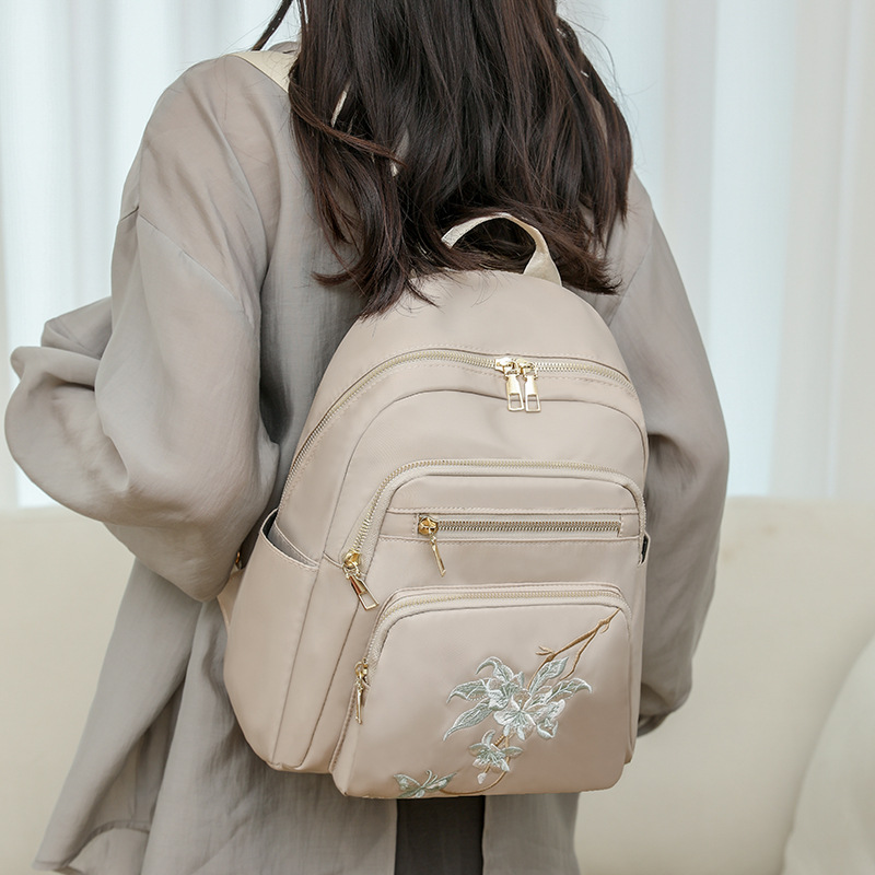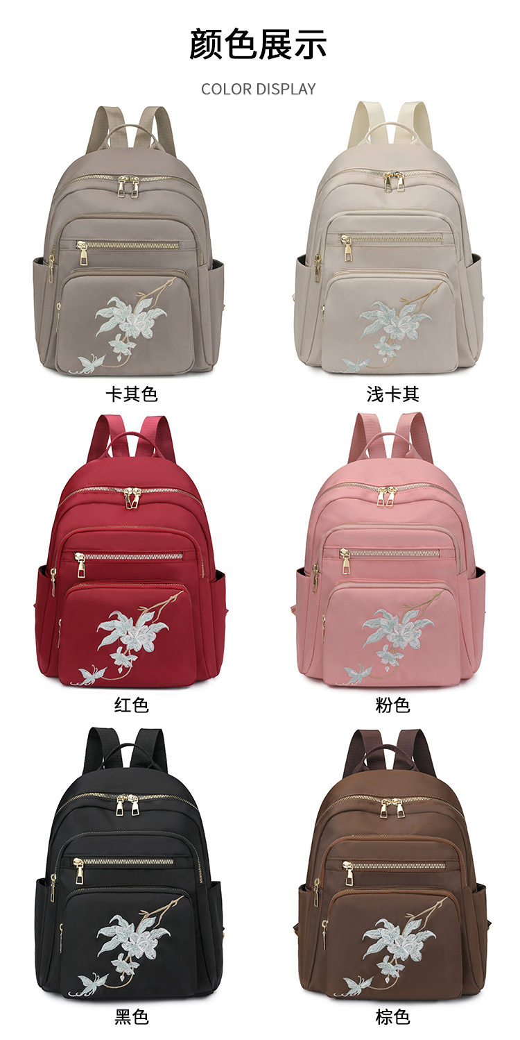 刺绣双肩包女生2024休闲时尚妈咪包外出旅行背包