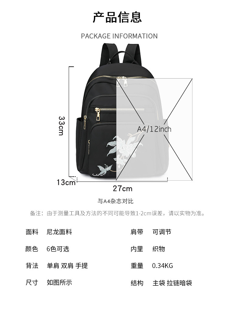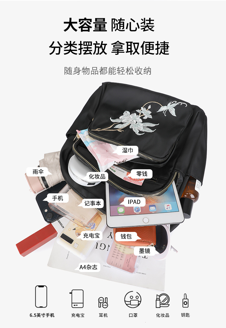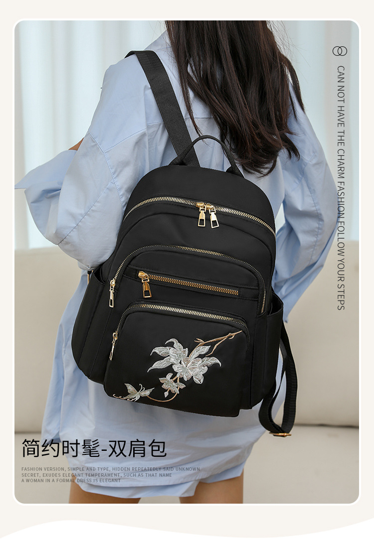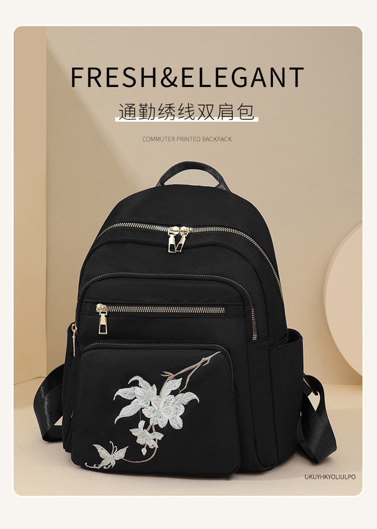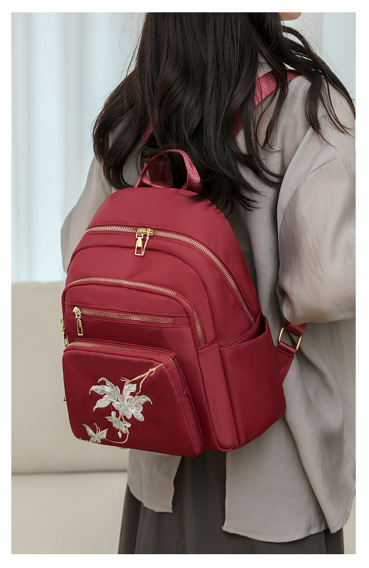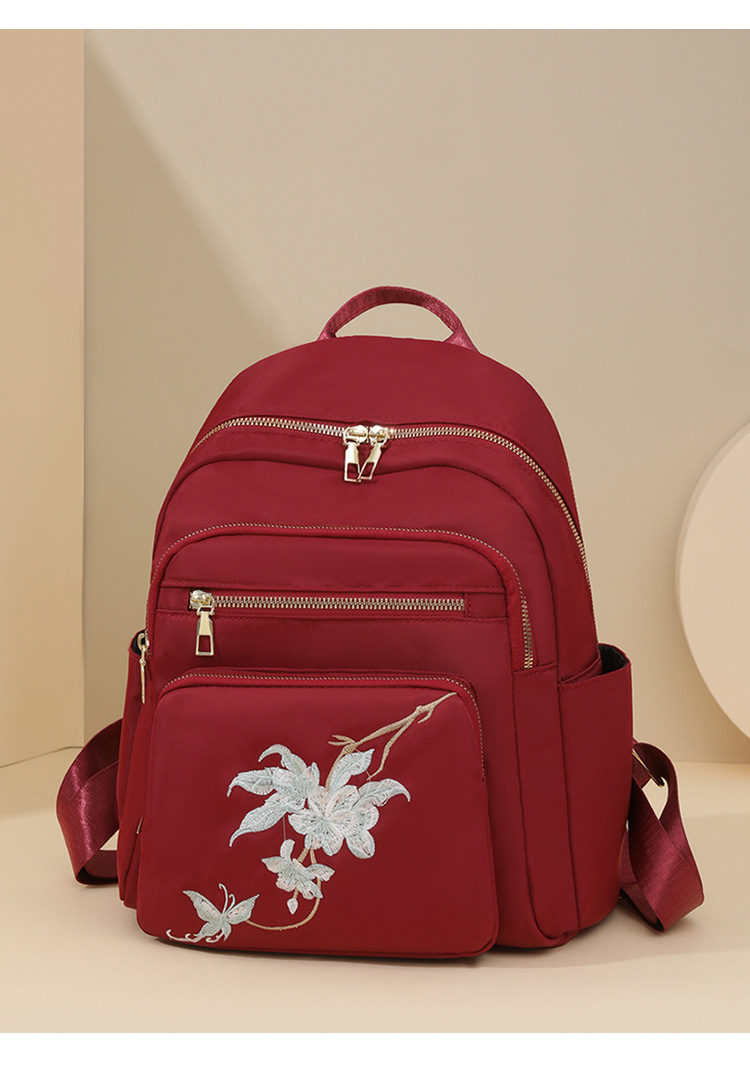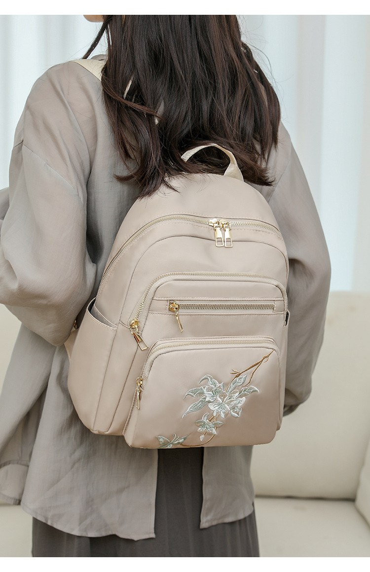 刺绣双肩包女生2024休闲时尚妈咪包外出旅行背包