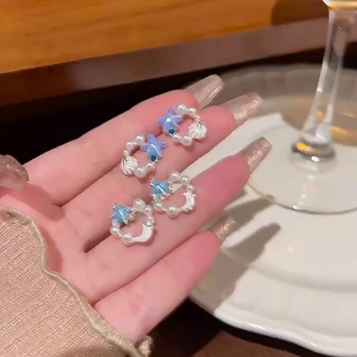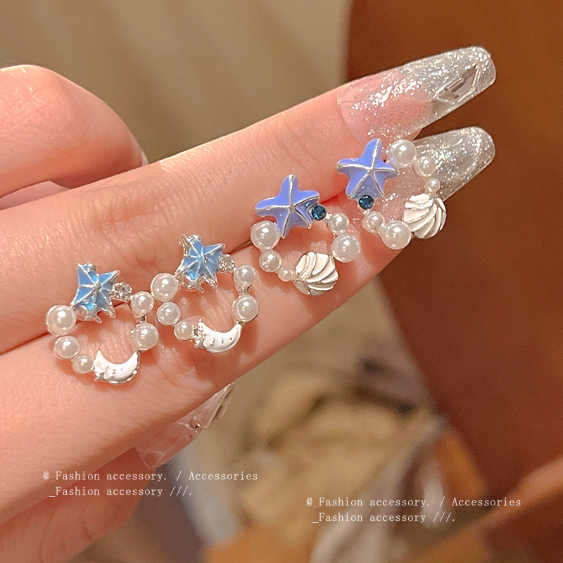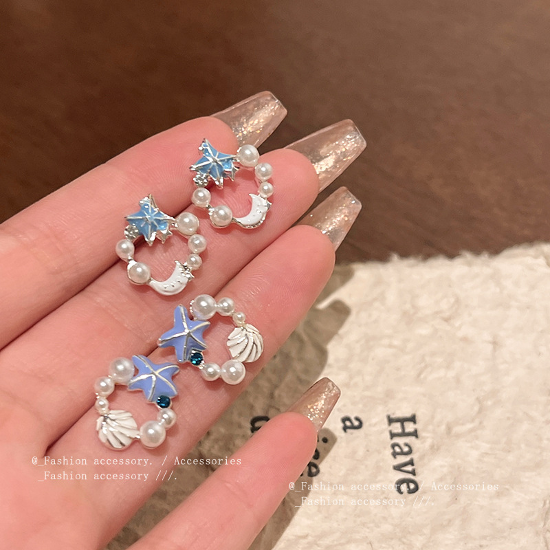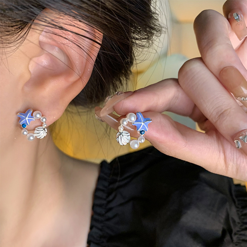 饰品S925银针可爱简约耳环网红同款耳饰气质小清新海星贝壳耳钉女