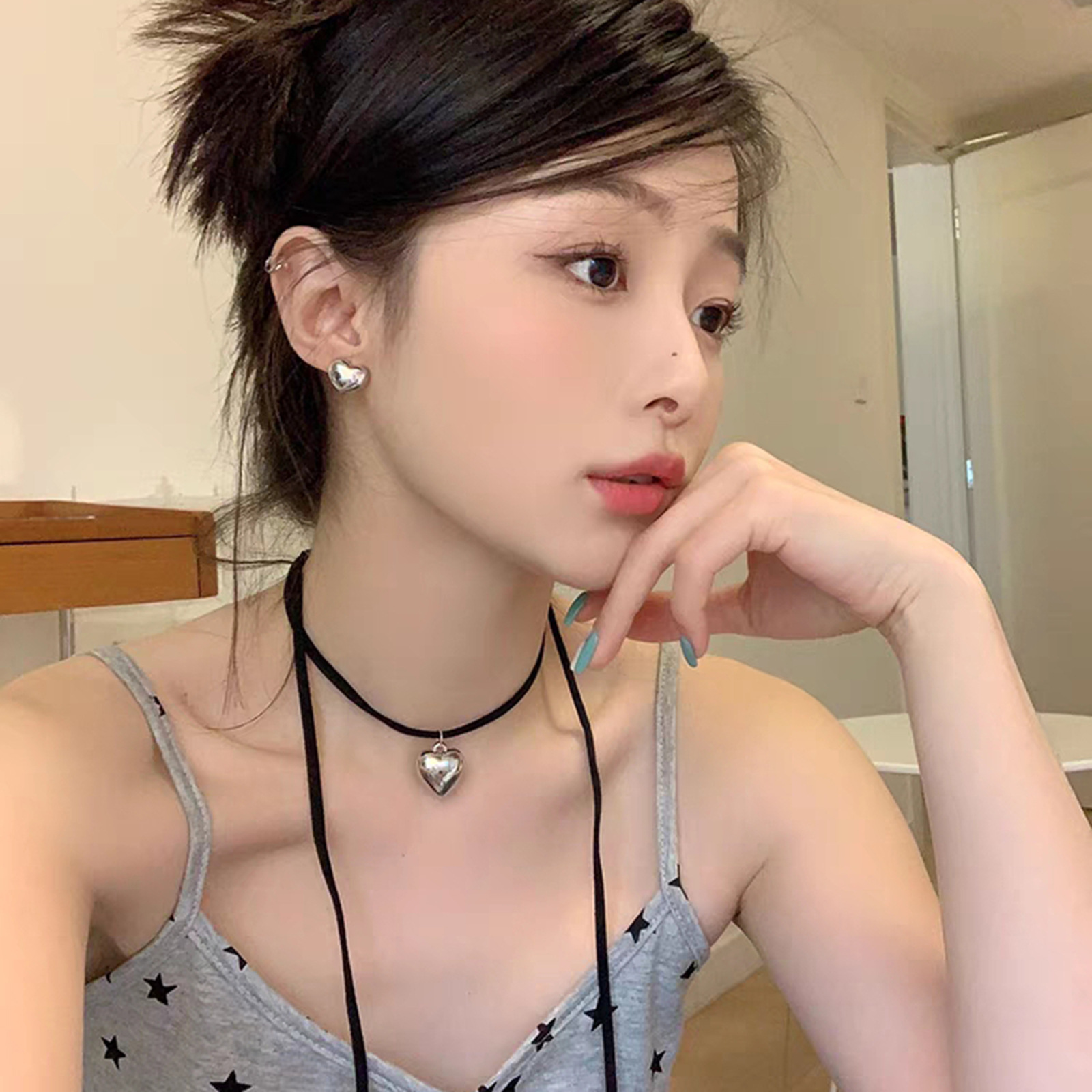 韩素希同款甜酷爱心系带项链女轻奢小众锁骨链高级感choker辣妹颈
