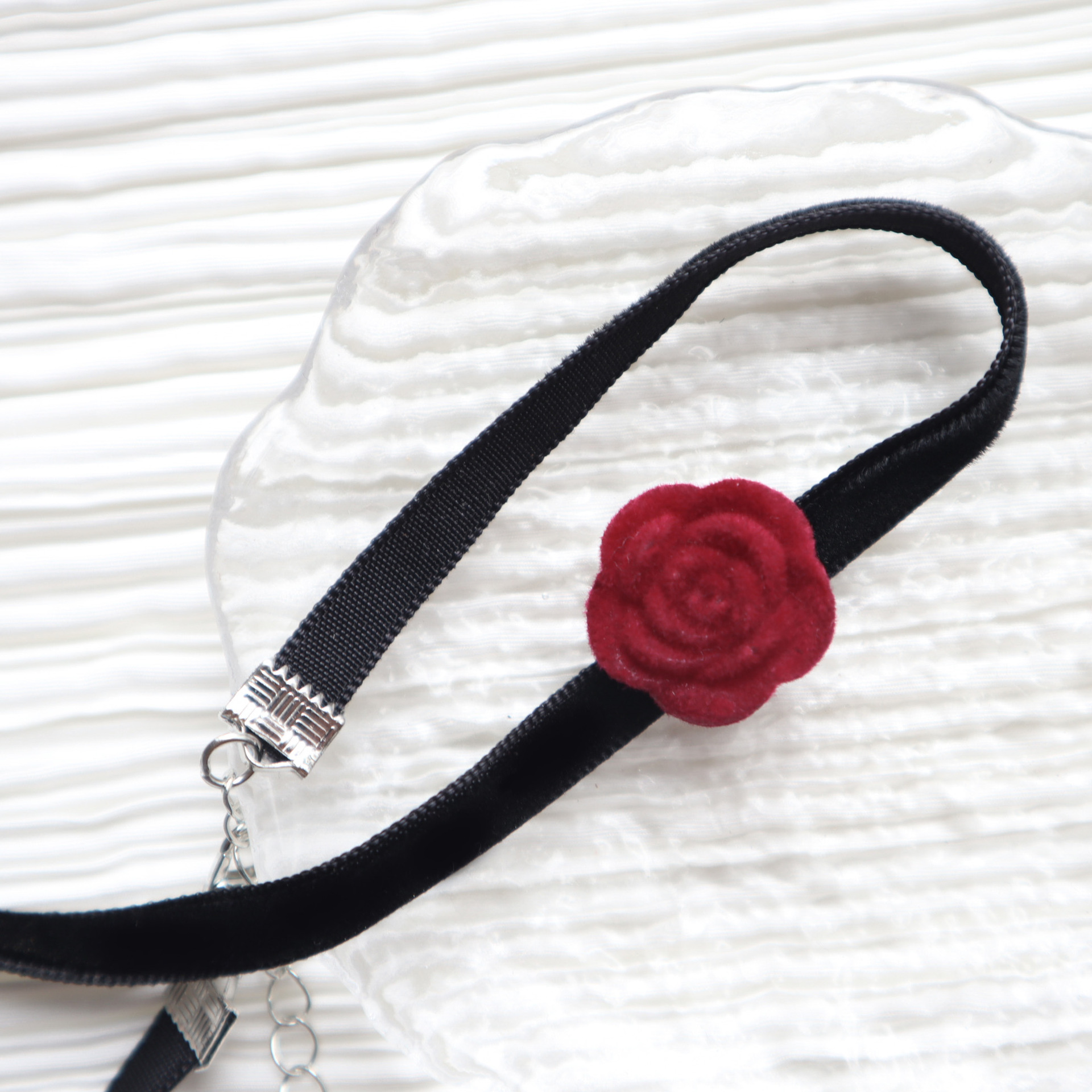 氛围感~酒红玫瑰choker颈链小众设计感高级项链2023新款爆款配饰